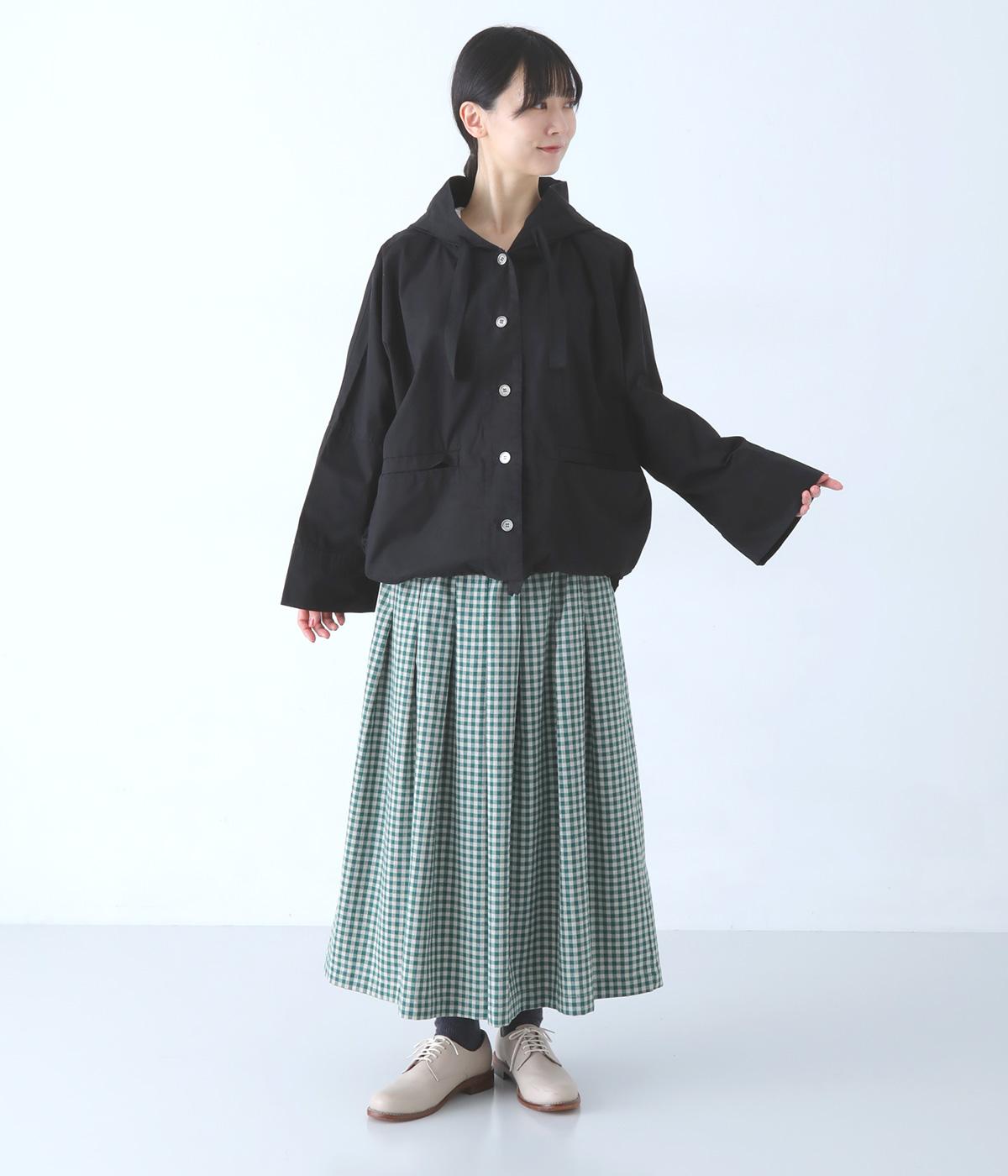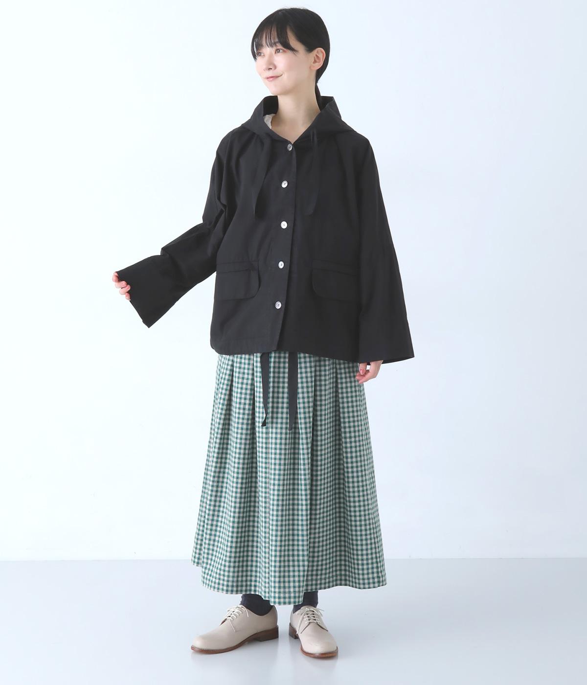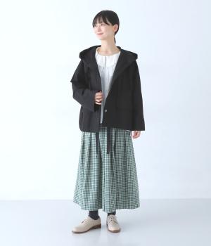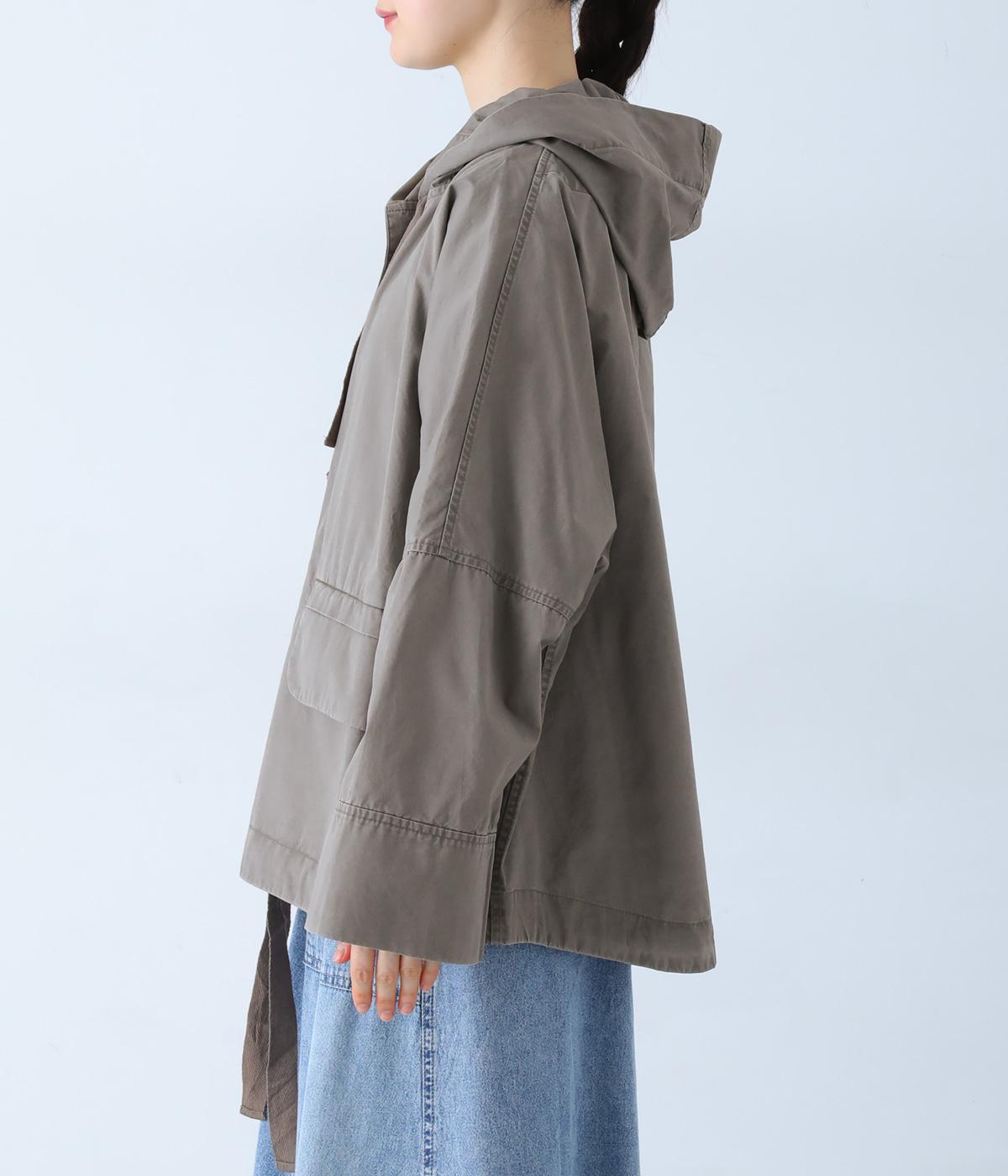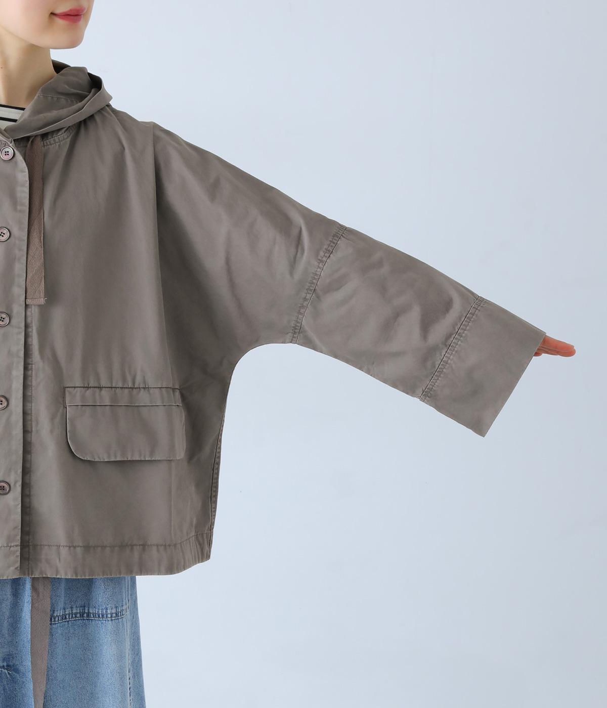 前面の大きなフラップポケットがアクセントのフードジャケット。太ひも付きのフードと裾で表情を変えられ、裾を絞ればコンパクトなシルエットに。腰まわりをほどよく隠してくれる丈感で、袖は折っても◎。