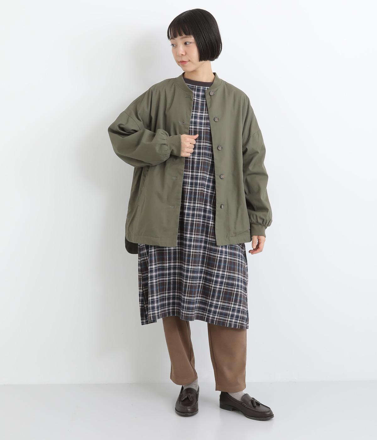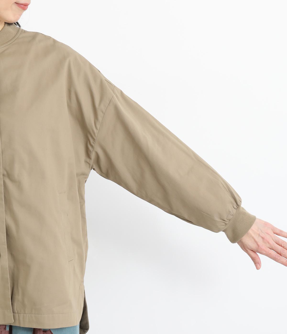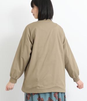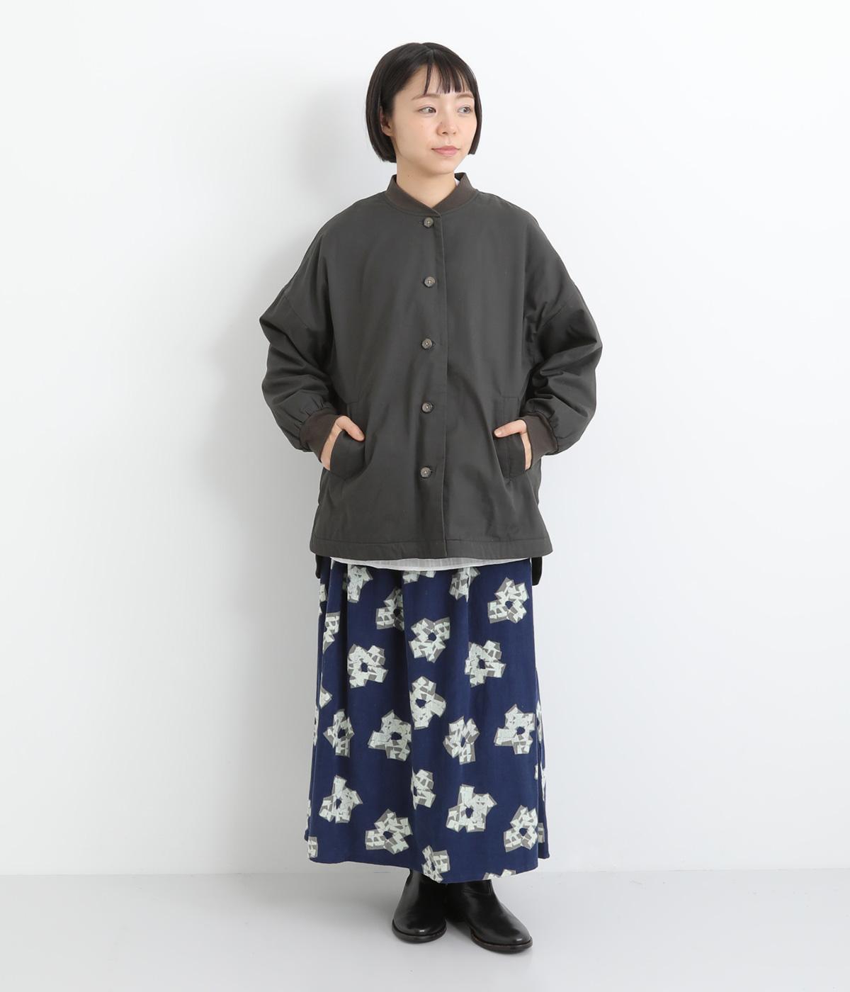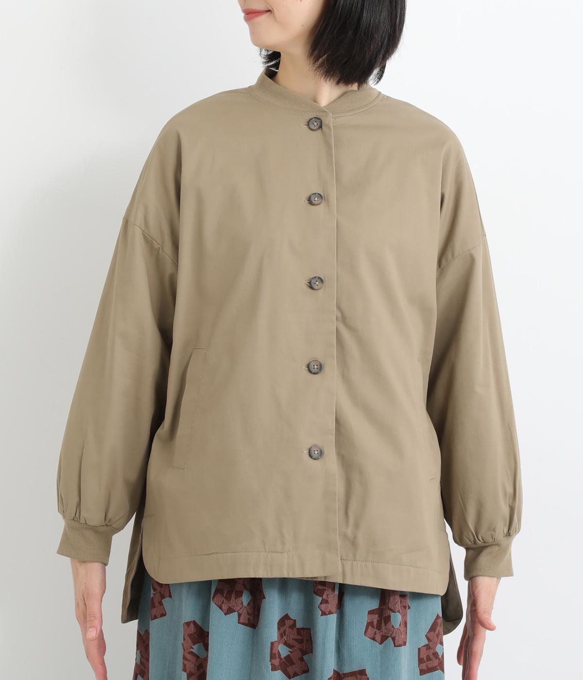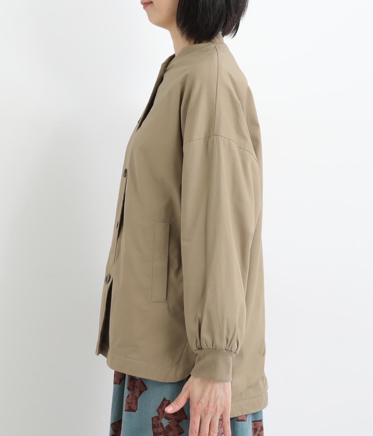 ゆとりのあるボックスシルエットでカジュアルに羽織りやすいジャケット。襟ぐりや袖口はリブ切り替えであたたかみをプラス。前後差をつけたヘムラインも特徴で、横姿にもアクセントをつけています。
