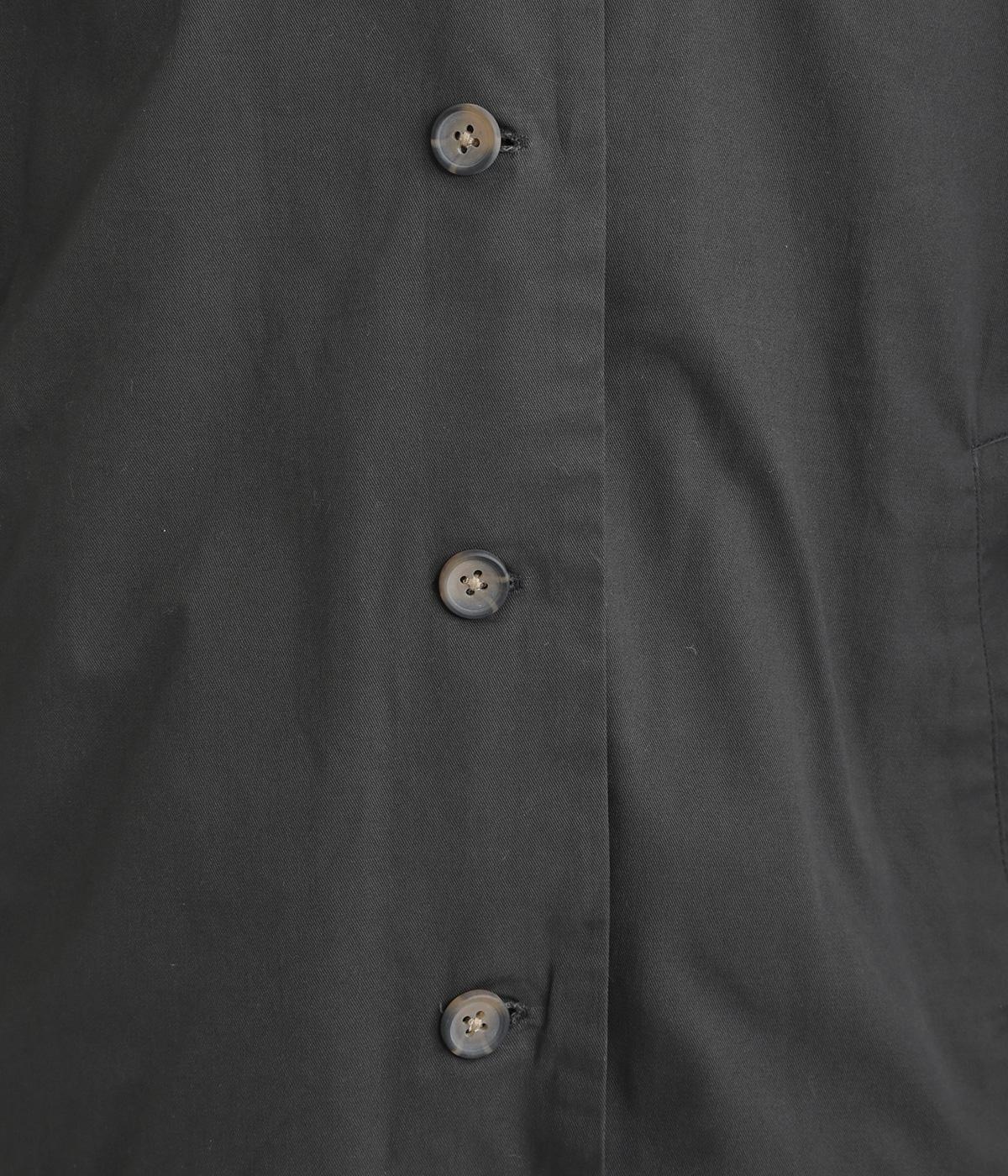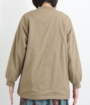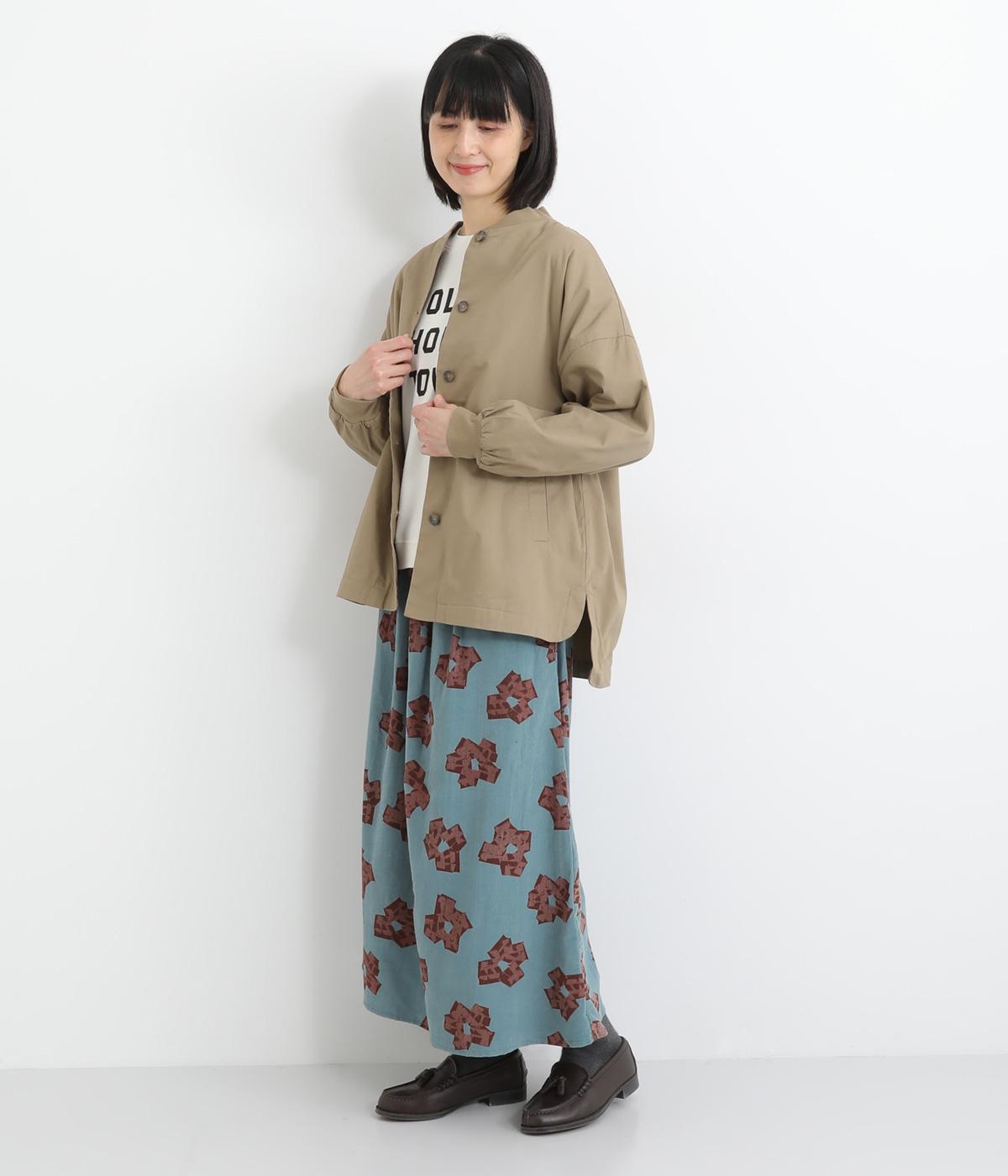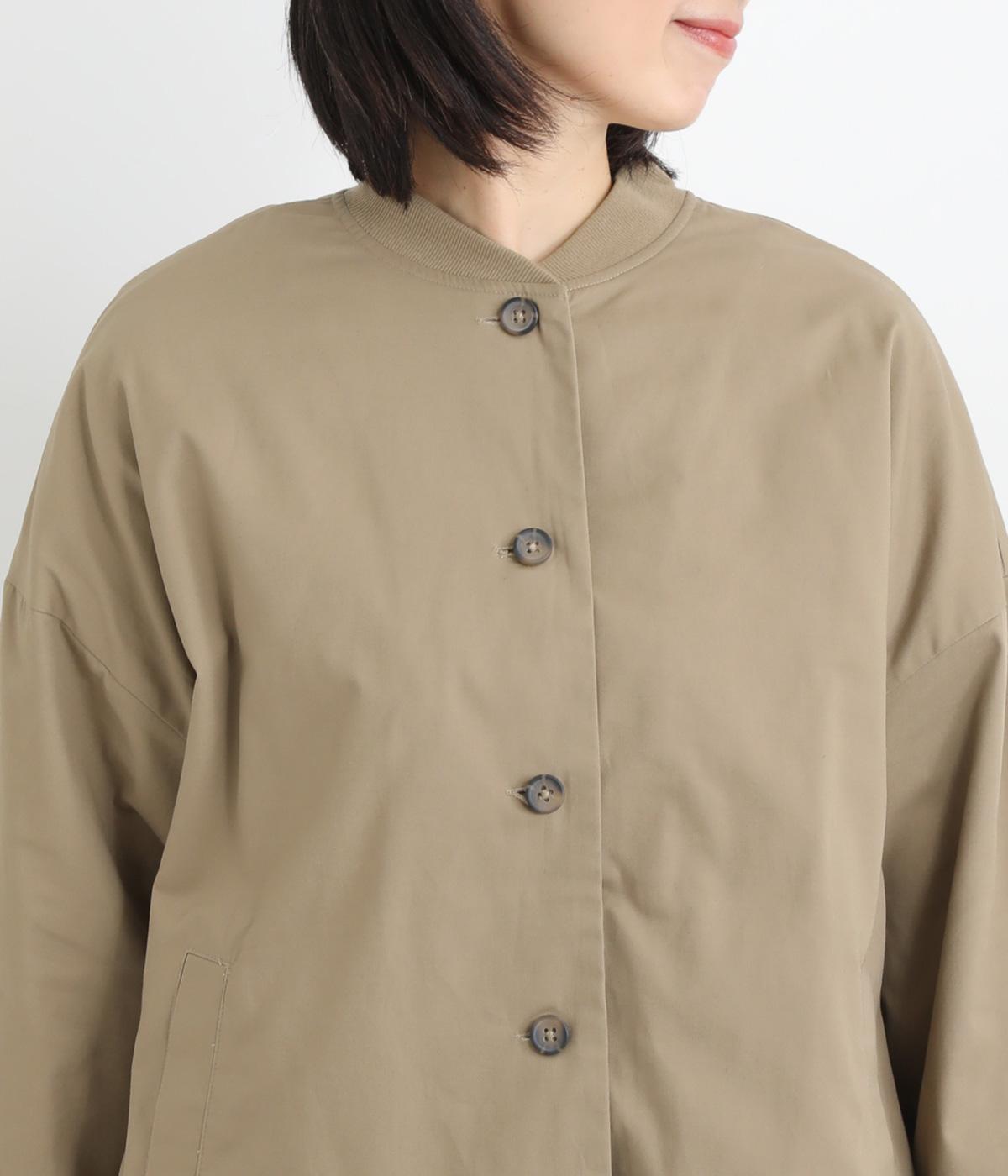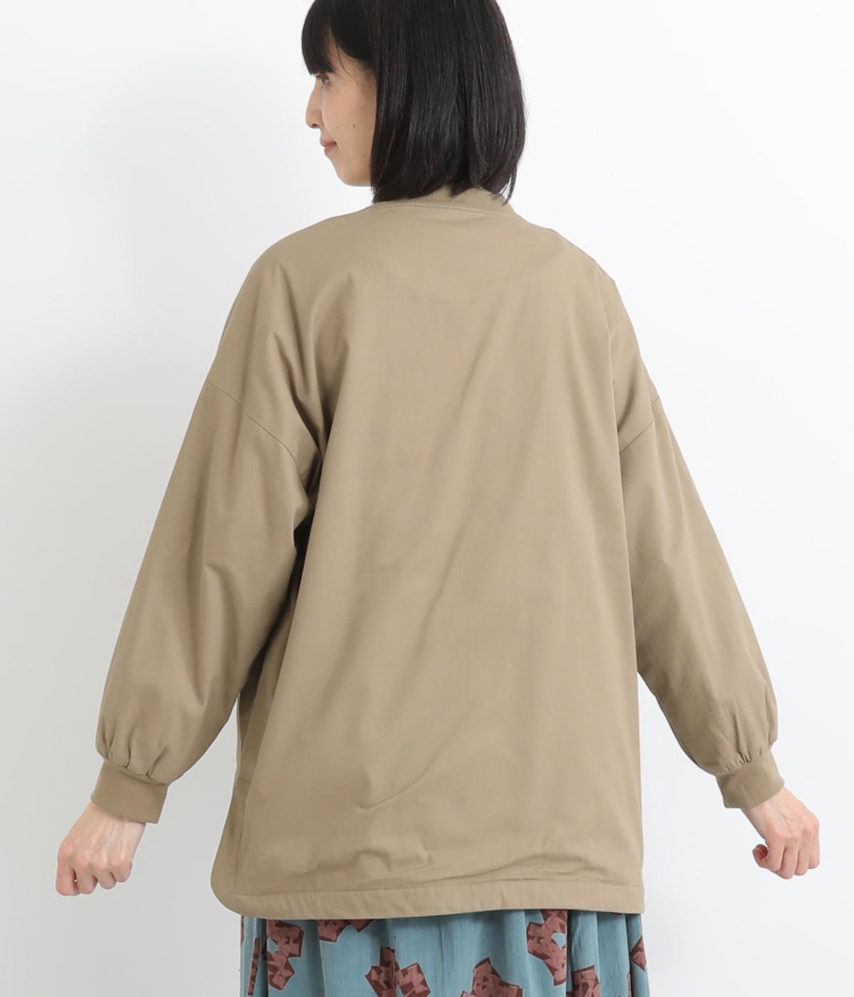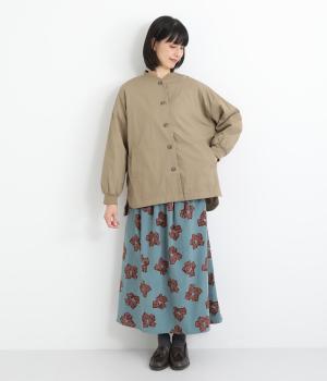 ゆとりのあるボックスシルエットでカジュアルに羽織りやすいジャケット。襟ぐりや袖口はリブ切り替えであたたかみをプラス。前後差をつけたヘムラインも特徴で、横姿にもアクセントをつけています。