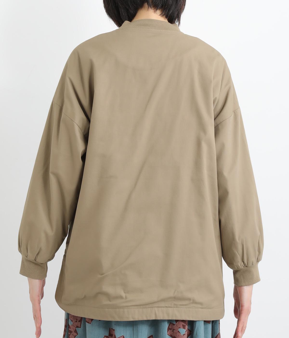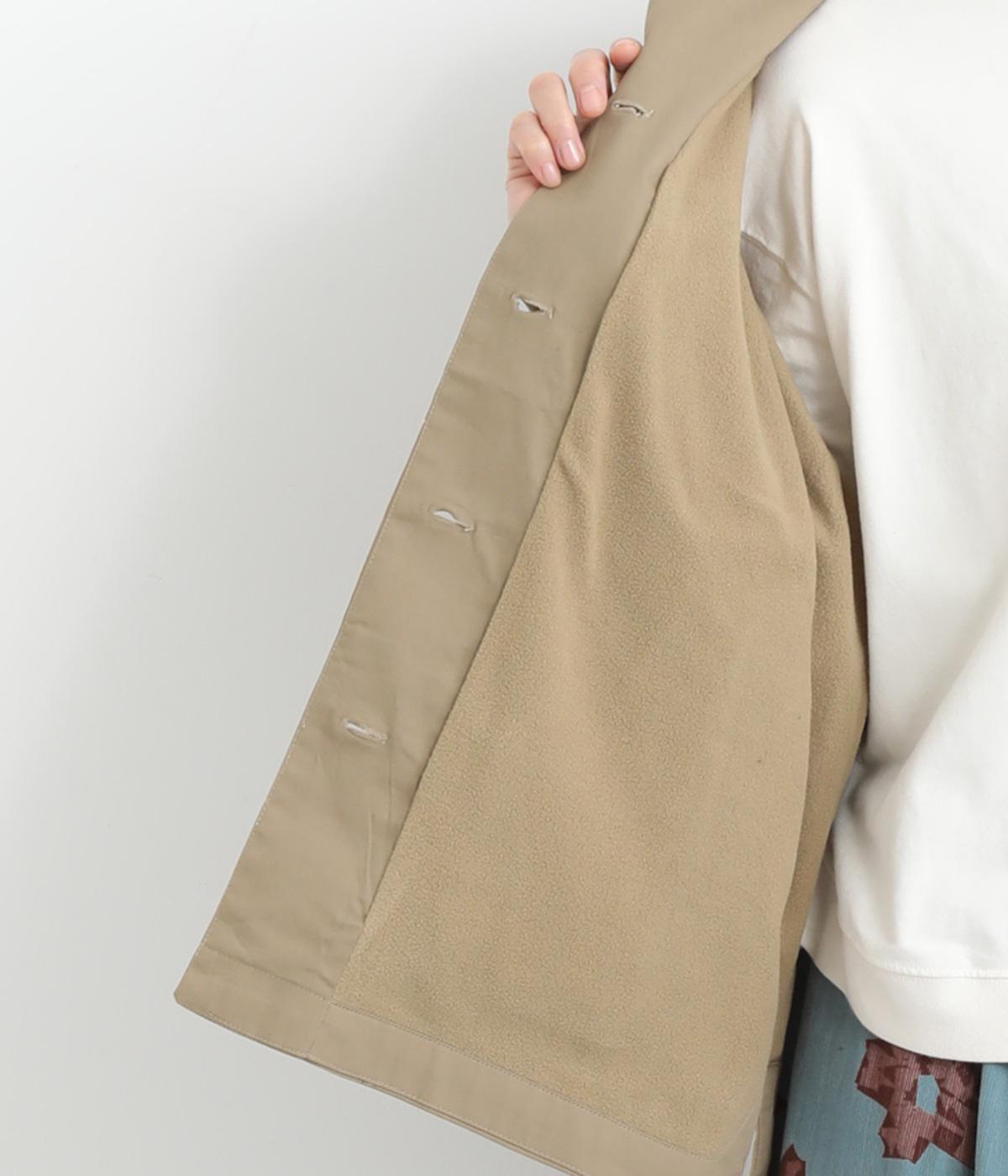 表地は、耐久性がありシワになりにくいツイルの利点と、やさしい表情のピーチスキンの良さを兼ね備えています。裏はフリース素材で防寒力をアップ。