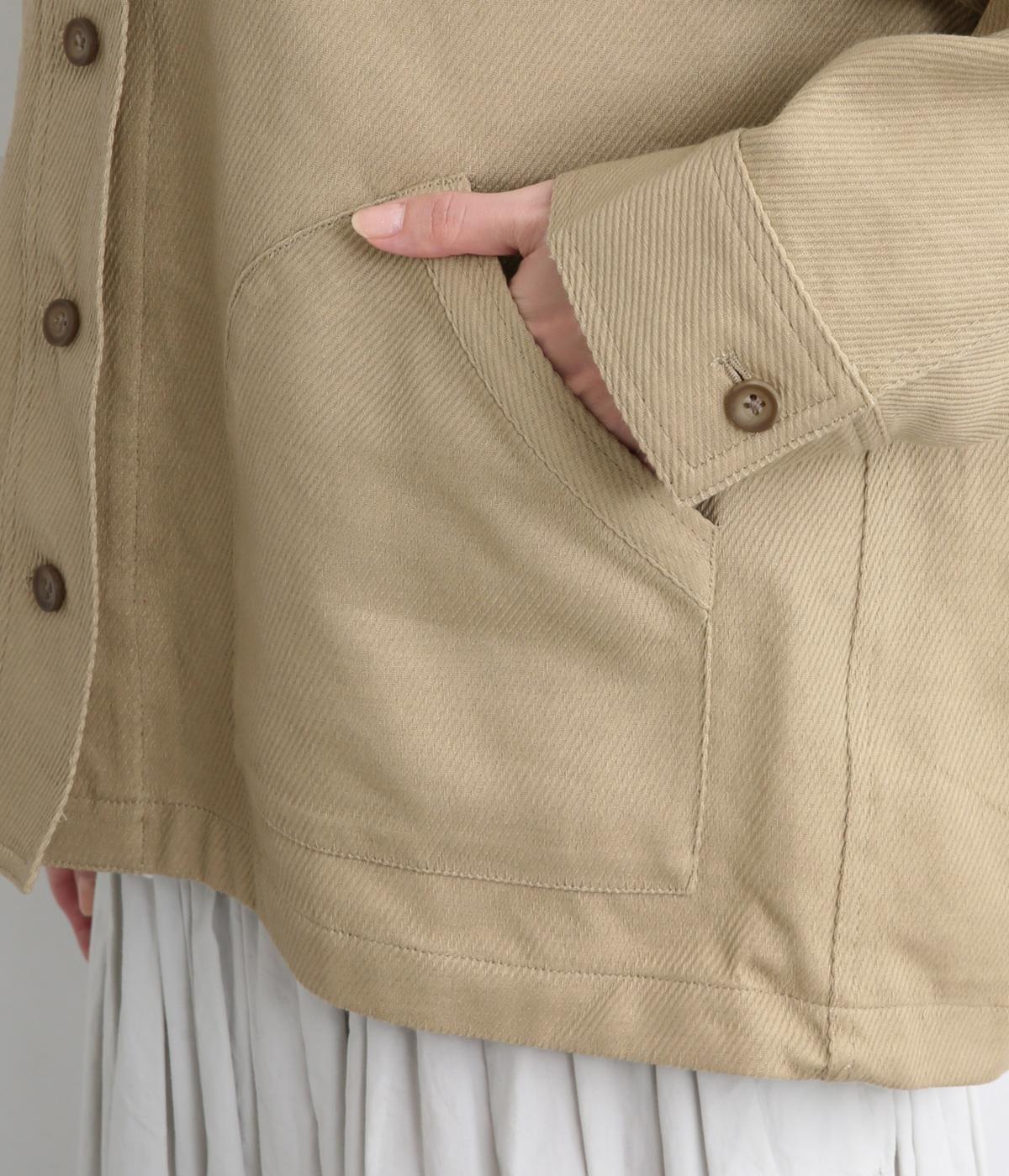 適度な厚みがありながらもソフトで羽織りやすいコットンのカツラギを使用。畝のような斜め線が特徴的で、きちんと感と適度なカジュアルさのバランスが◎。