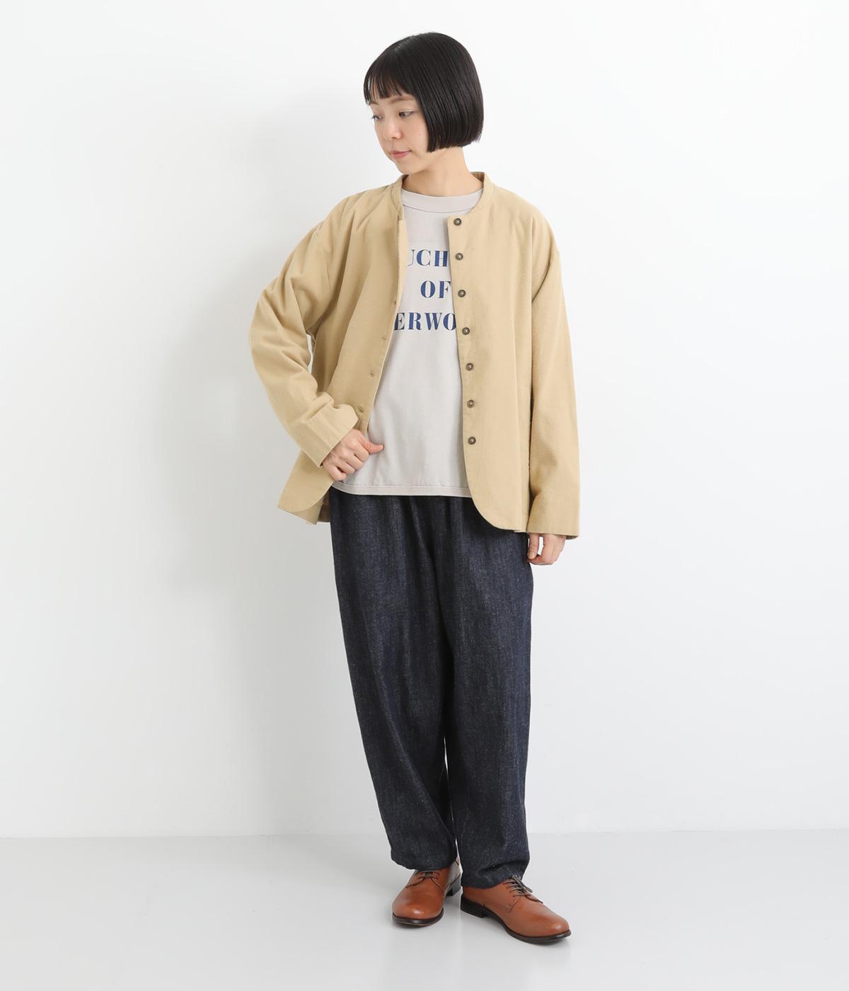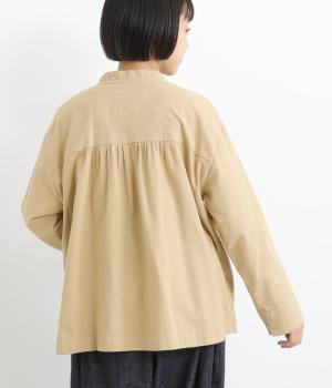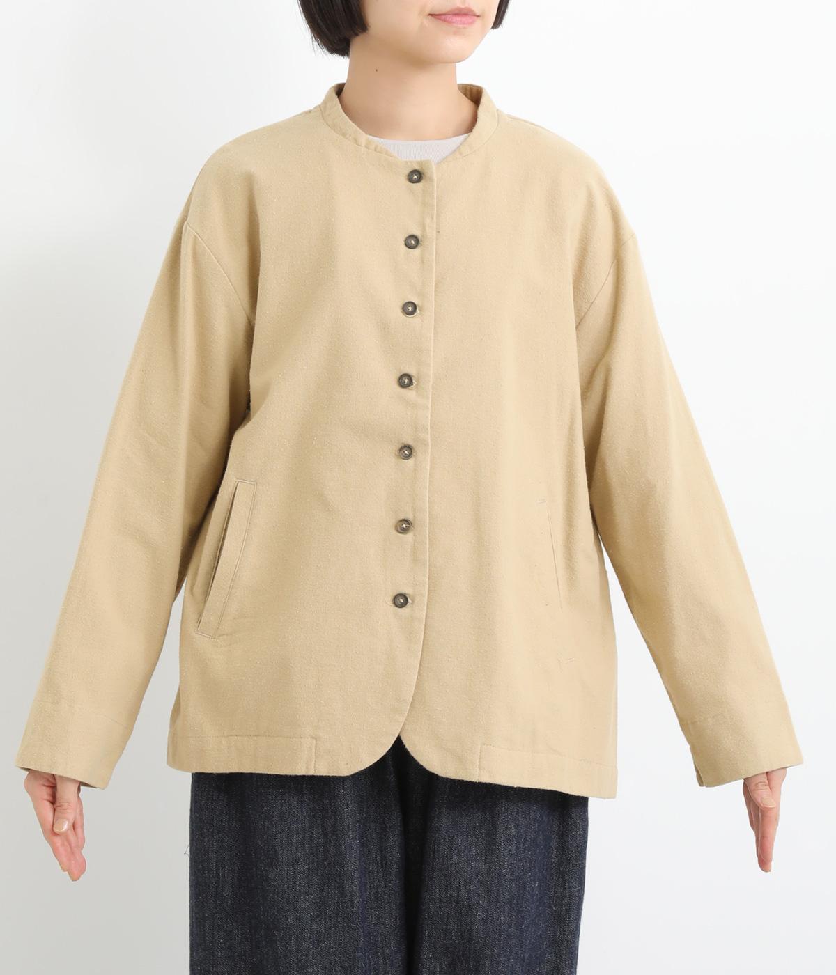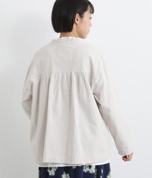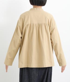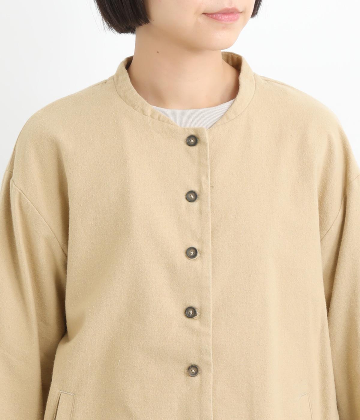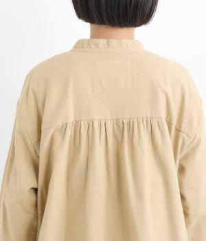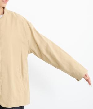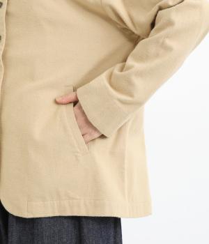 微起毛でふんわりとしたあたたかな表情をつけたコットン生地を使用しています。生地自体は薄めの中厚手でラフに羽織りやすく、ナチュラルな風合いが魅力です。