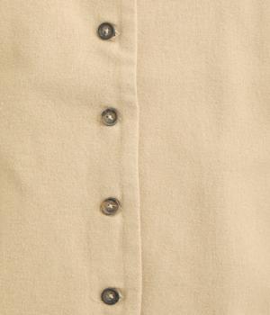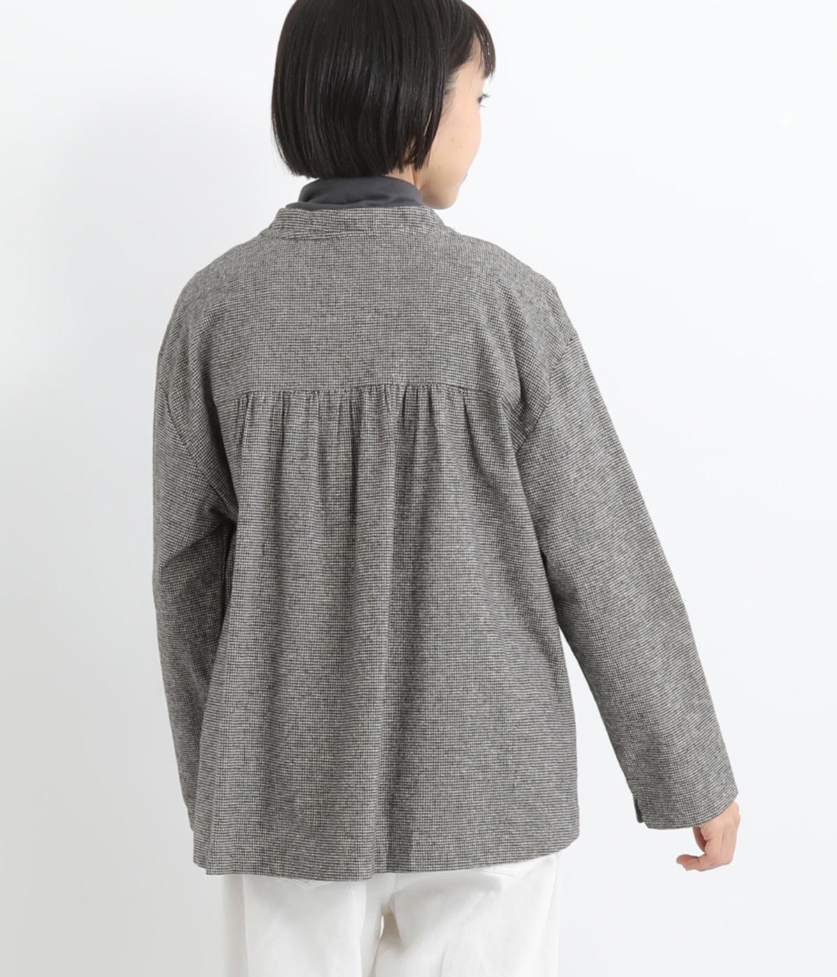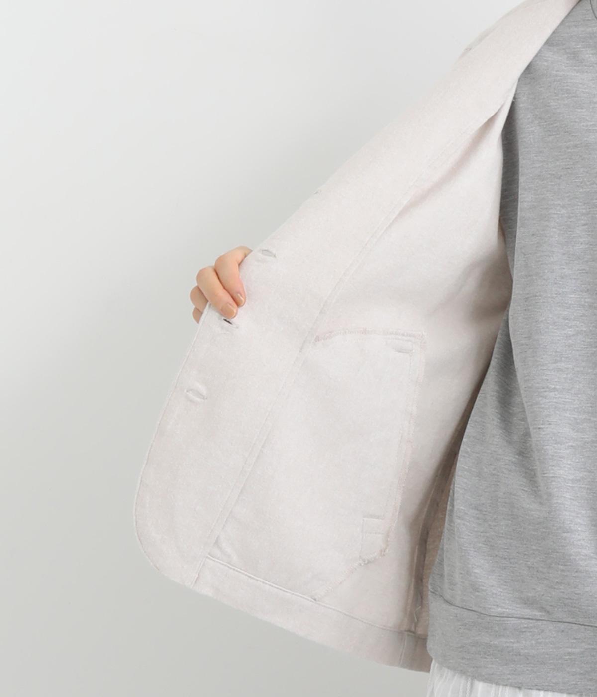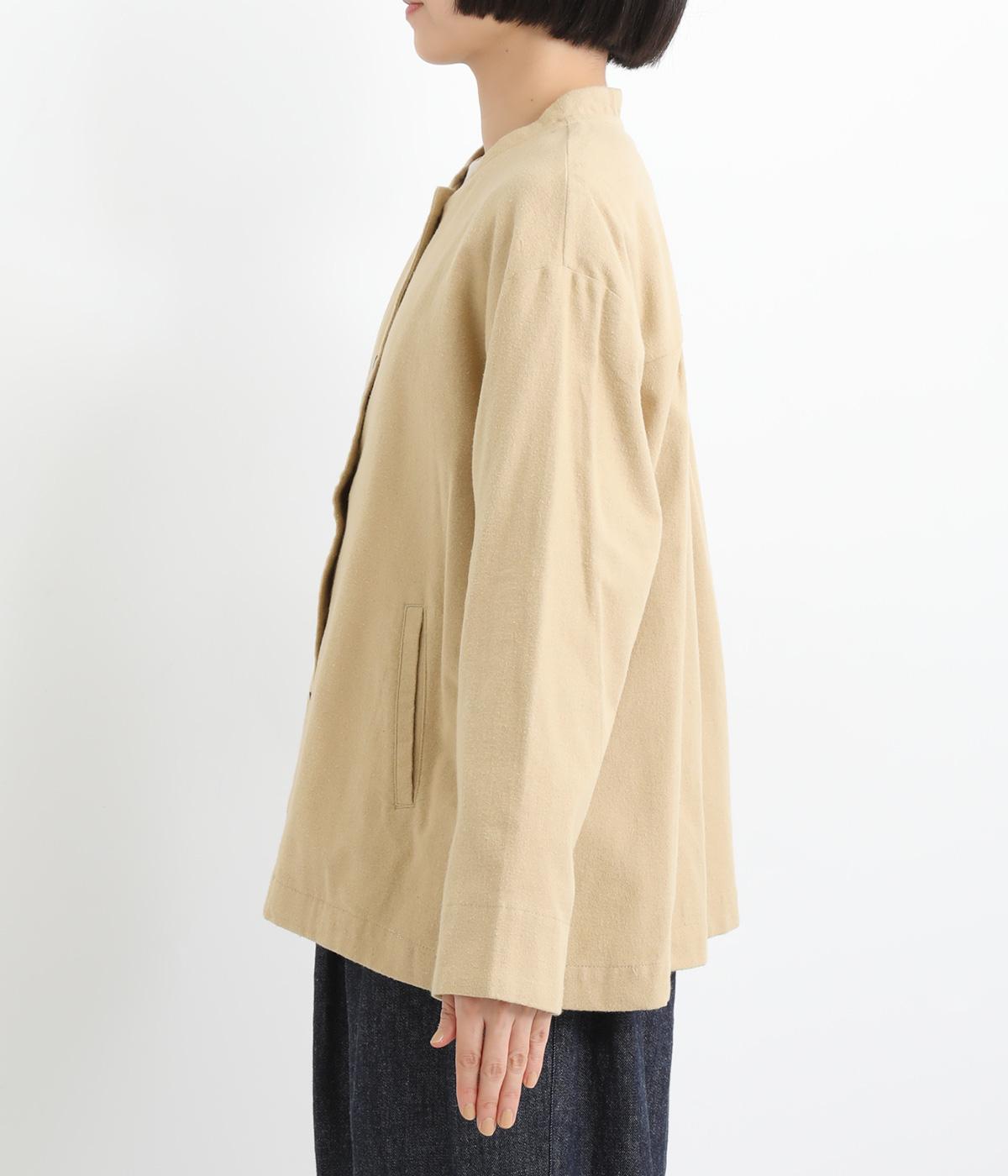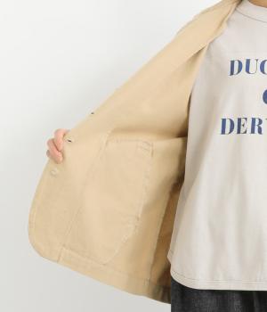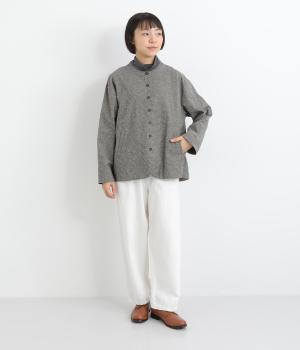 微起毛でふんわりとしたあたたかな表情をつけたコットン生地を使用しています。生地自体は薄めの中厚手でラフに羽織りやすく、ナチュラルな風合いが魅力です。
