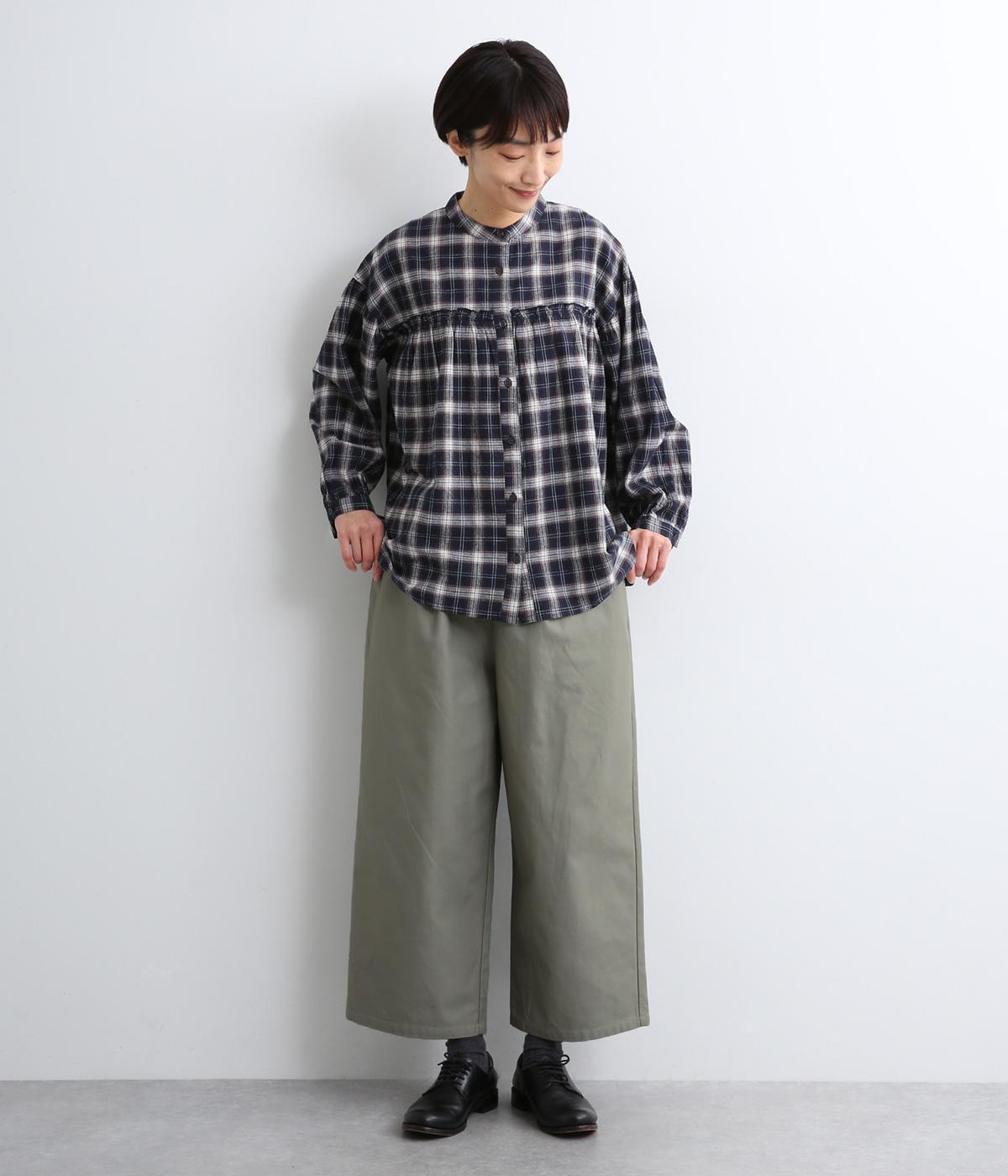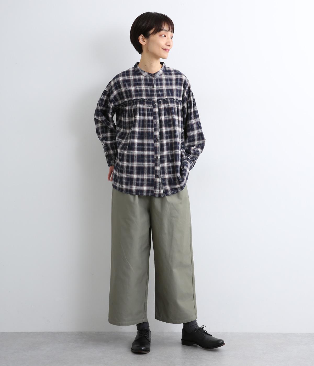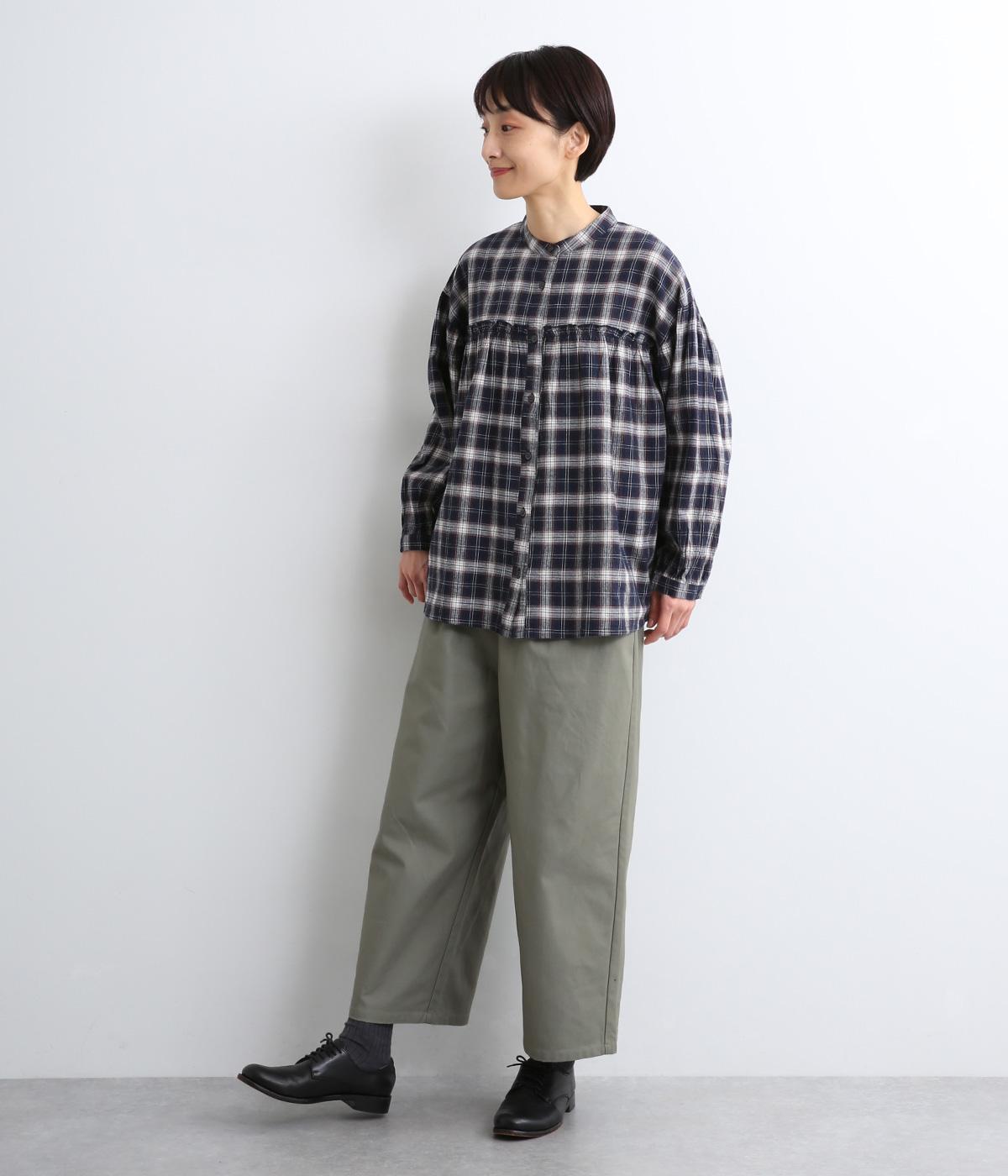 丈夫でシワも気になりにくくデイリー使いに最適なコットンツイル生地を使用。あえて裏面を使用することで、ネップのようなナチュラルな風合いをさらに惹き立てています。