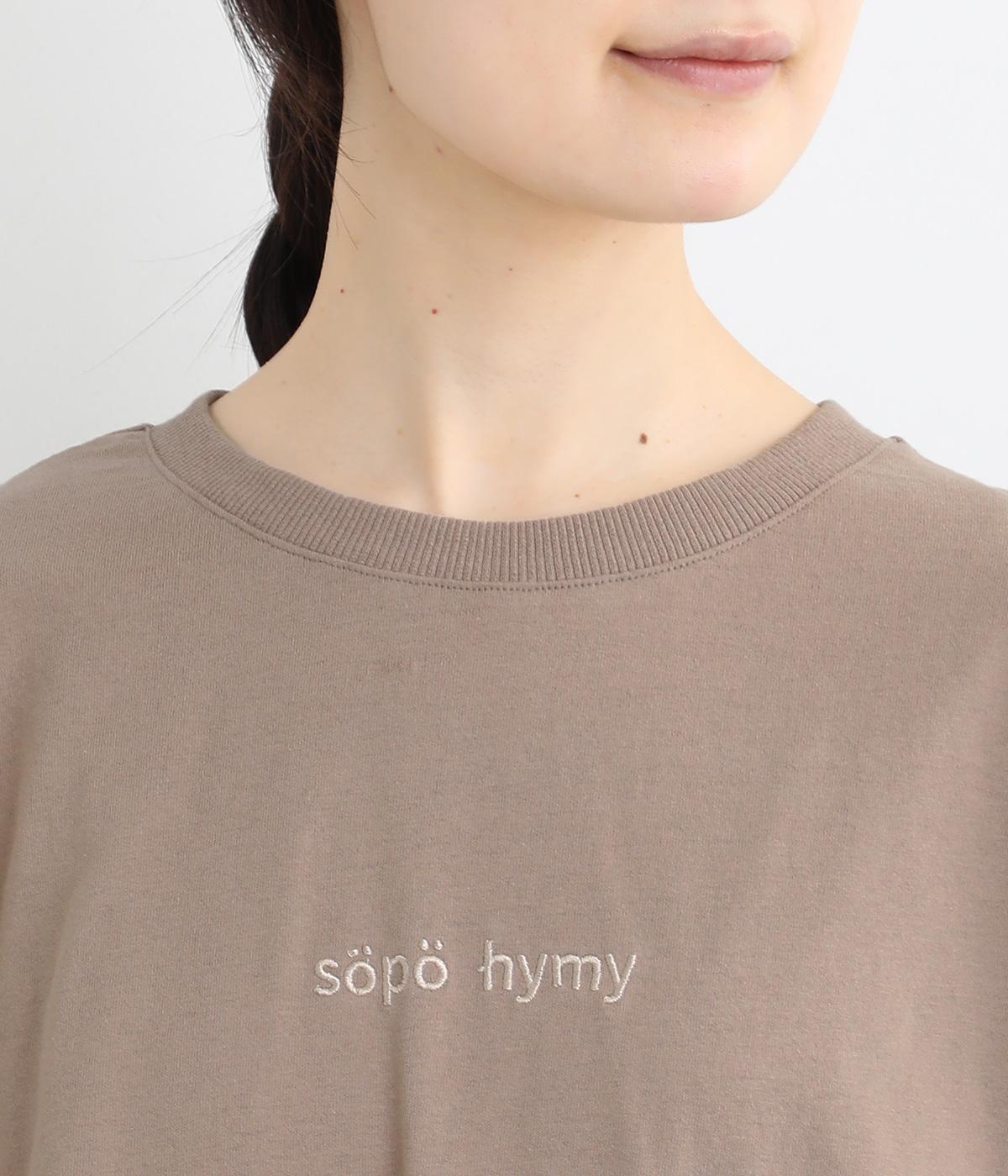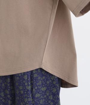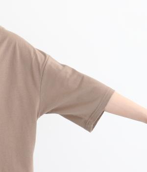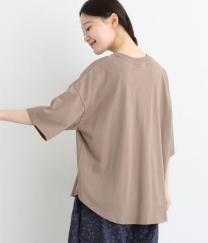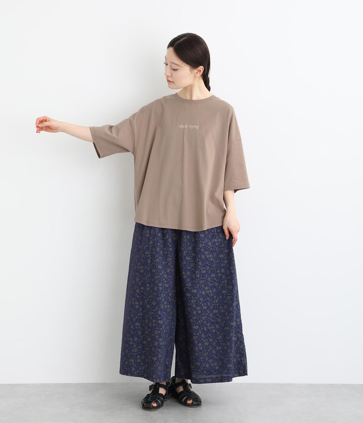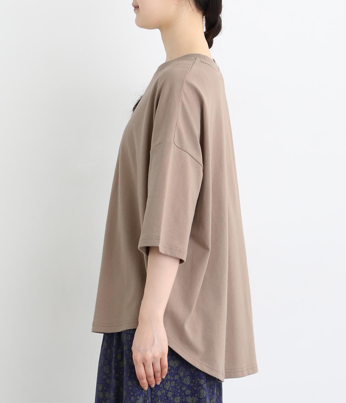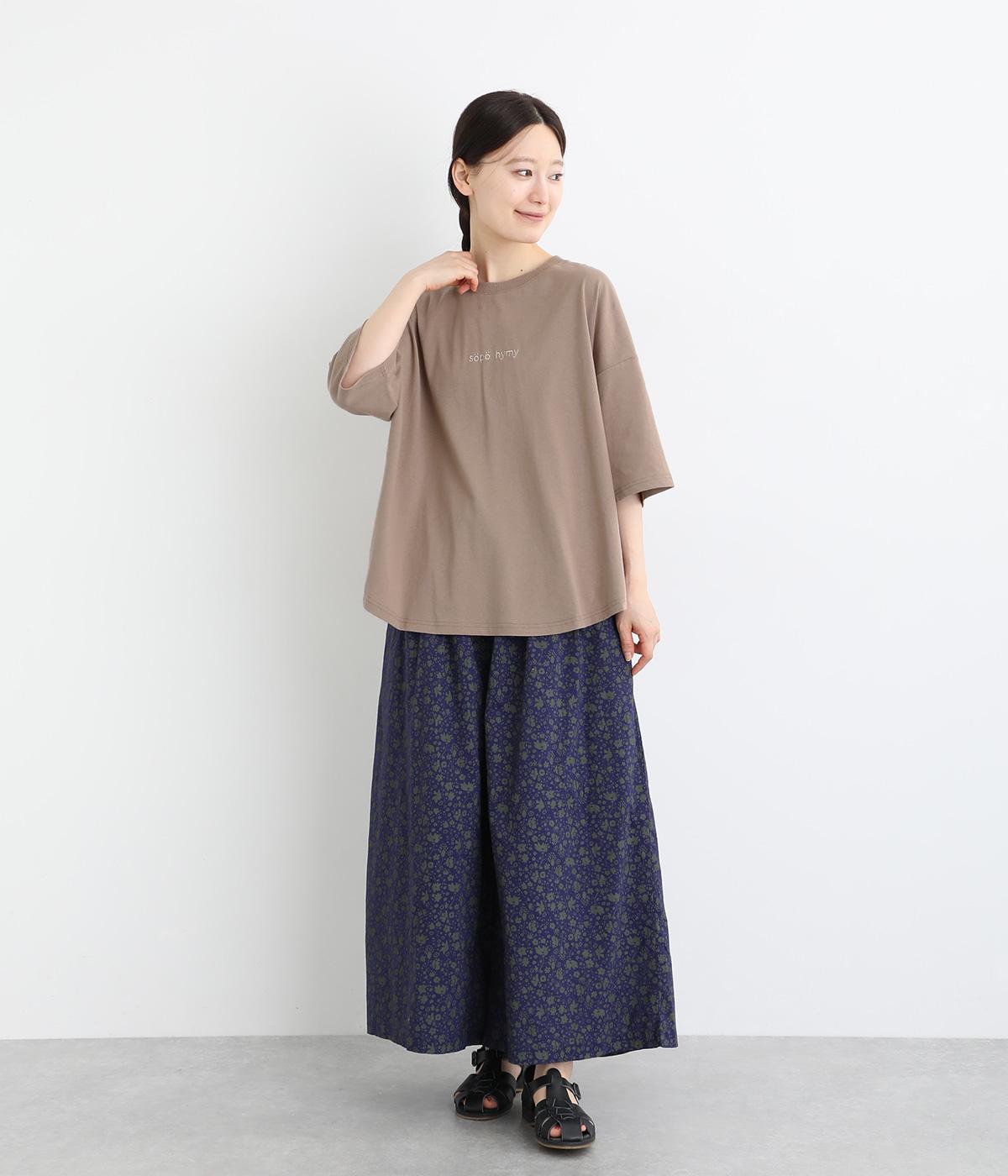 フロントのロゴ刺しゅうがアクセントになったTシャツ。ワイドシルエットと六分袖でゆるっとカジュアルに着られます。裾は丸みのあるカッティングで、トップスインしなくてもバランスが取りやすいです。