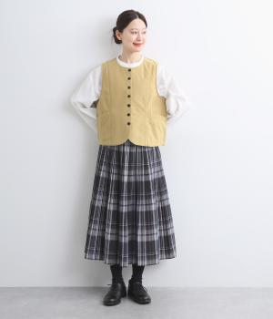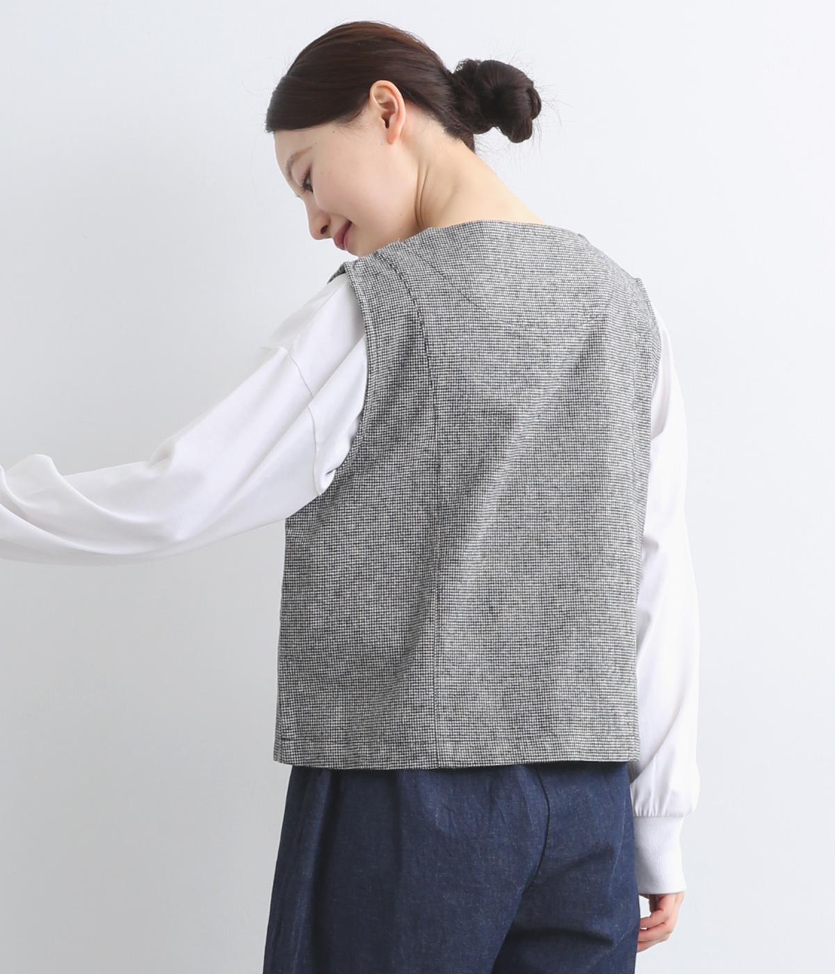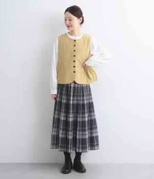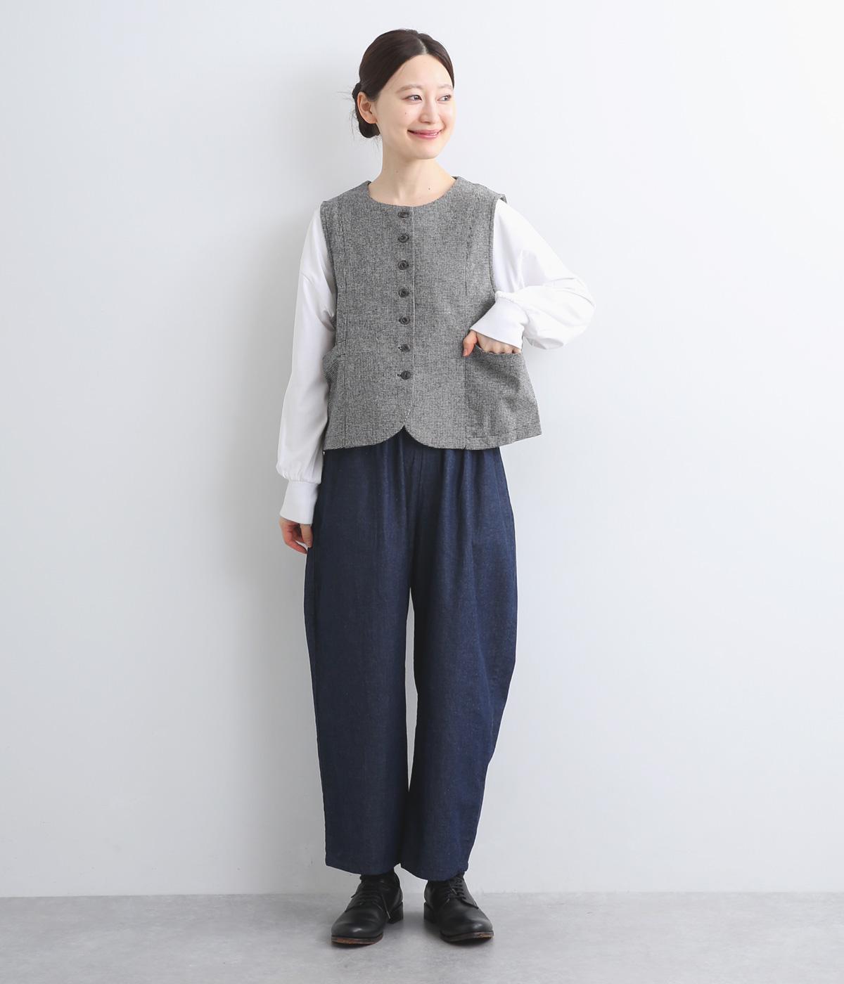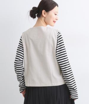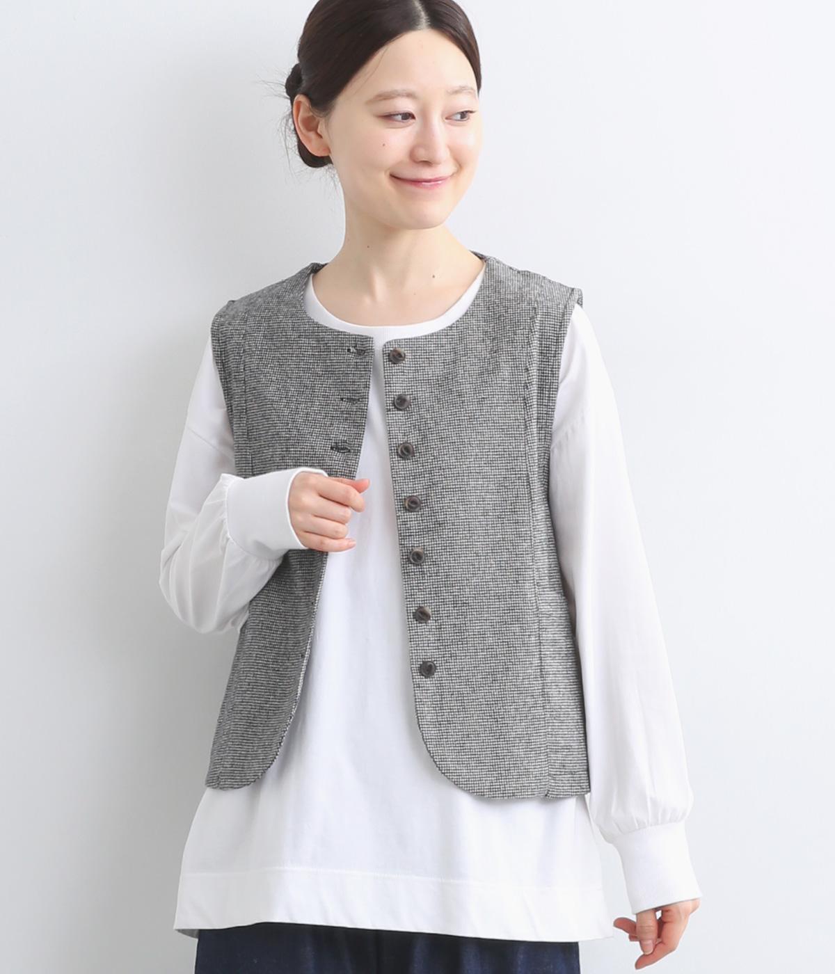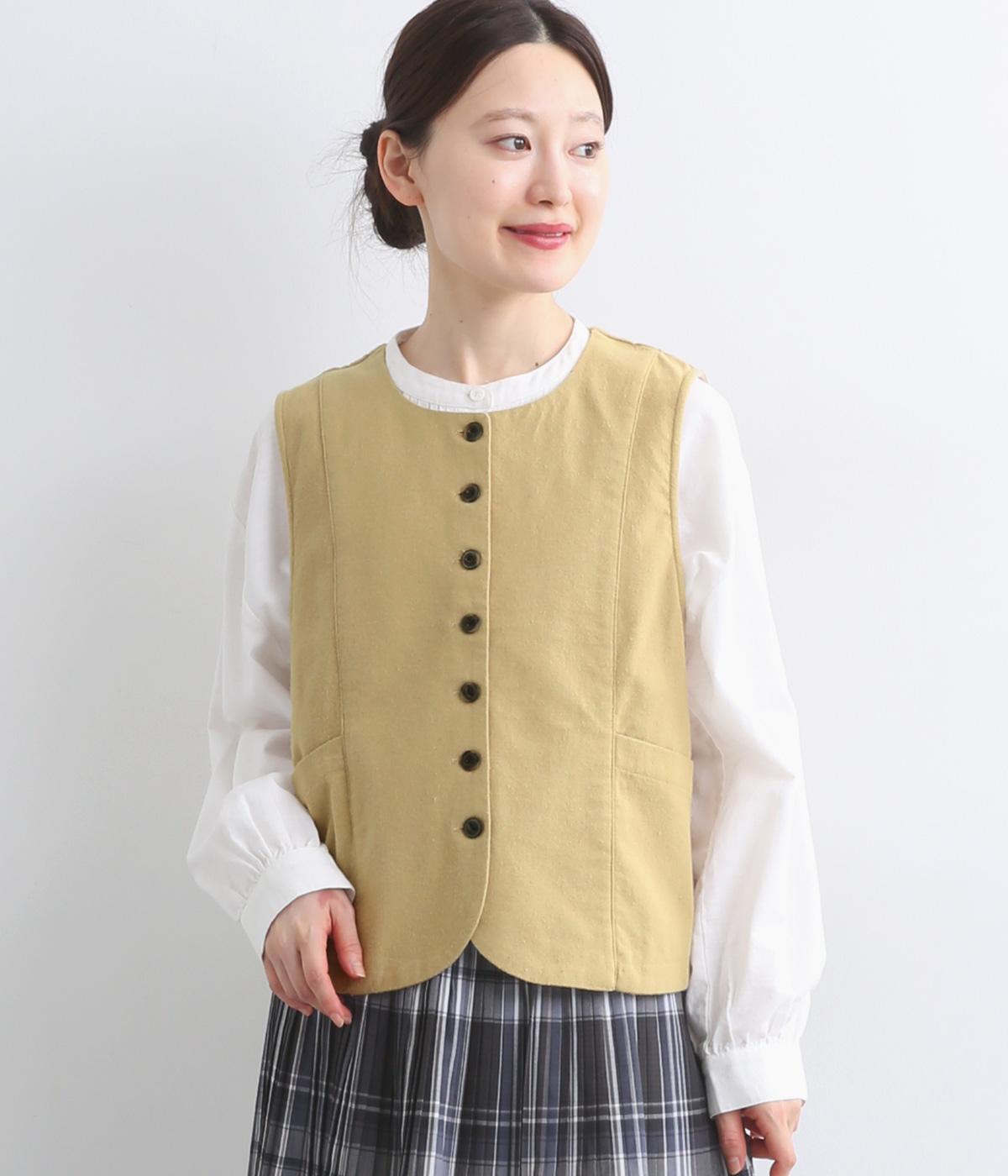 裾をラウンドカットした、すっきりとしたシルエットのベストです。アームホールにはゆとりを持たせているため、多彩なトップス合わせができるのも魅力です。コンパクトな着丈はワンピースとの相性も◎。