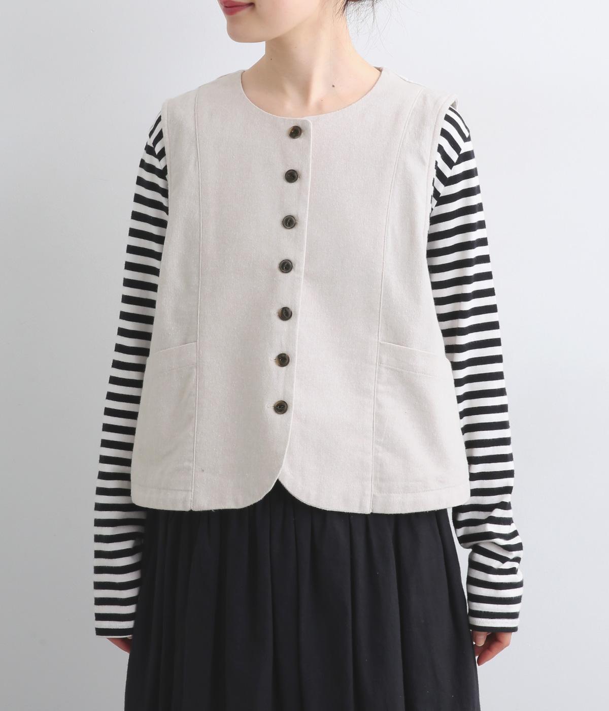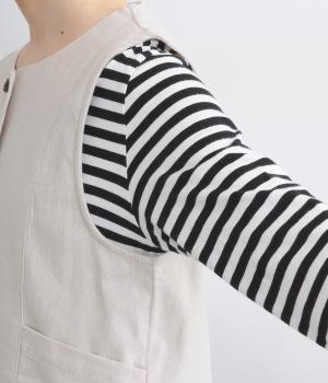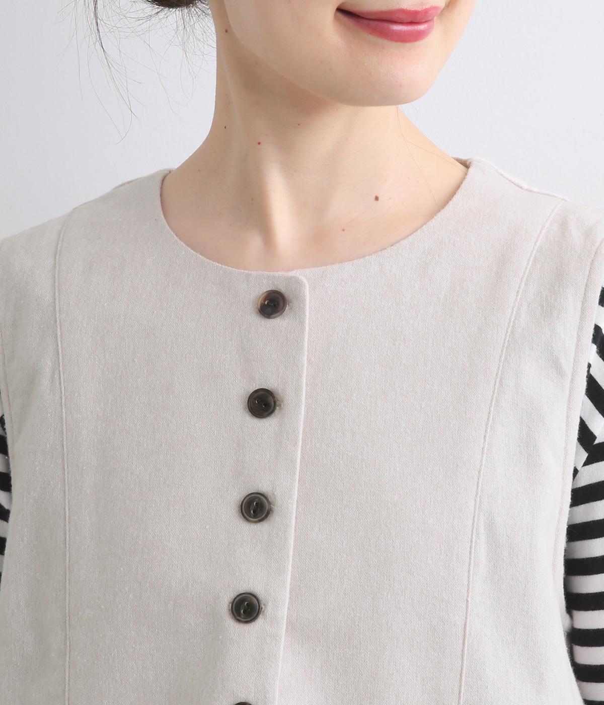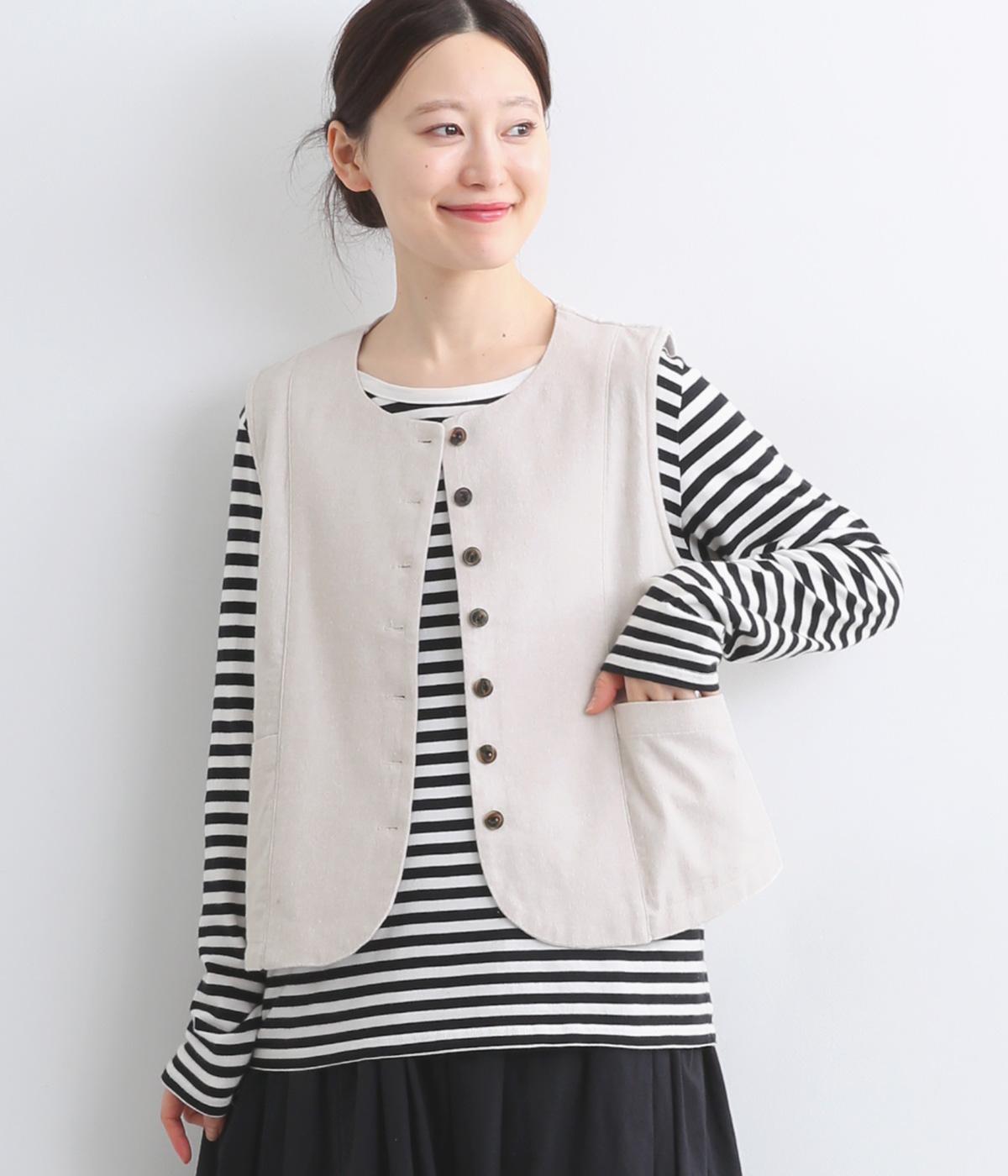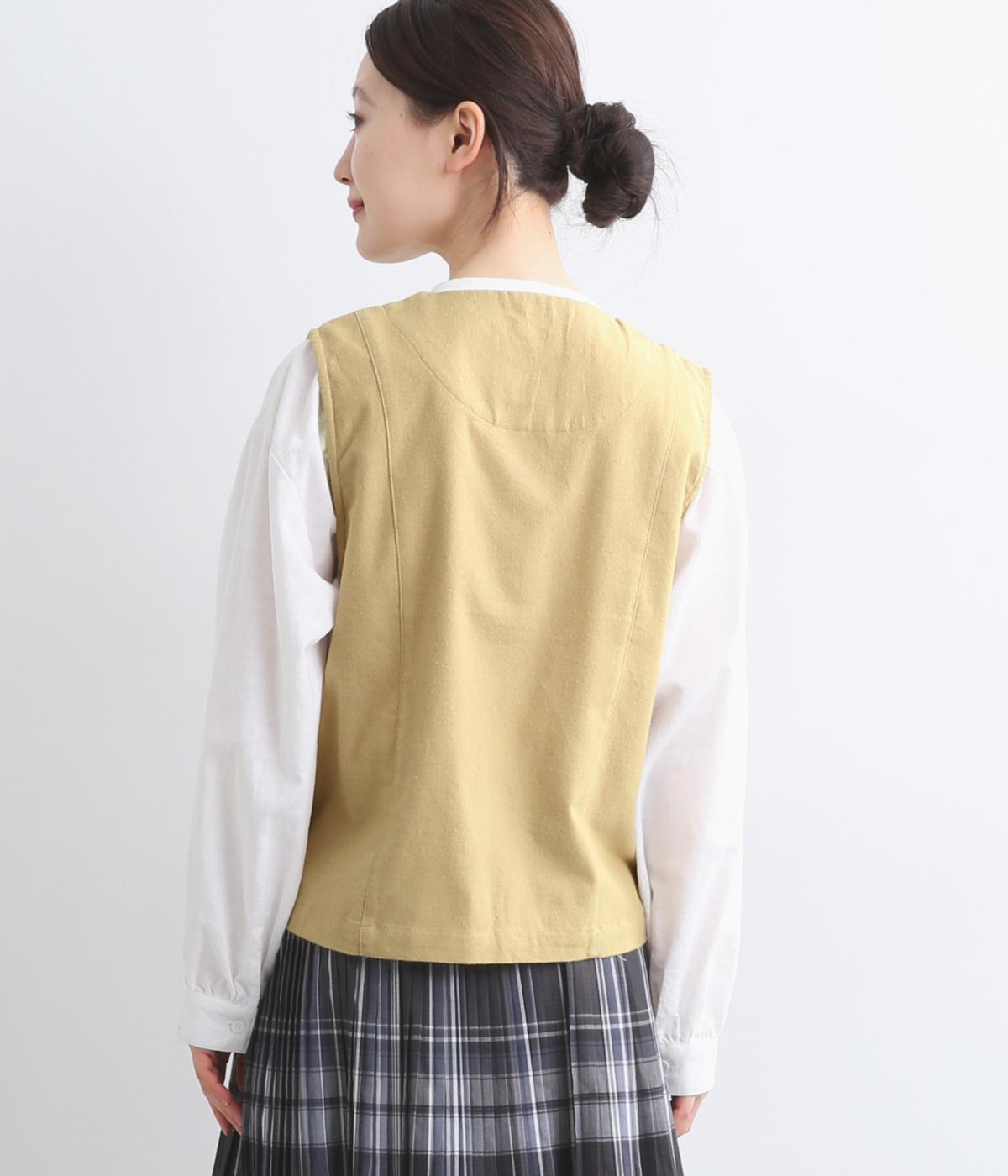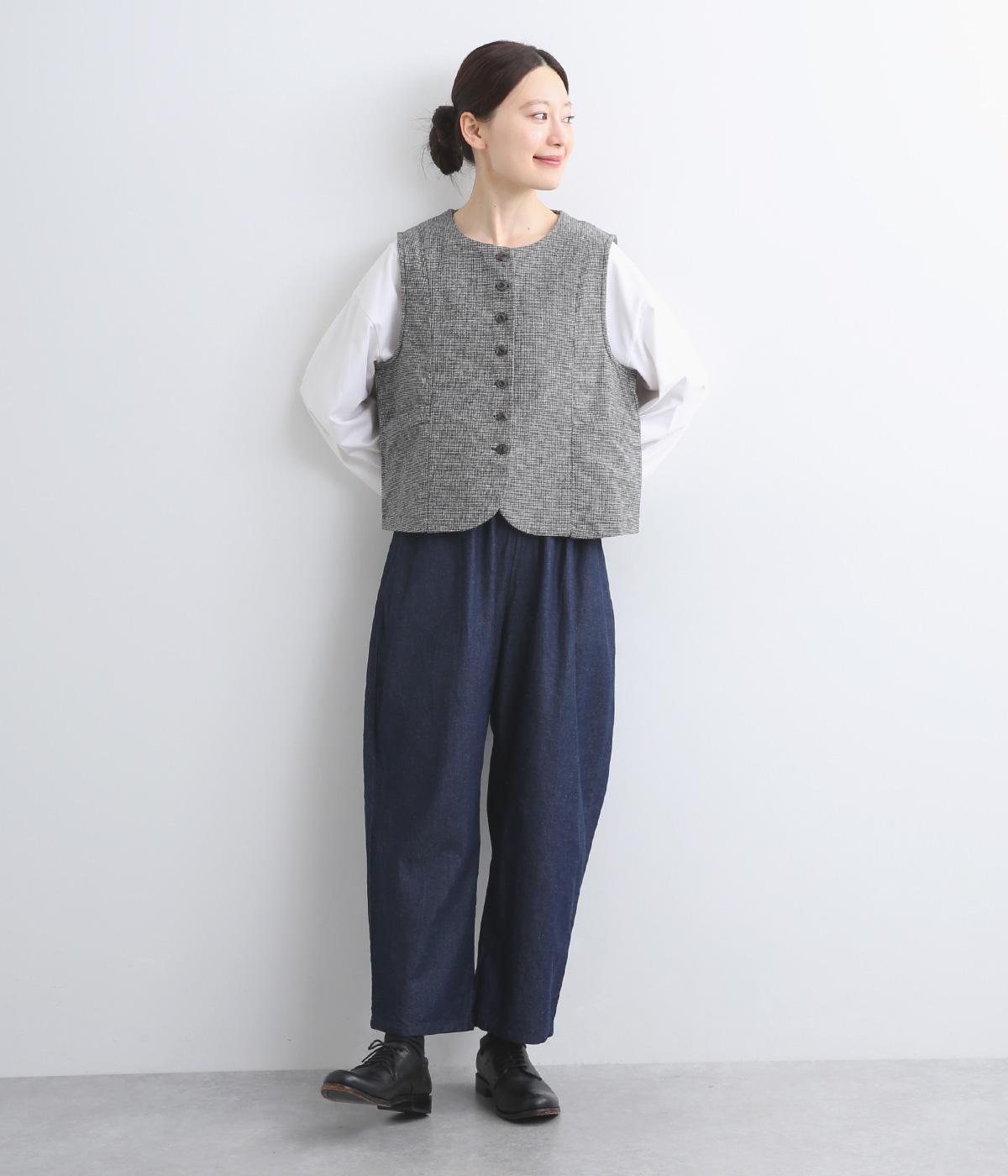 裾をラウンドカットした、すっきりとしたシルエットのベストです。アームホールにはゆとりを持たせているため、多彩なトップス合わせができるのも魅力です。コンパクトな着丈はワンピースとの相性も◎。
