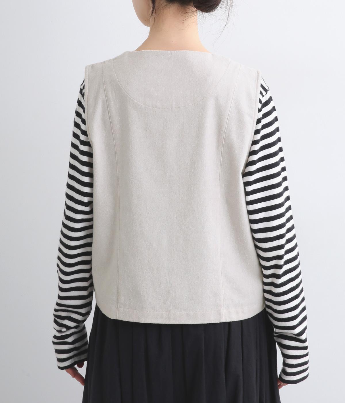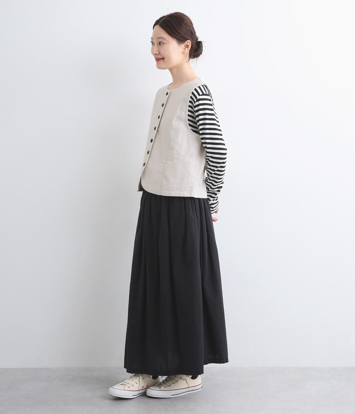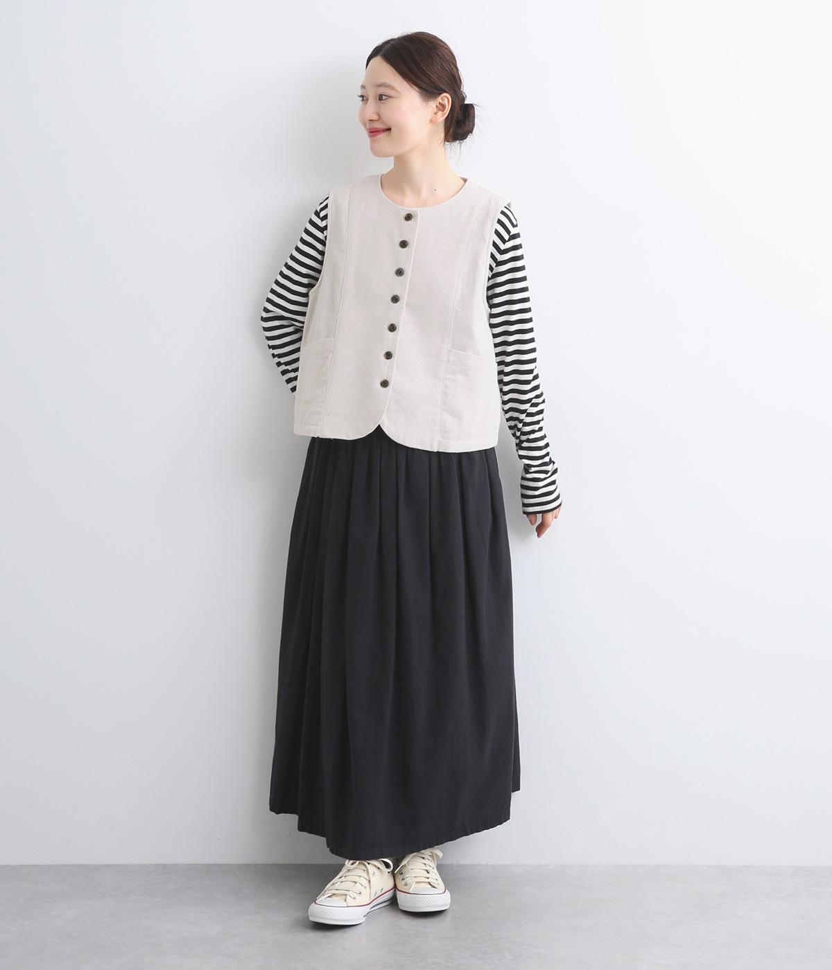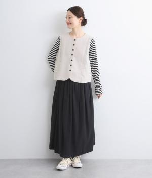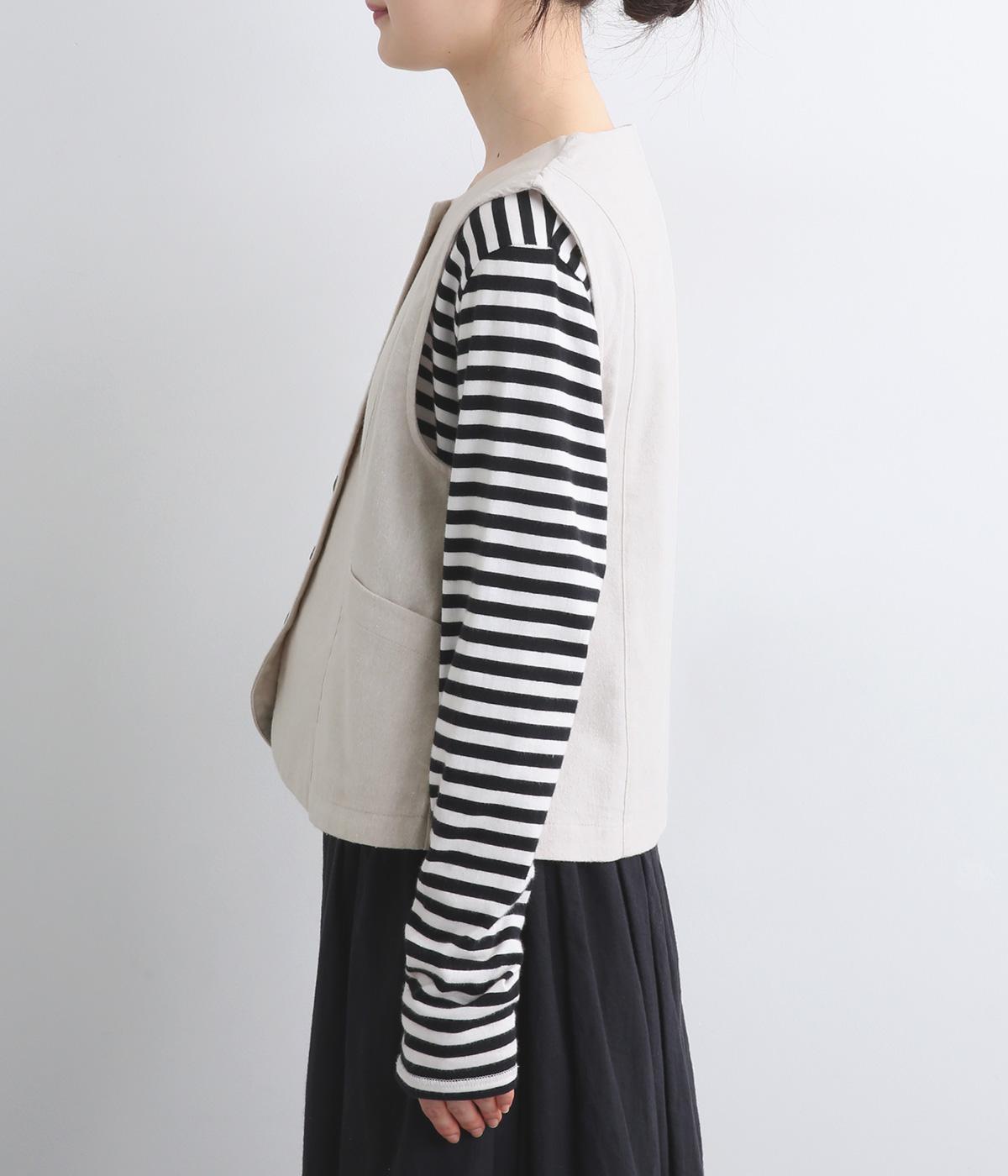 裾をラウンドカットした、すっきりとしたシルエットのベストです。アームホールにはゆとりを持たせているため、多彩なトップス合わせができるのも魅力です。コンパクトな着丈はワンピースとの相性も◎。
