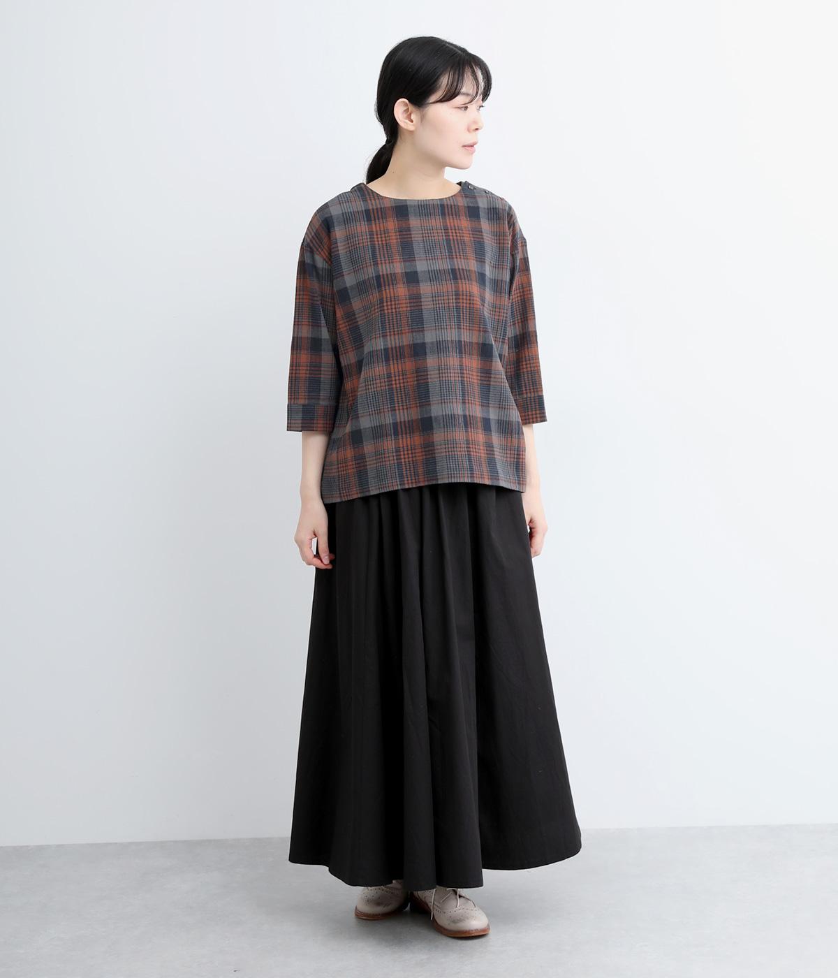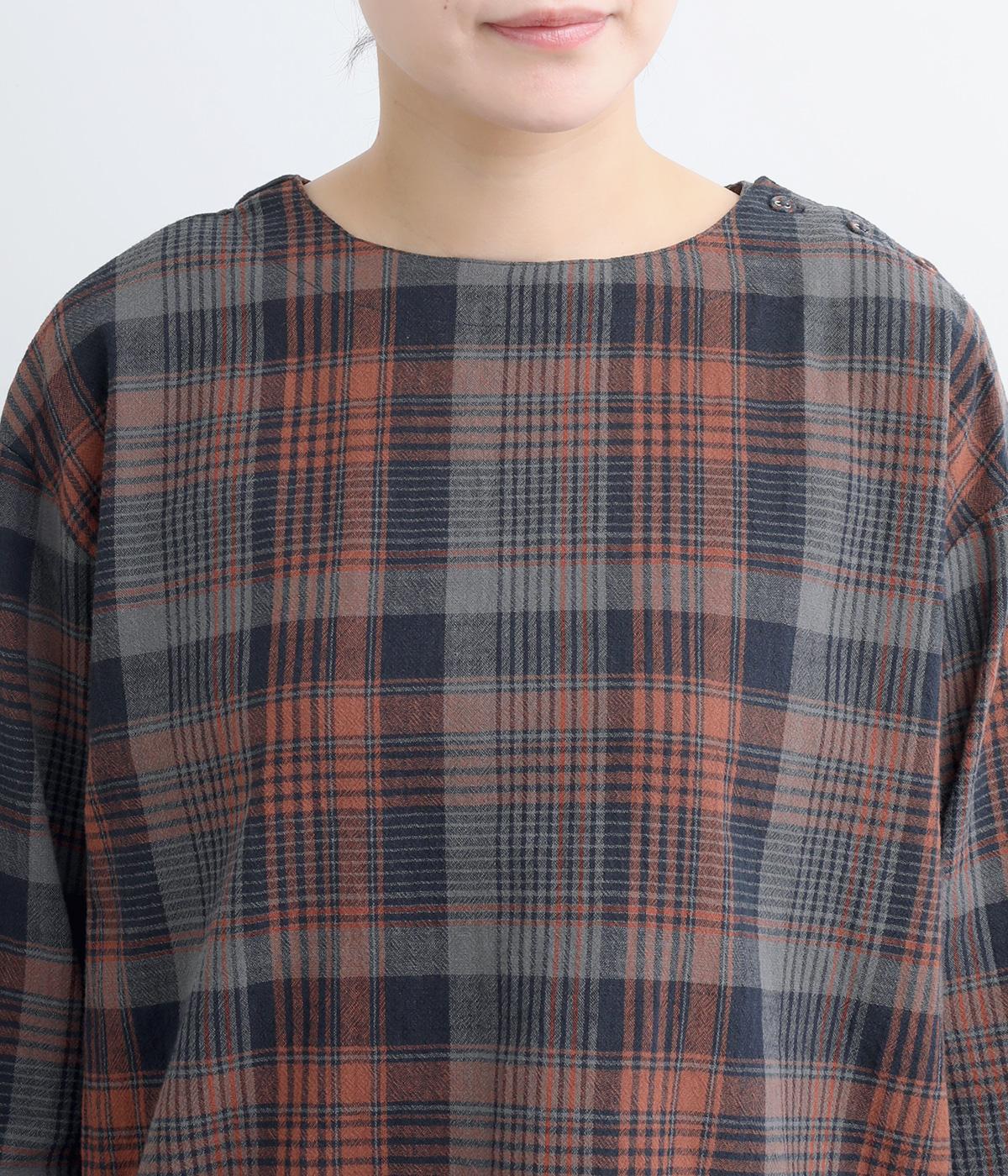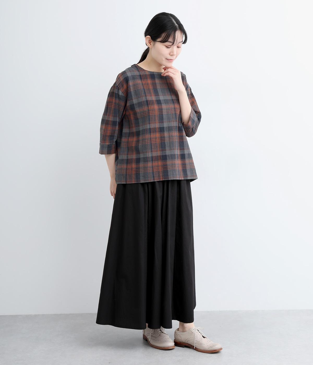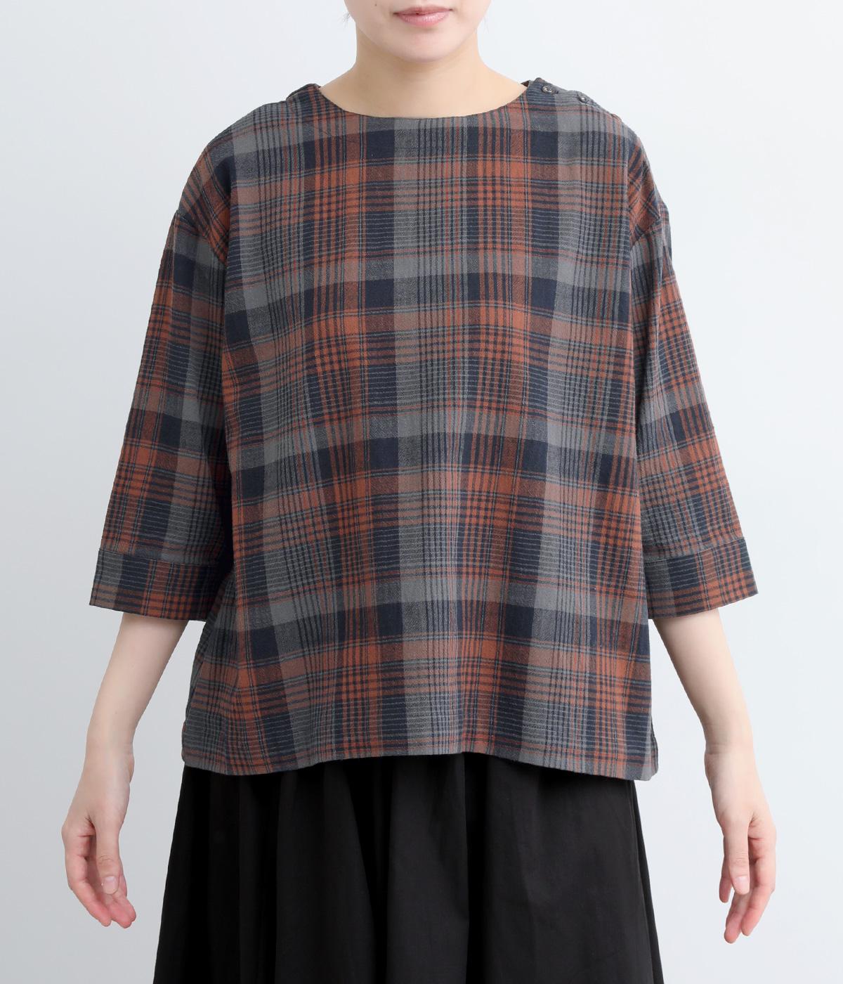 チェック柄のクラシックな雰囲気が引き立つシンプルなプルオーバーブラウス。ひじが隠れる六分袖で、着こなしのバランスがすっきりと仕上がります。スリット入りの袖口は一折してもアクセントに。デニム合わせでカジュアルに、スカート合わせでお出かけにと、幅広いシーンで活躍します。
