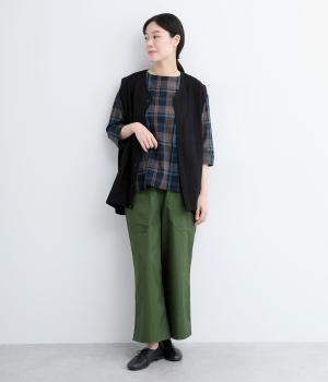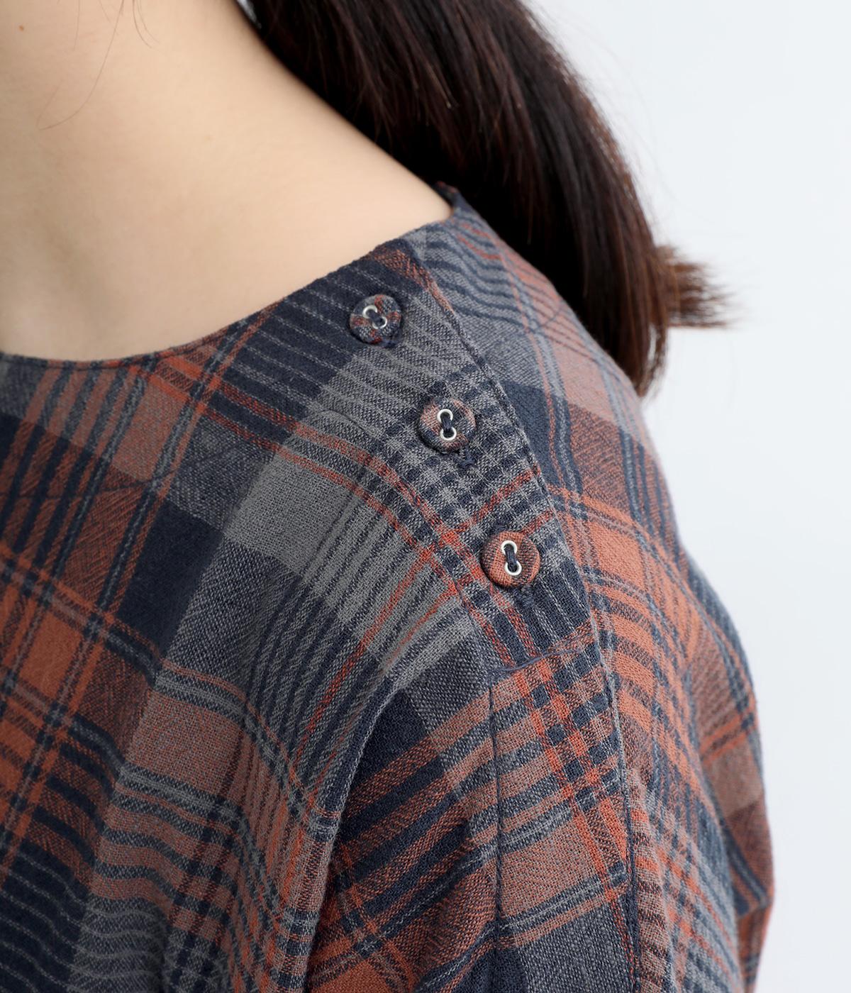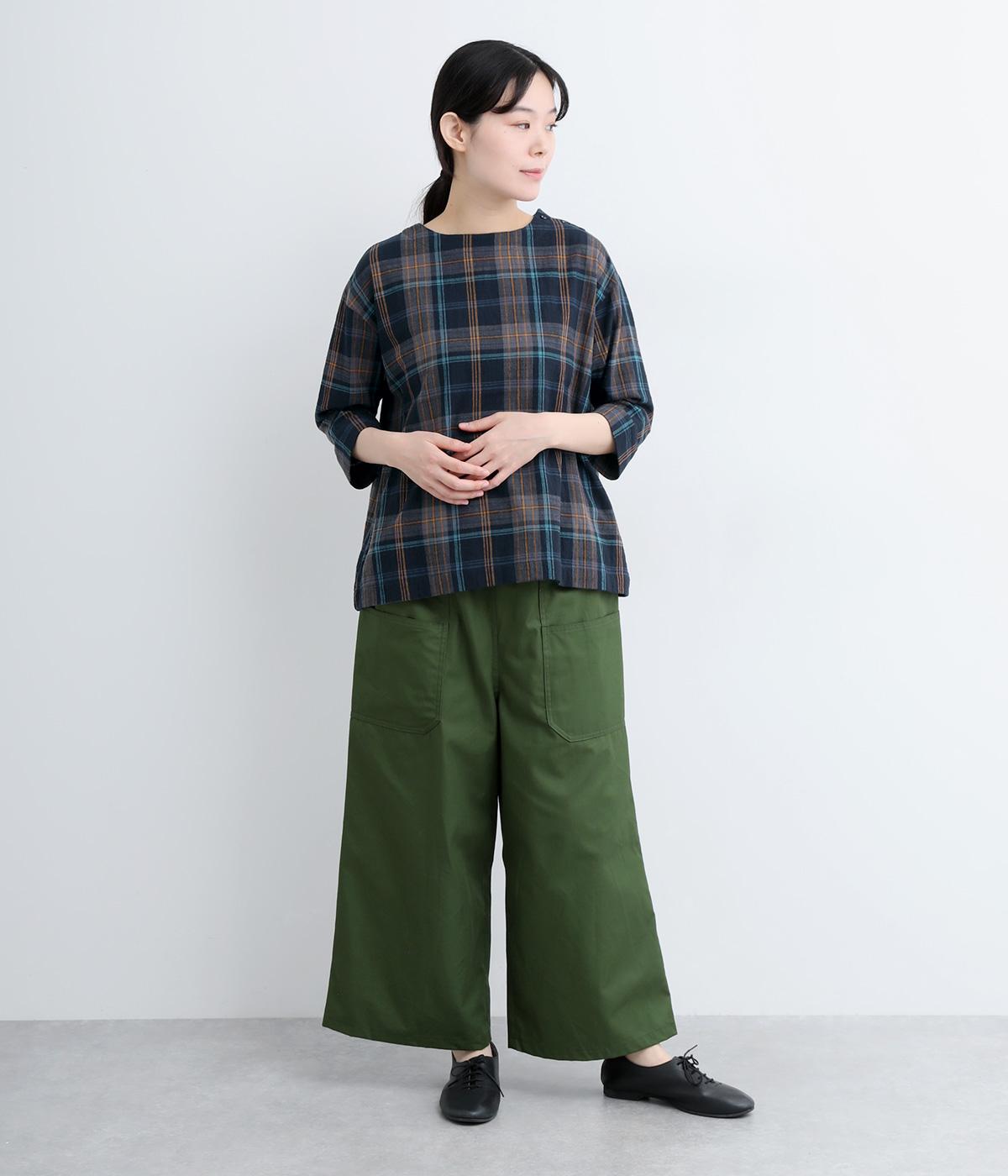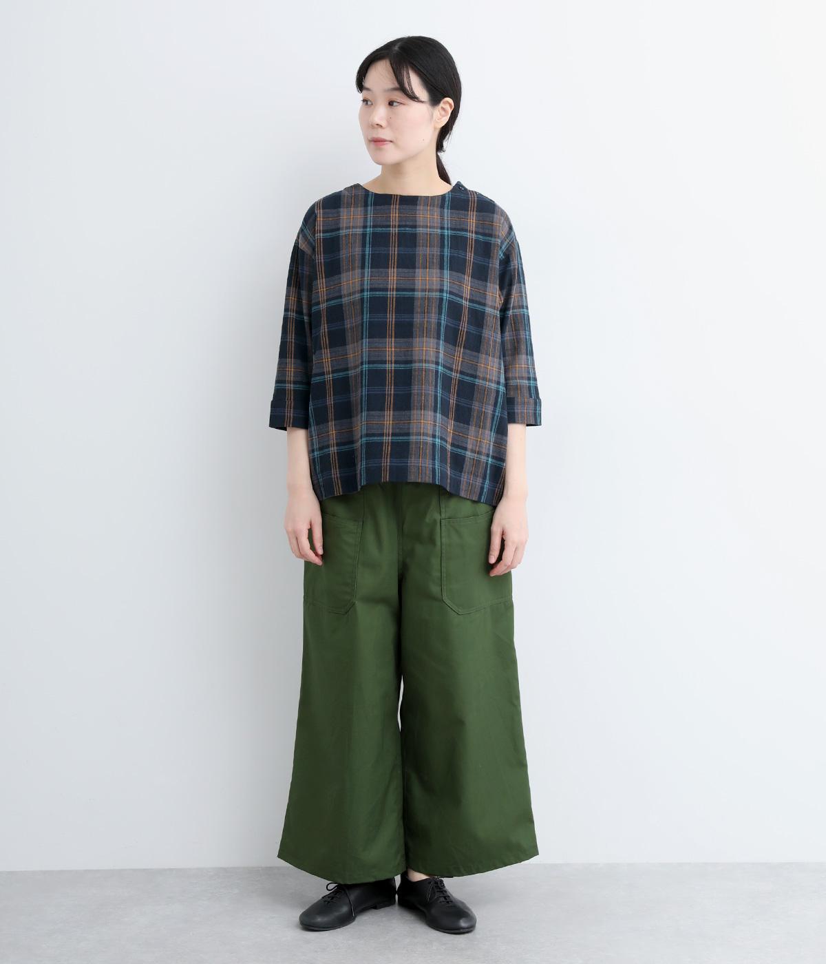 チェック柄のクラシックな雰囲気が引き立つシンプルなプルオーバーブラウス。ひじが隠れる六分袖で、着こなしのバランスがすっきりと仕上がります。スリット入りの袖口は一折してもアクセントに。デニム合わせでカジュアルに、スカート合わせでお出かけにと、幅広いシーンで活躍します。
