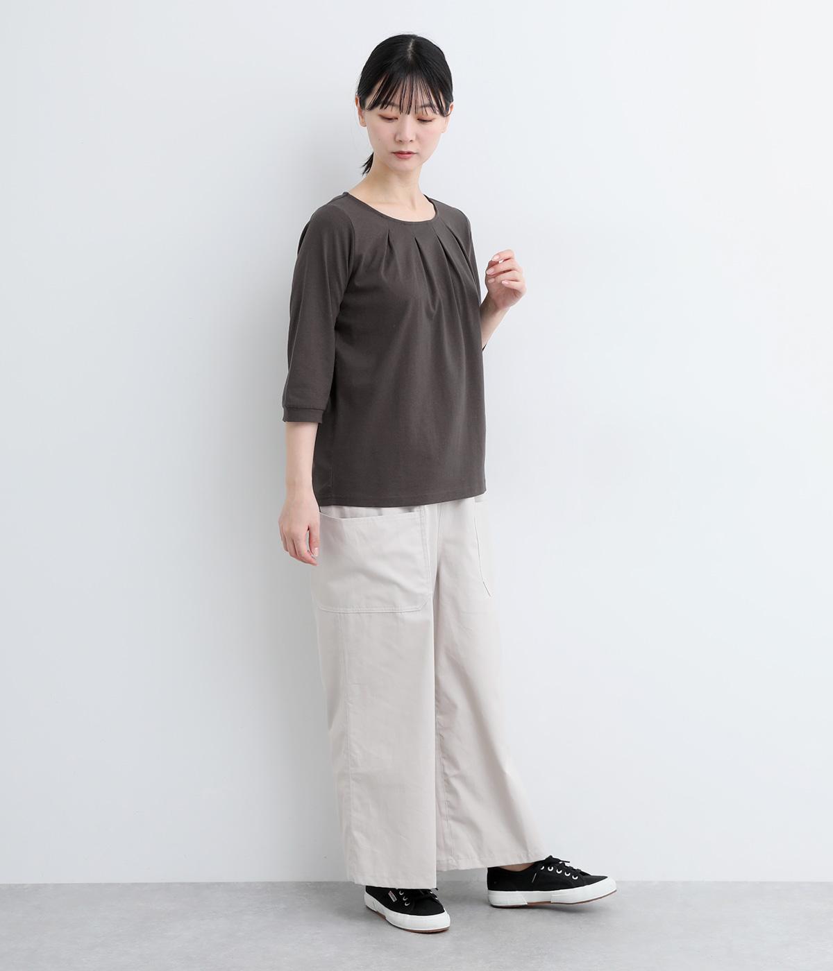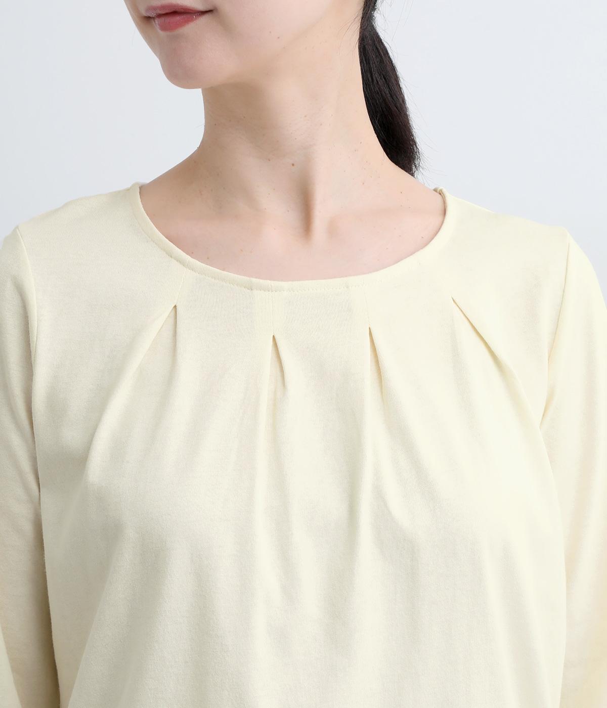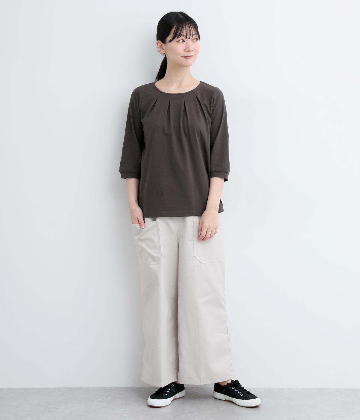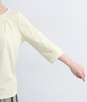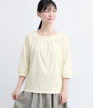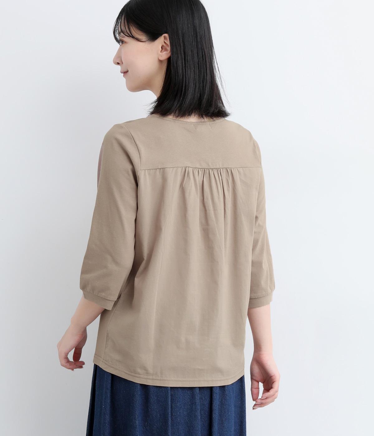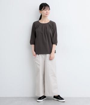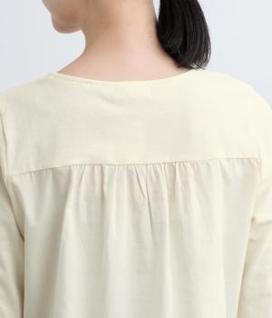 フロントにはタック、バックには異素材使いにギャザーと、一見シンプルながらもこだわりのつまった一枚。立体的なシルエットで、いつものボトムに合わせるだけでバランスのいい着こなしに仕上がります。