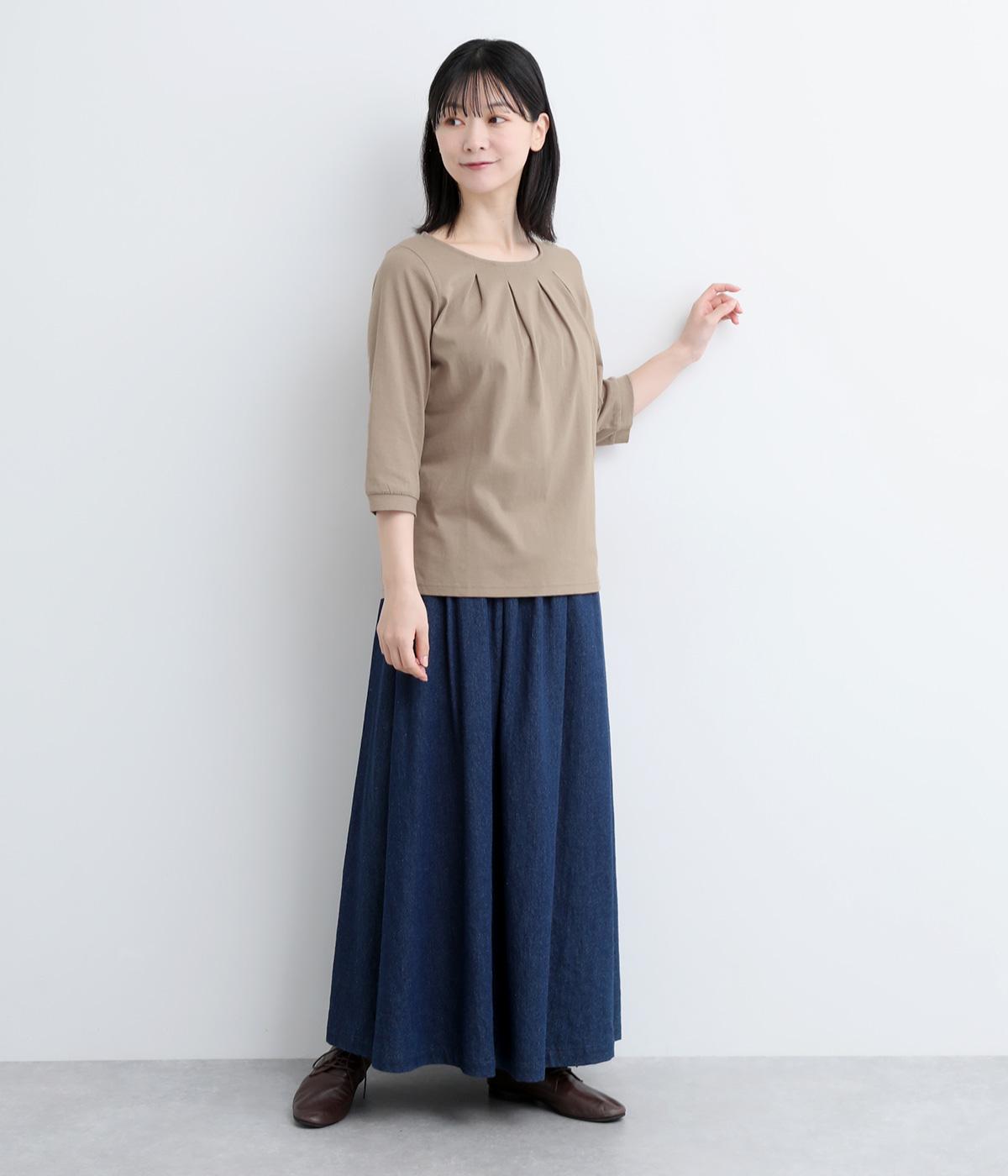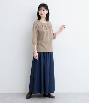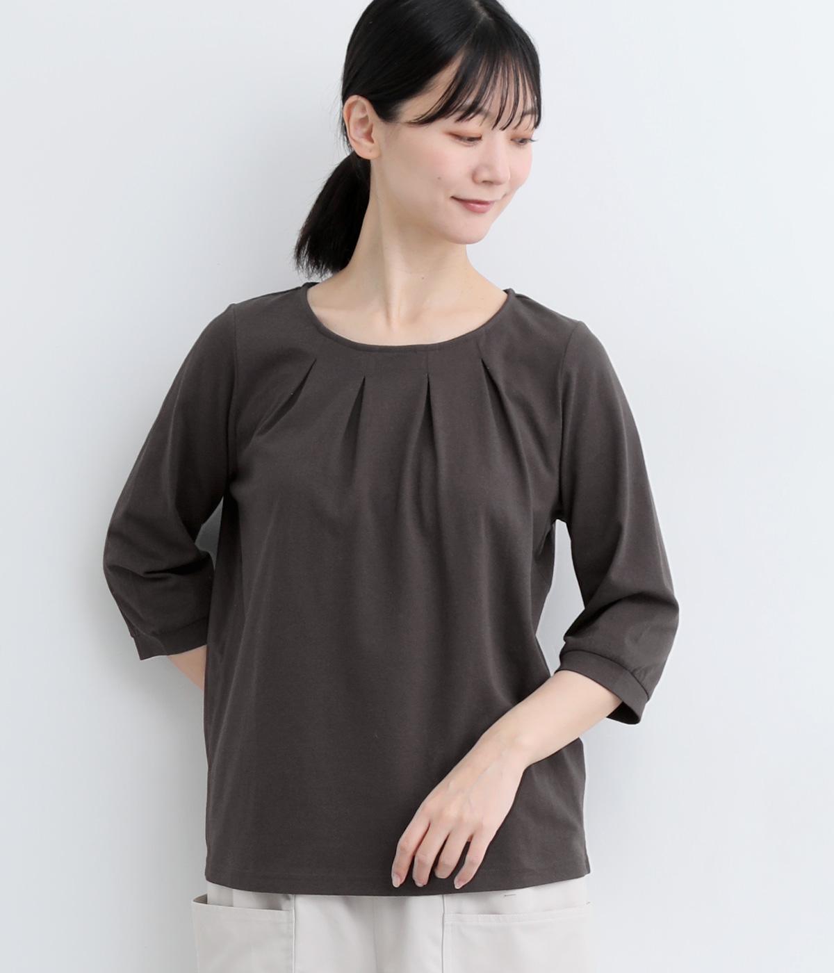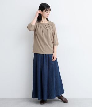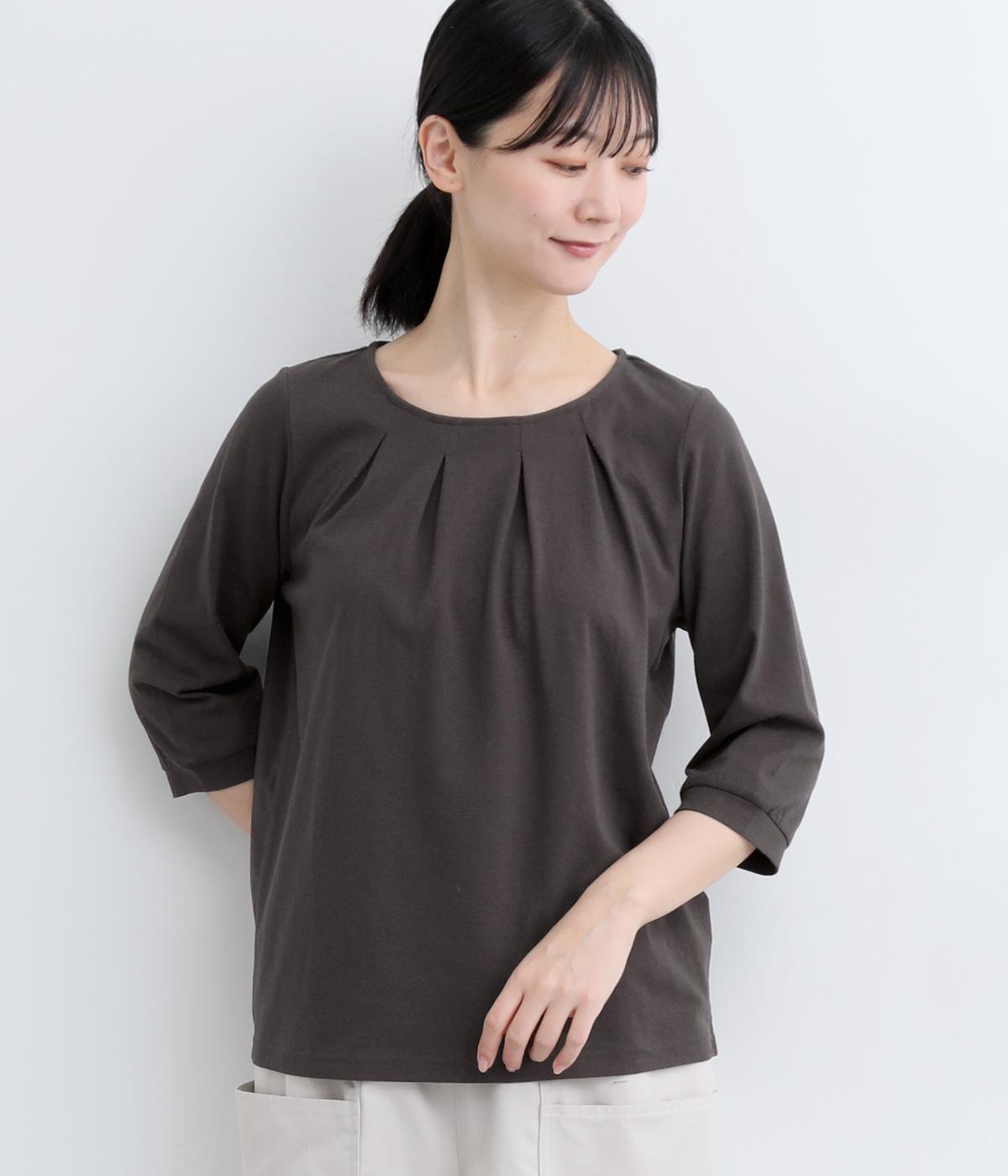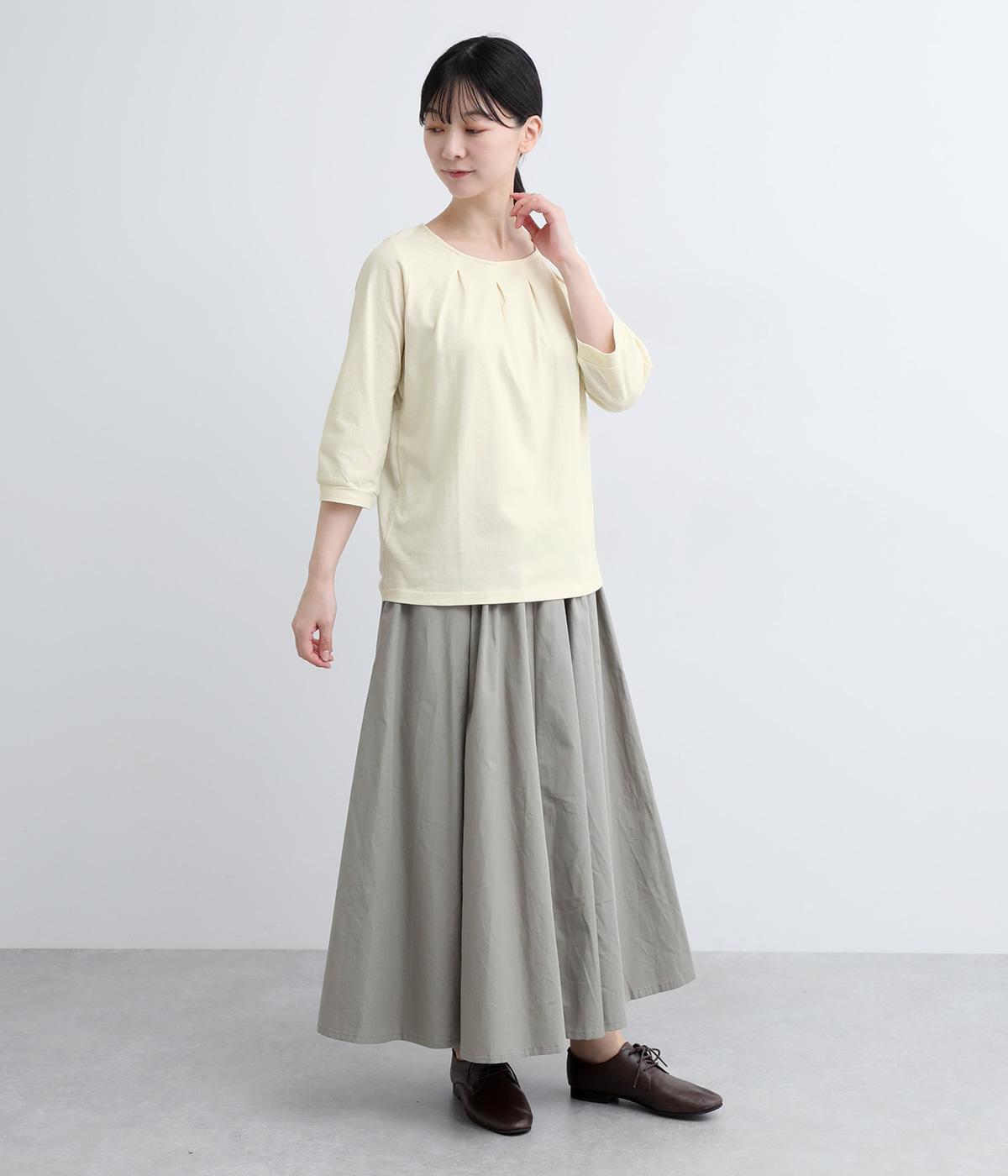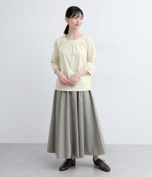フロントにはタック、バックには異素材使いにギャザーと、一見シンプルながらもこだわりのつまった一枚。立体的なシルエットで、いつものボトムに合わせるだけでバランスのいい着こなしに仕上がります。