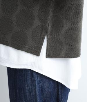 さらっとしたドライタッチでやわらかく着心地のいいドット柄ジャカード生地を使用。コットンをベースにポリエステルをまぜて速乾性良く軽やかに仕上げました。