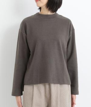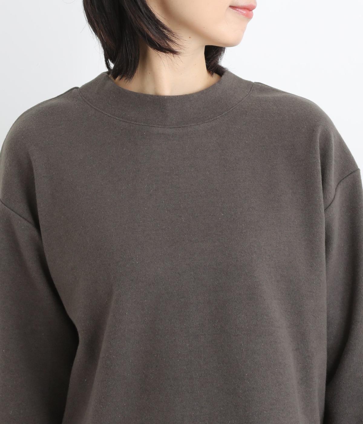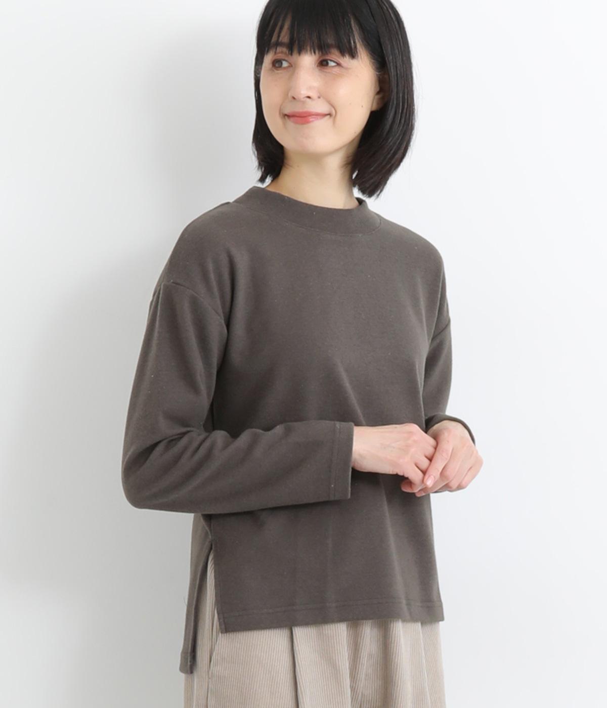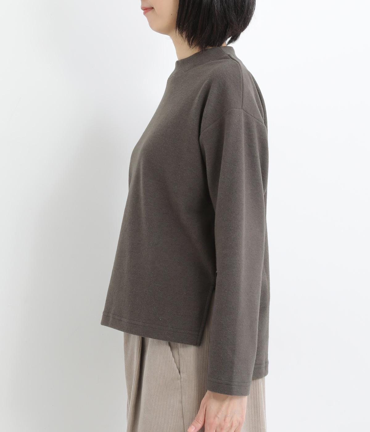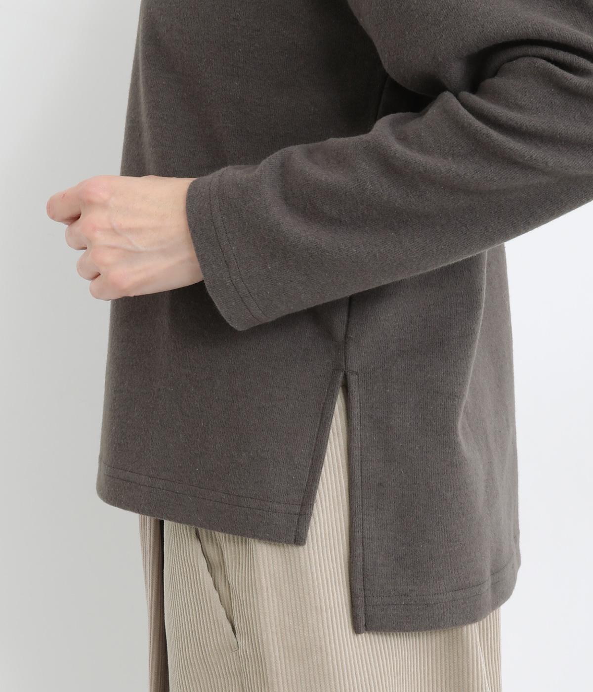 素材の持つあたたかみと表情を活かした、シンプルな長袖プルオーバーです。モックネックで防寒性と顔まわりのニュアンスを追加。裾は前後差をつけたスリット入りでボトム合わせしやすく、横姿もすっきりきれいに見えます。