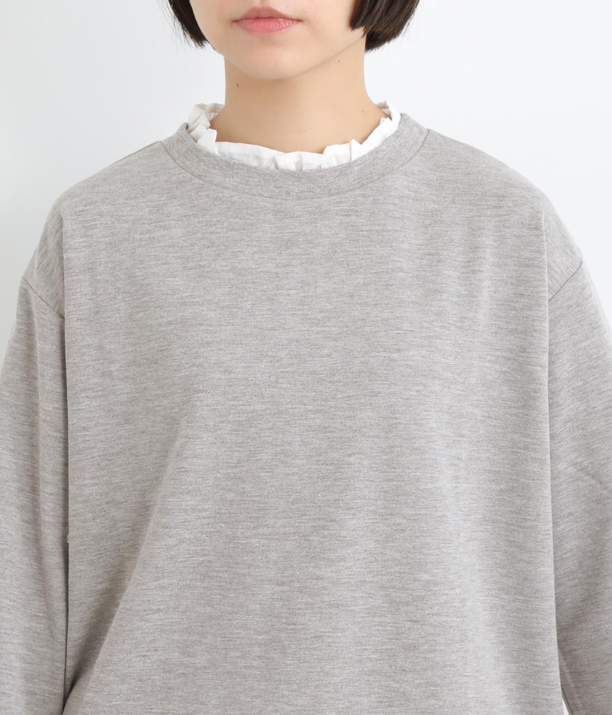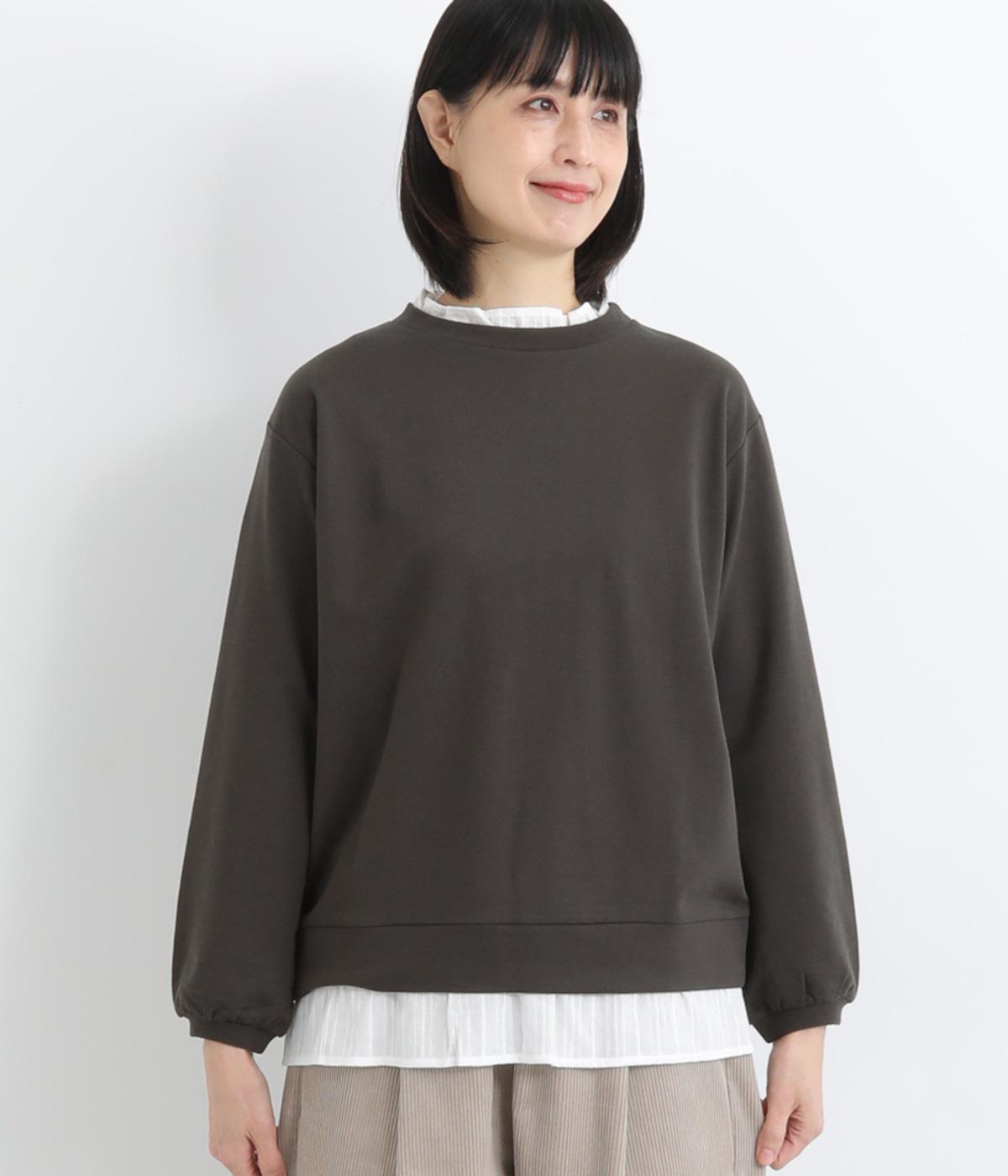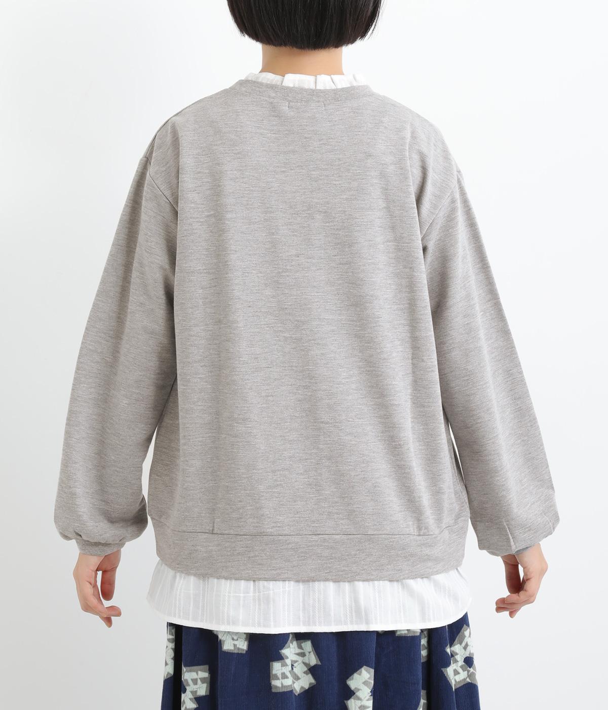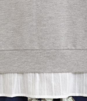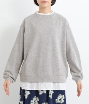 フリルシャツをレイヤードしているようなフェイクデザインのプルオーバー。カジュアルさとフェミニンなディテールのバランスが絶妙で、さっと被るだけでお洒落スタイルが叶います。適度にゆとりのあるシルエットも◎。