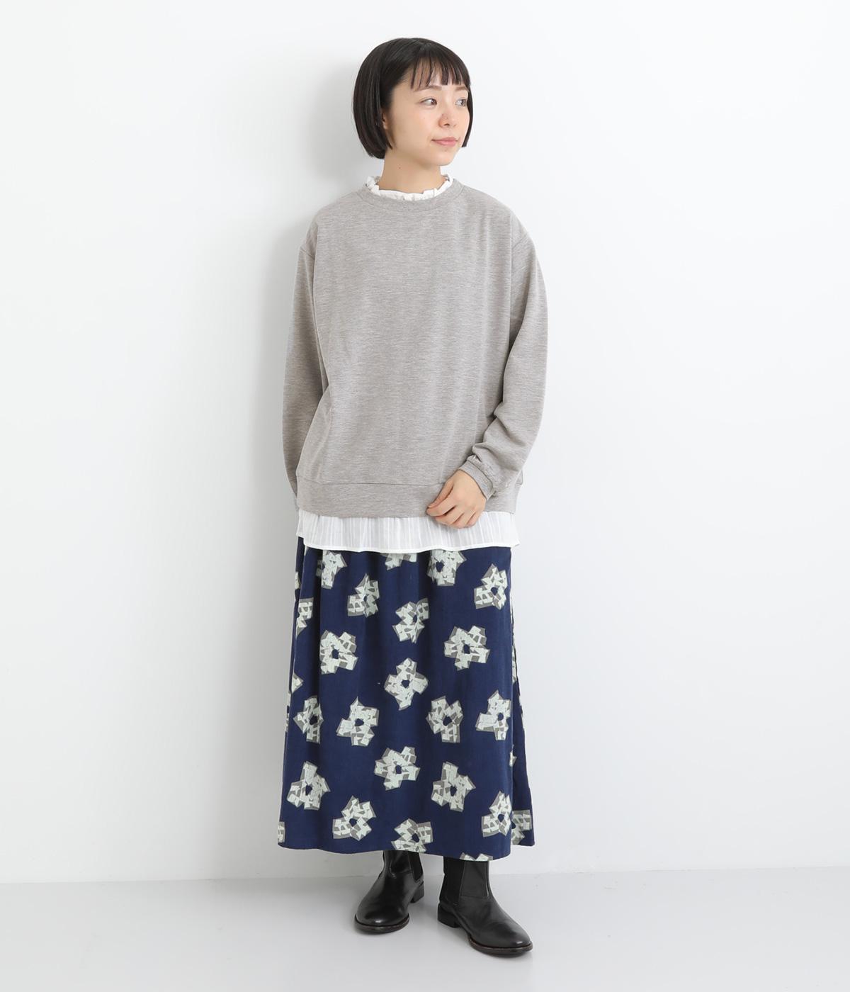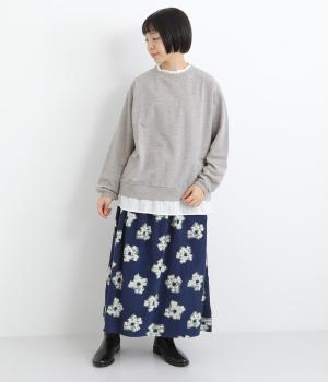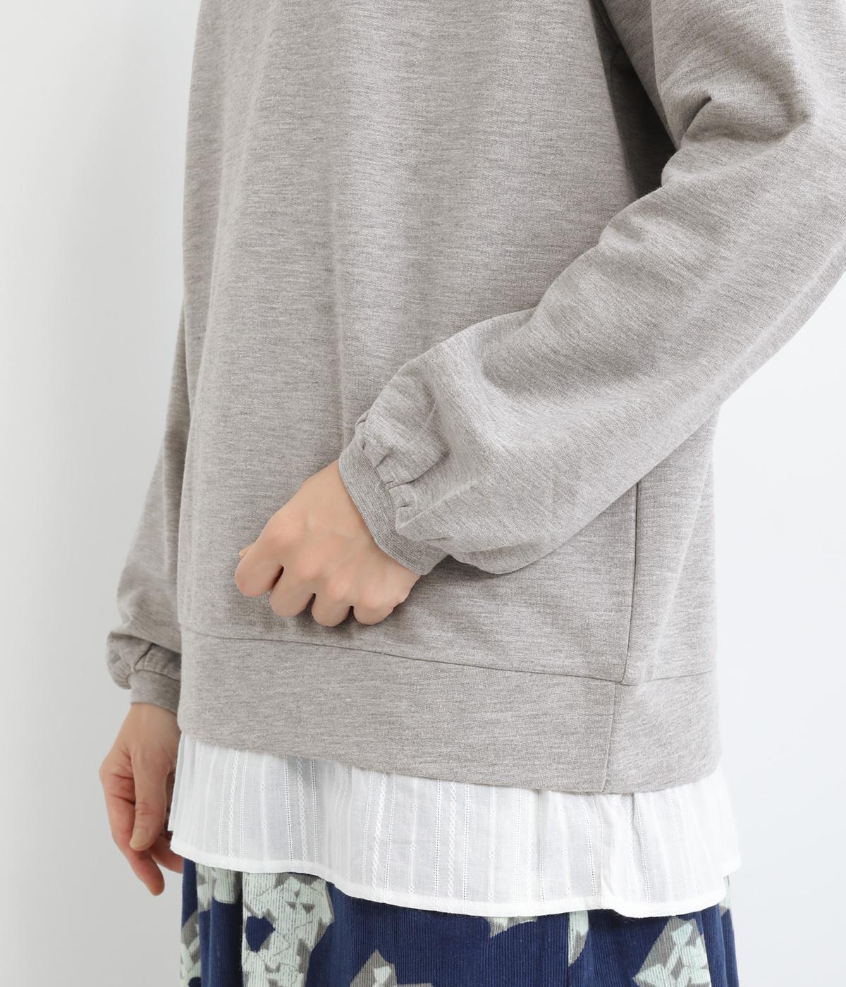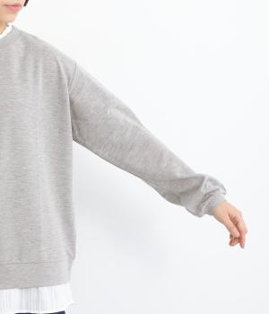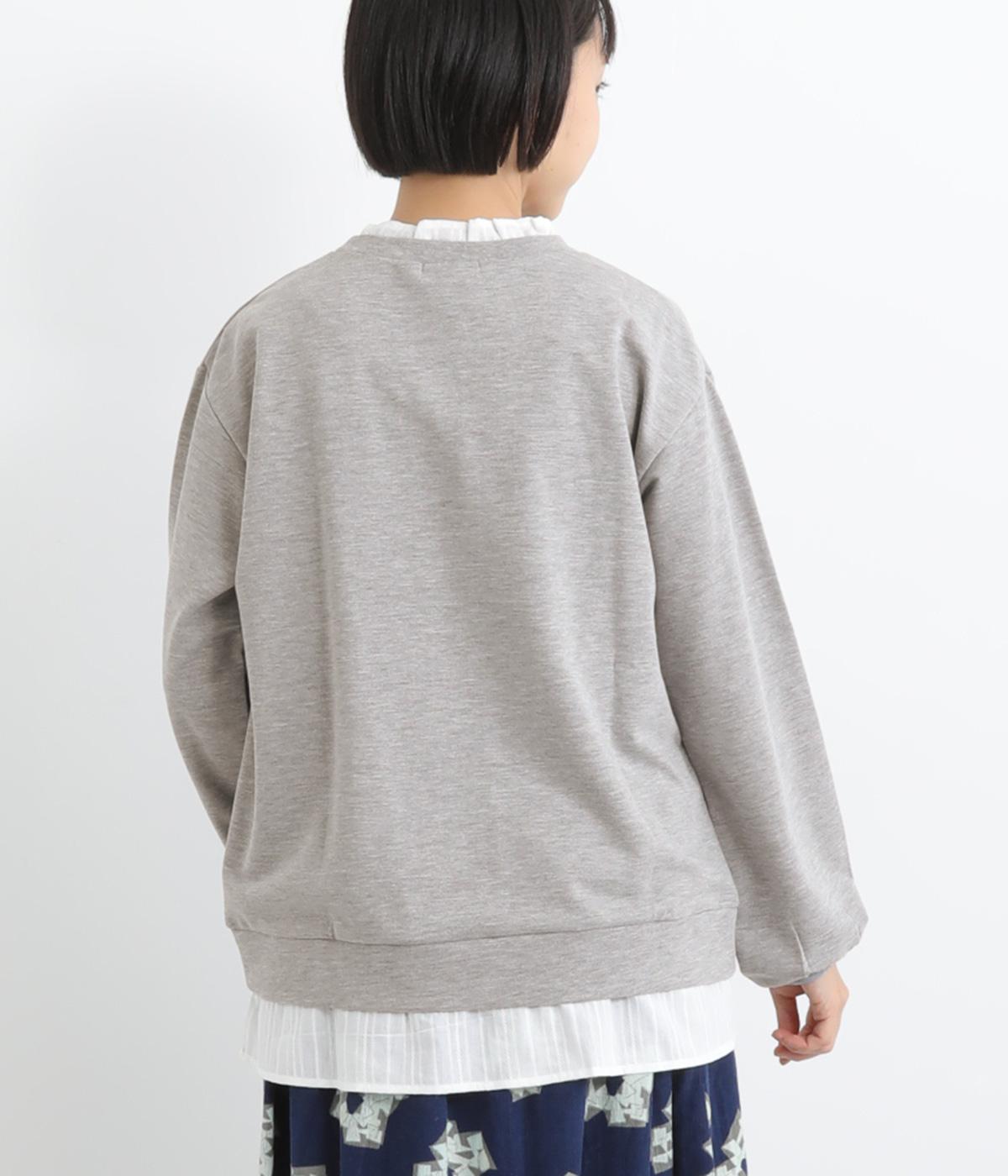 フリルシャツをレイヤードしているようなフェイクデザインのプルオーバー。カジュアルさとフェミニンなディテールのバランスが絶妙で、さっと被るだけでお洒落スタイルが叶います。適度にゆとりのあるシルエットも◎。