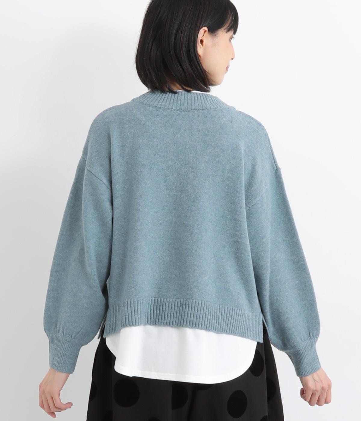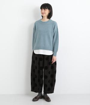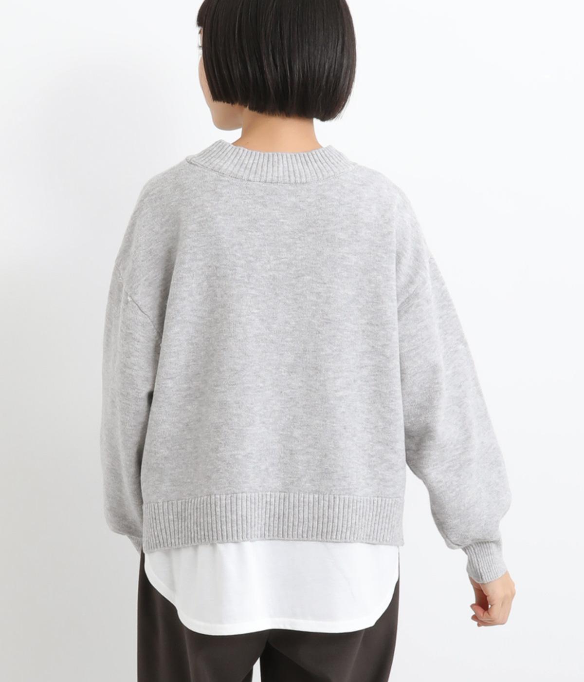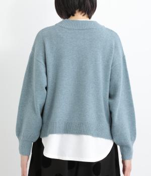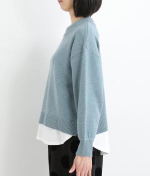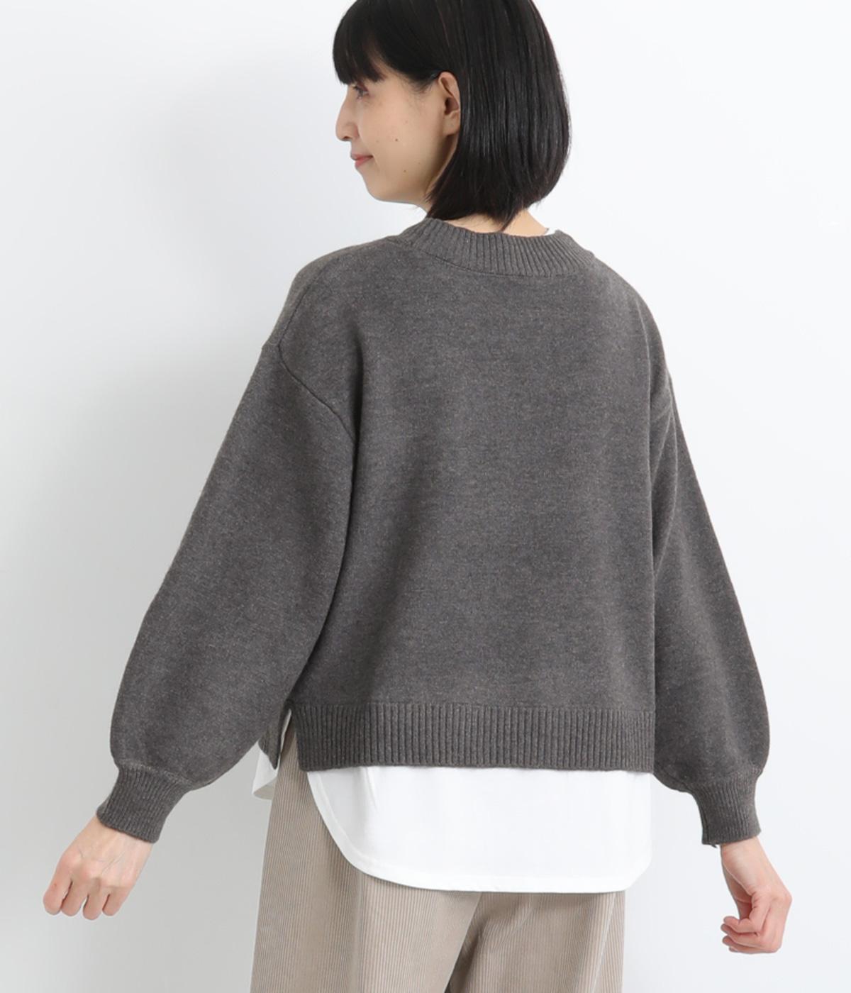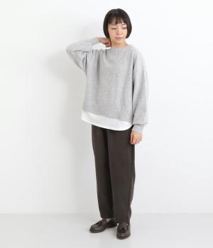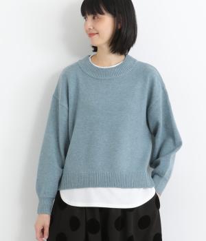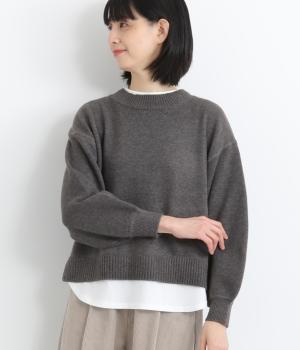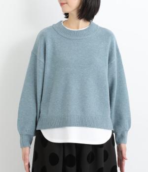 襟ぐりや裾からカットソーをのぞかせて、レイヤードしているかのように見せたフェイクデザイン。サッと被るだけで技をきかせたお洒落スタイルが叶います。ふわりとさせた袖もいいアクセントに。