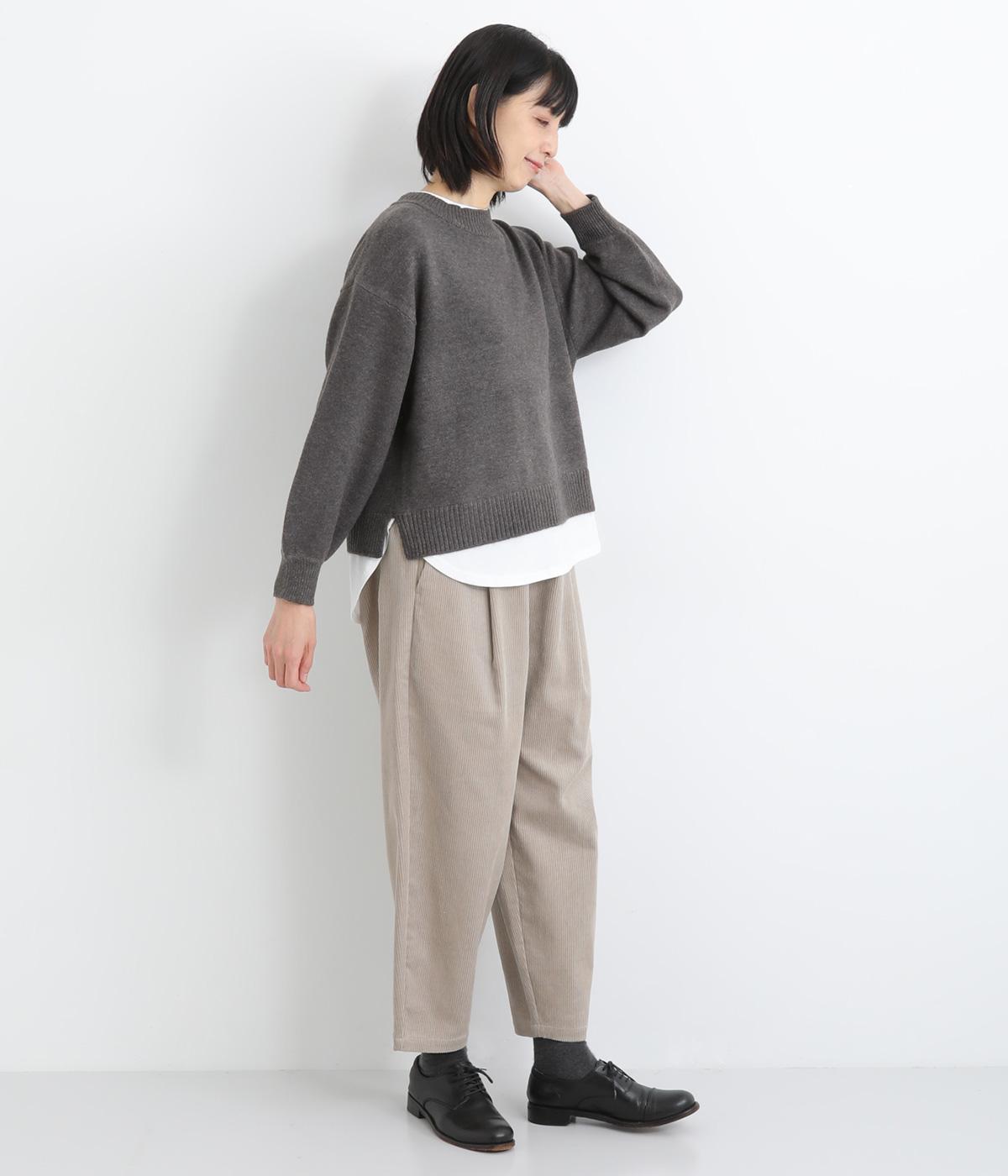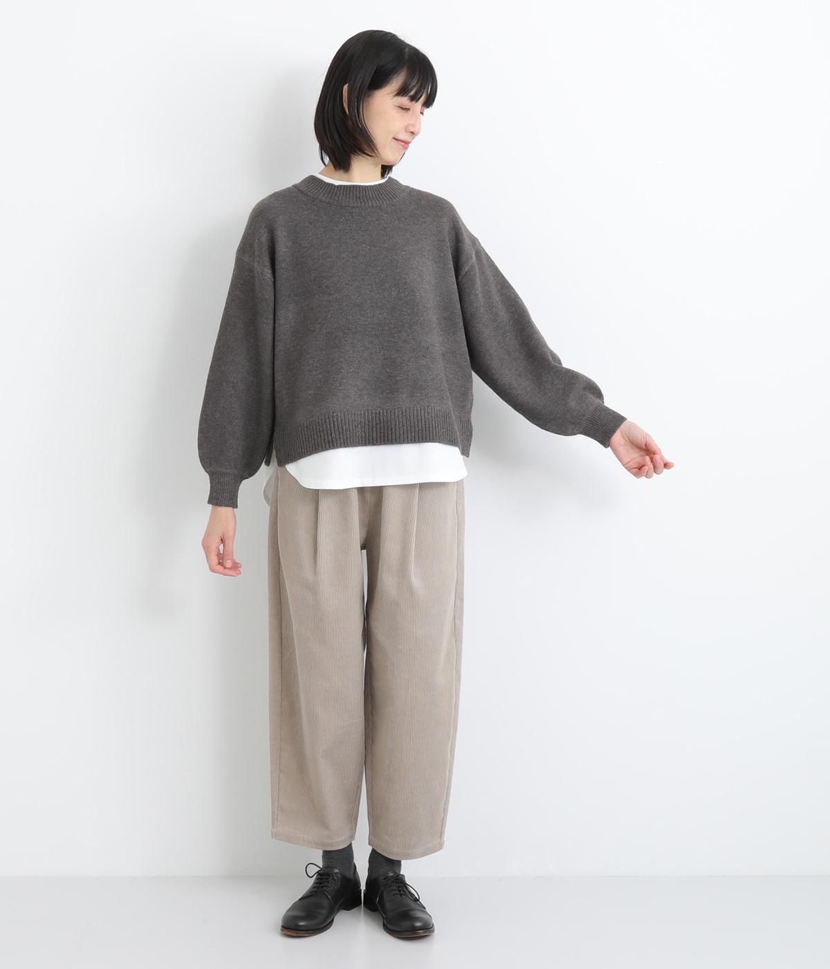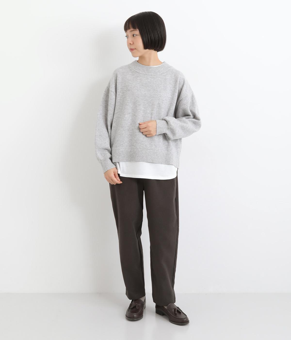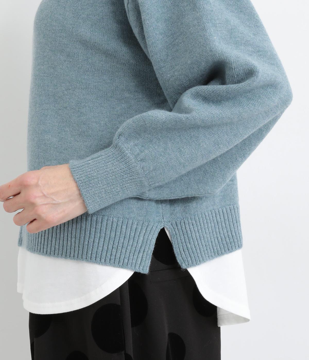 襟ぐりや裾からカットソーをのぞかせて、レイヤードしているかのように見せたフェイクデザイン。サッと被るだけで技をきかせたお洒落スタイルが叶います。ふわりとさせた袖もいいアクセントに。