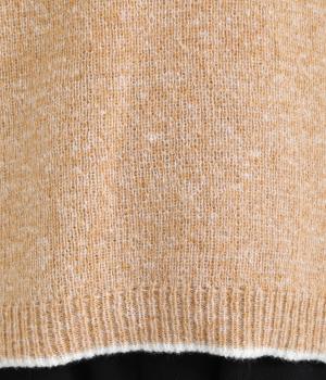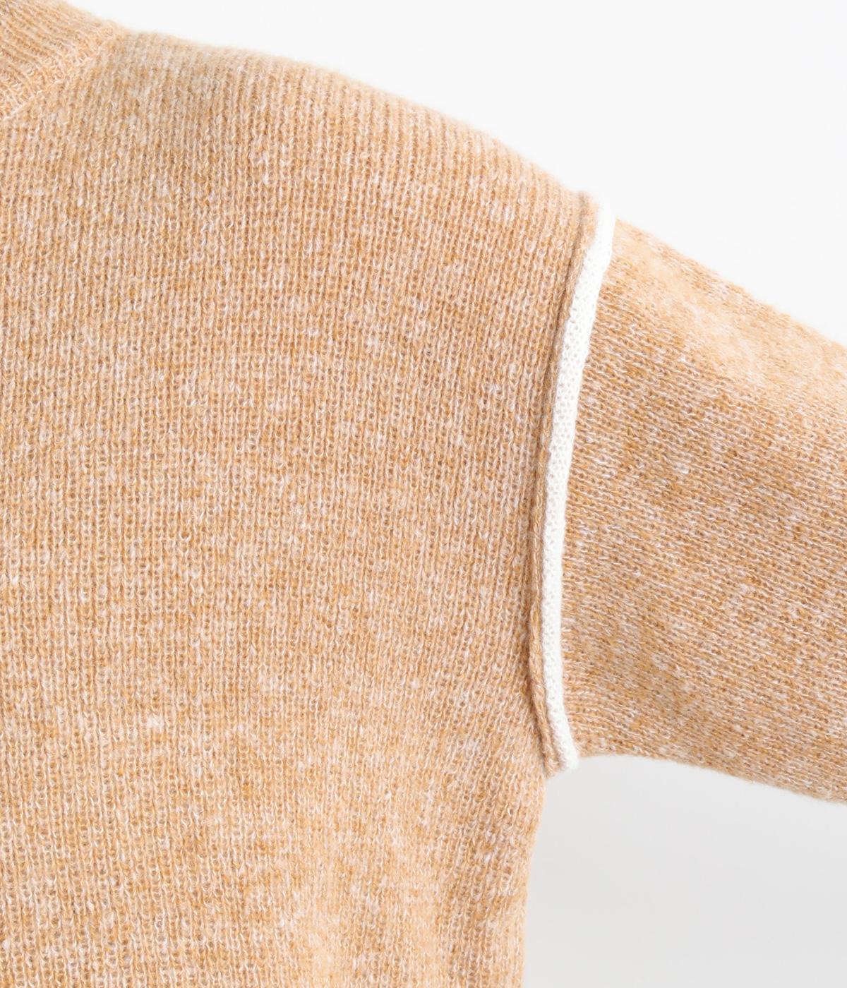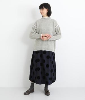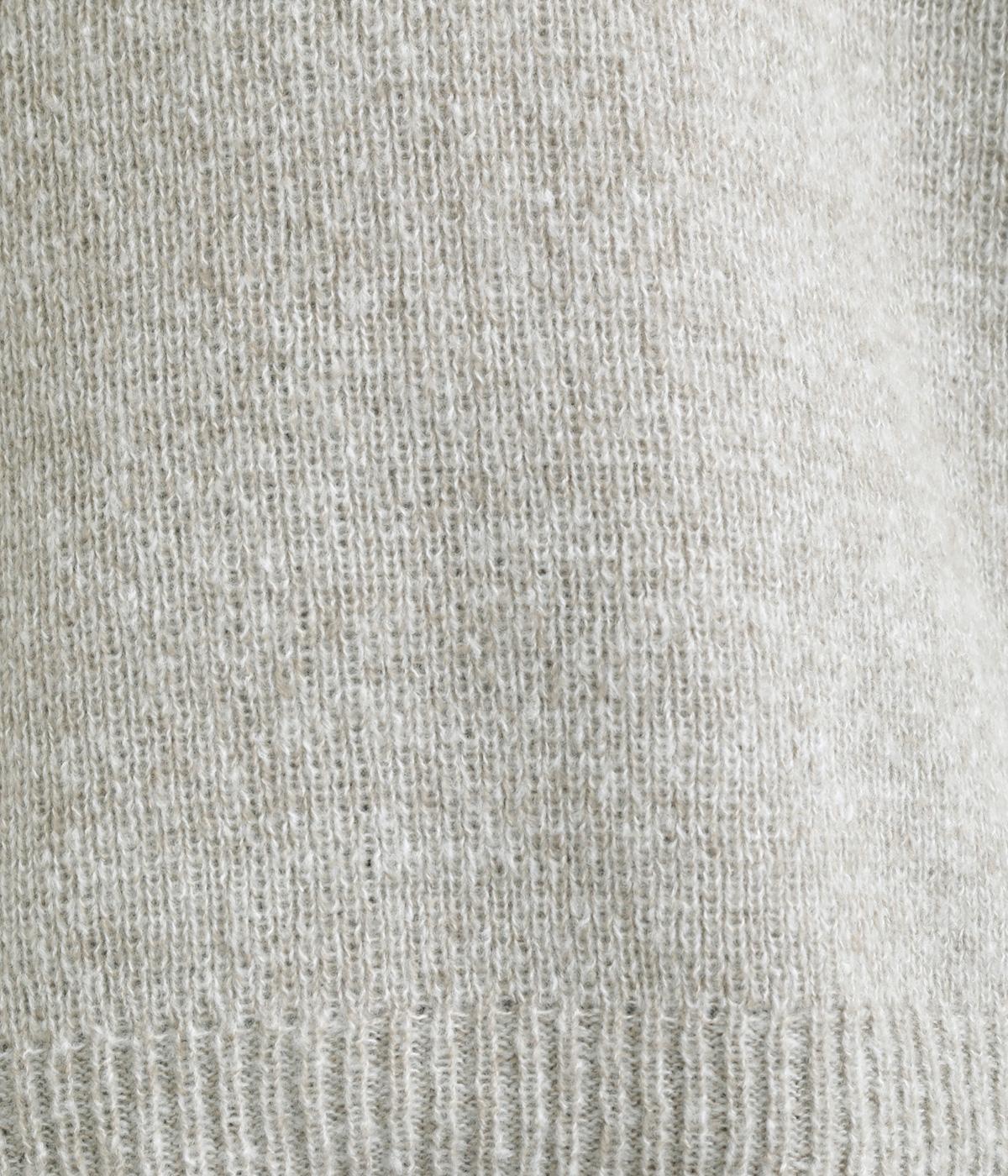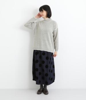杢調のナチュラル感のある表情が特徴的なニットを使用しています。やわらかで伸びも良く、ポリエステル製であたたかみと軽やかさを両立させました。