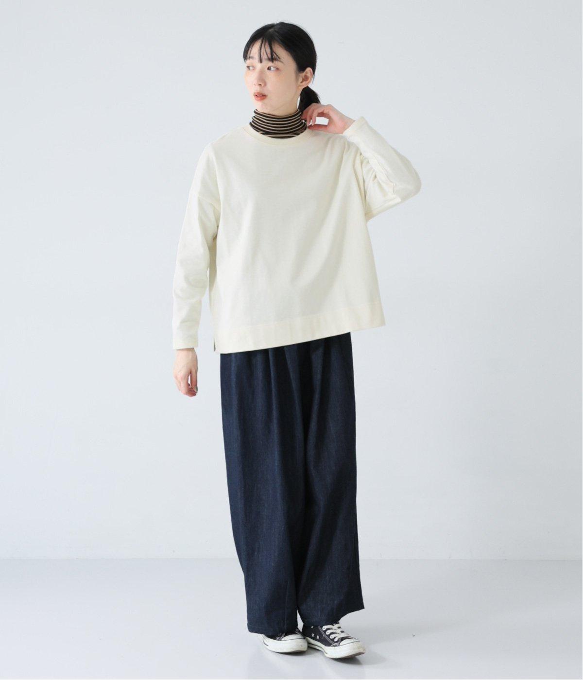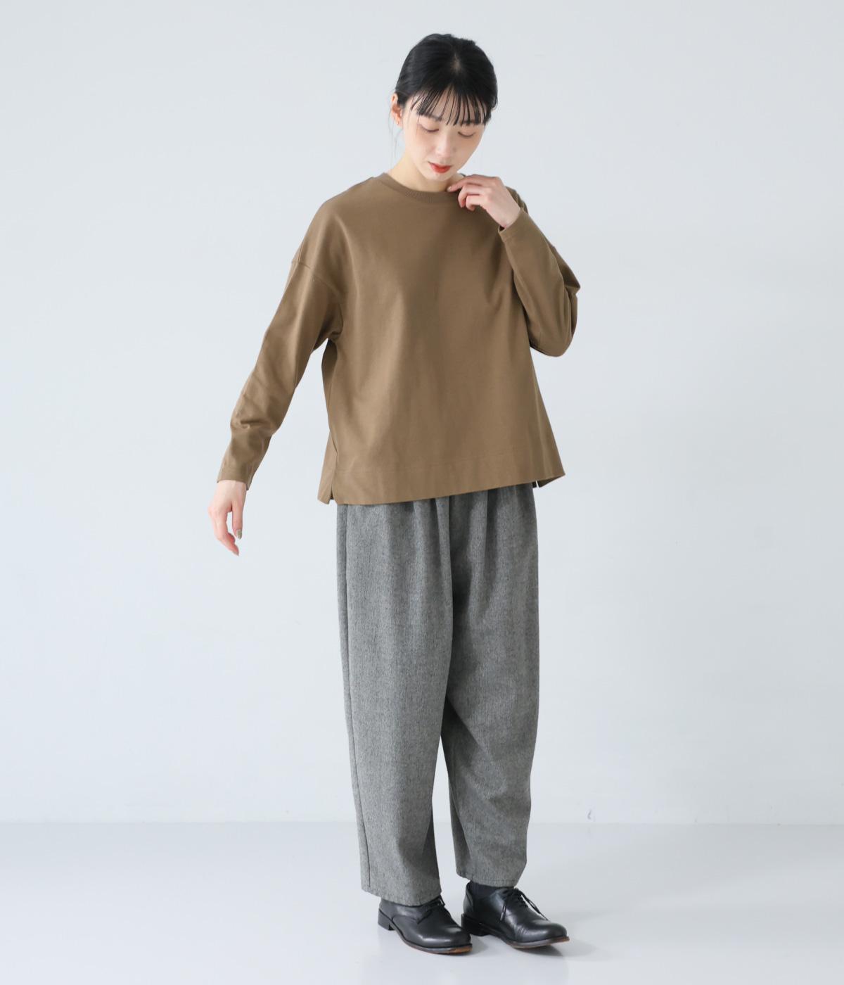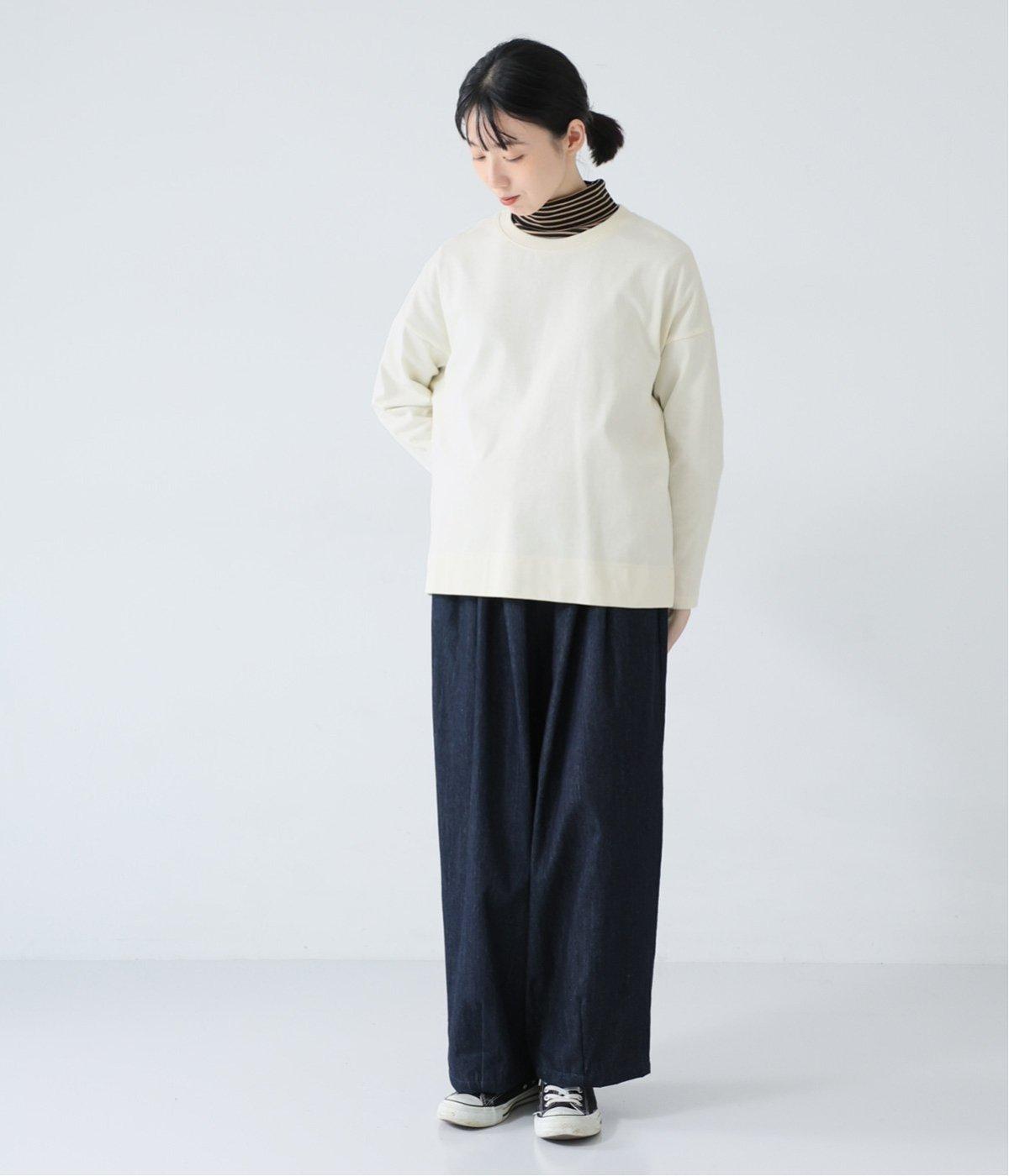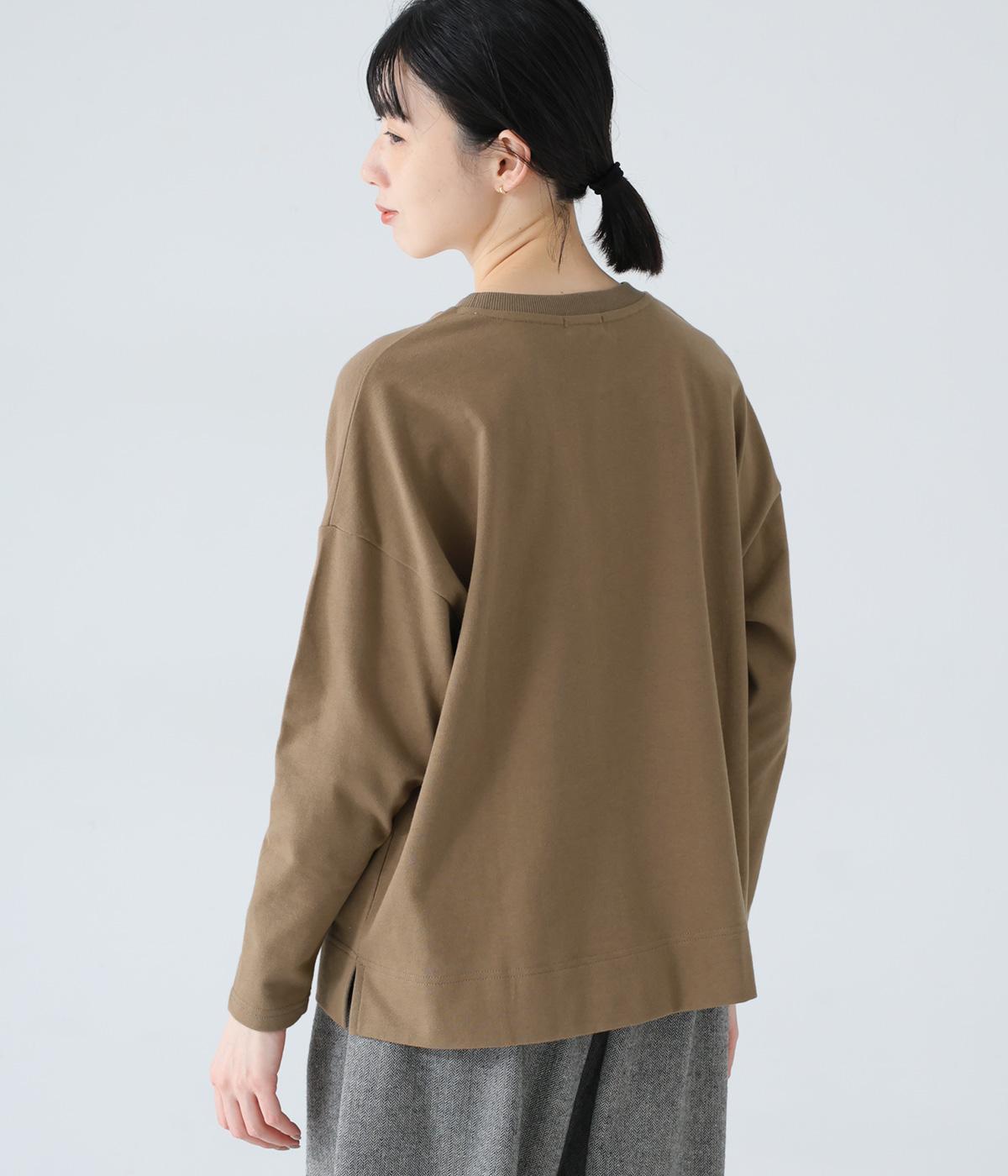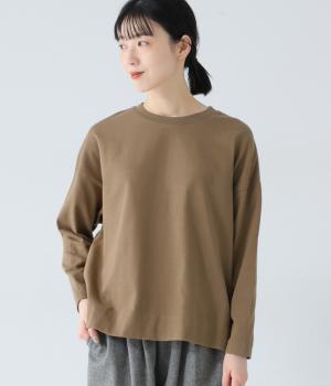 Tシャツとトレーナーの間をとったような適度な肉感と、さらりとしたドライタッチな風合いが特徴のコットン生地。メイントップスとしてサマ見えし、ロングシーズン着まわせます。
