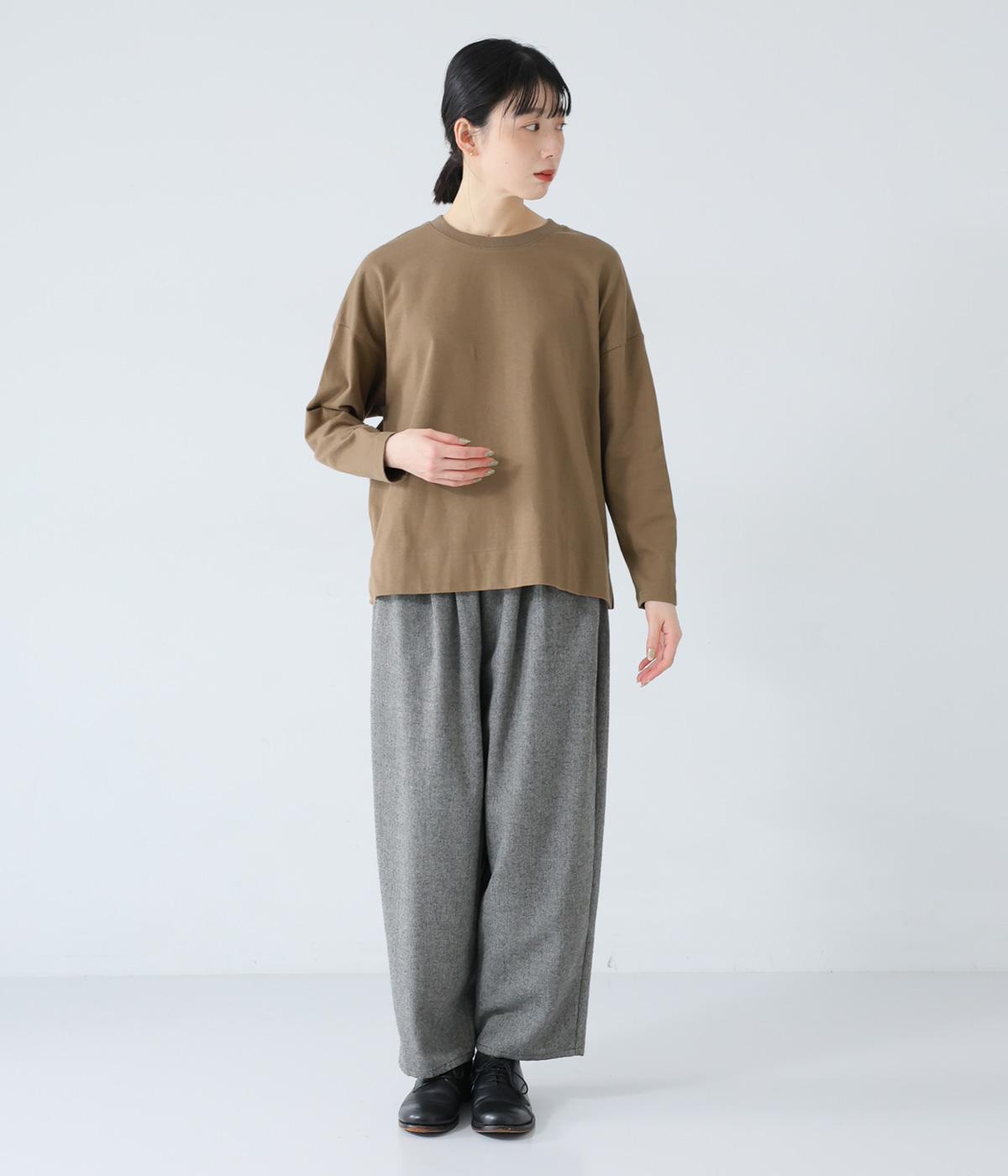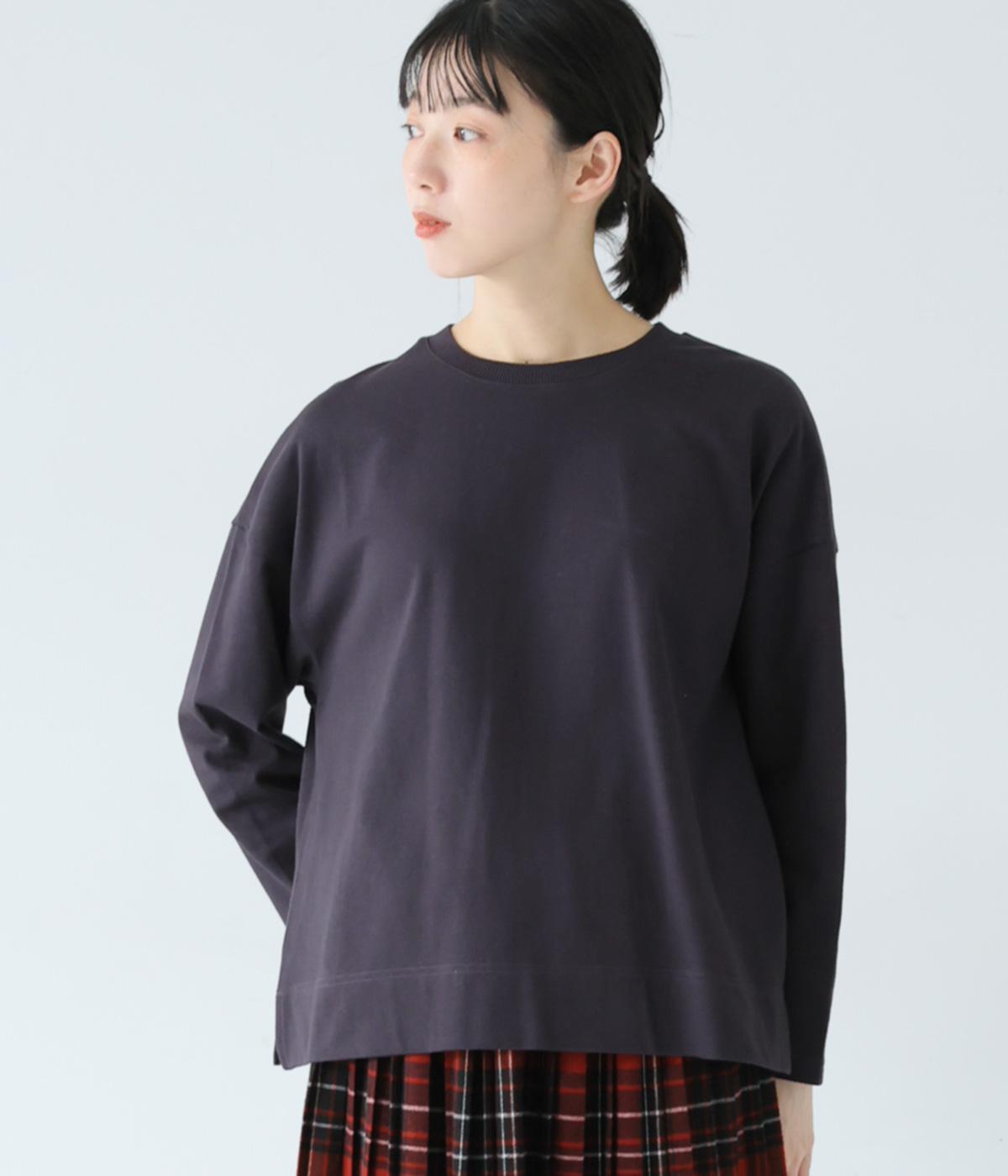 シンプルなデザインと絶妙な厚みの生地感で使い勝手のよさにこだわったカットソー。ゆったりとした身幅とドロップショルダーでラフに着用でき、インナーを合わせたレイヤードもたのしめます。裾にはサイドスリットを入れて、さりげなく抜け感を添えました。