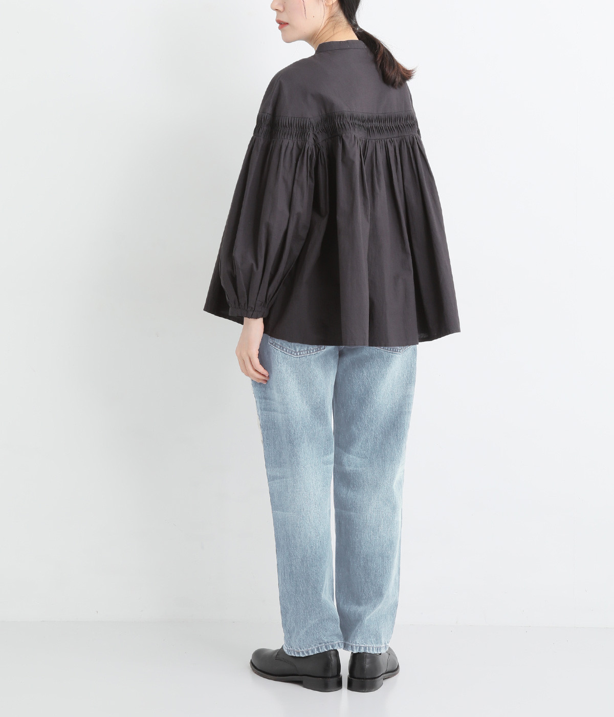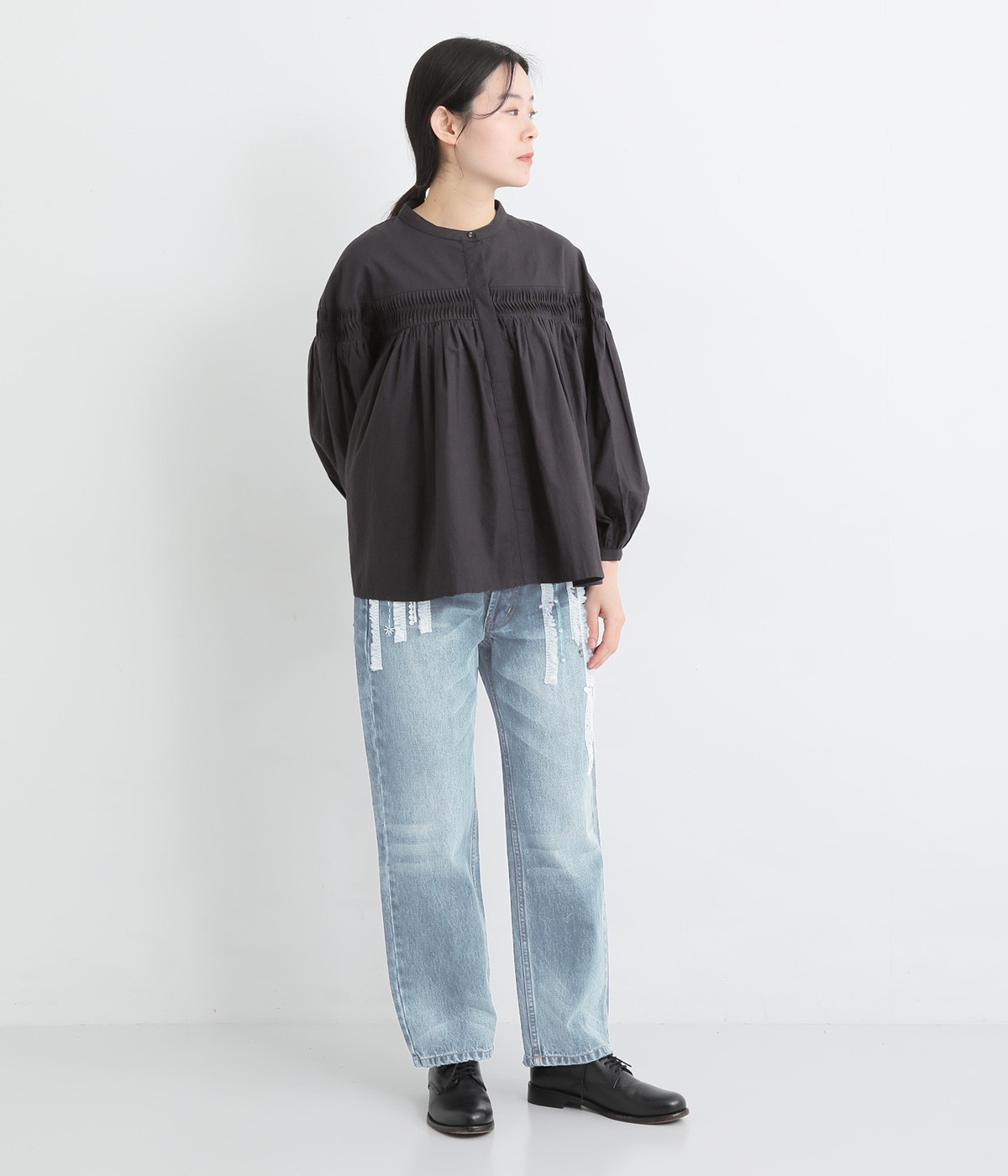 カジュアルスタイルのニュアンスを高める色落ちのいいヴィンテージ調デニム生地をベースにしています。シーズンレスに着用できるベーシックな厚みなので、ワードローブにあると便利。
