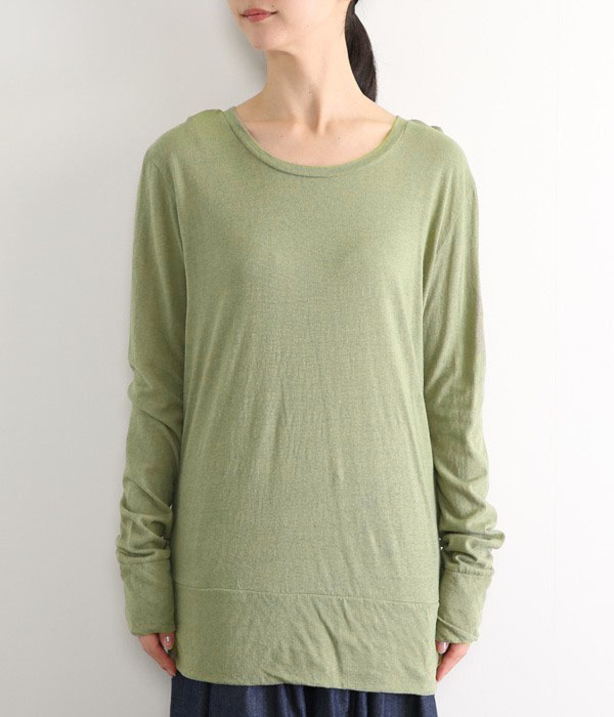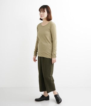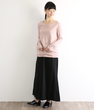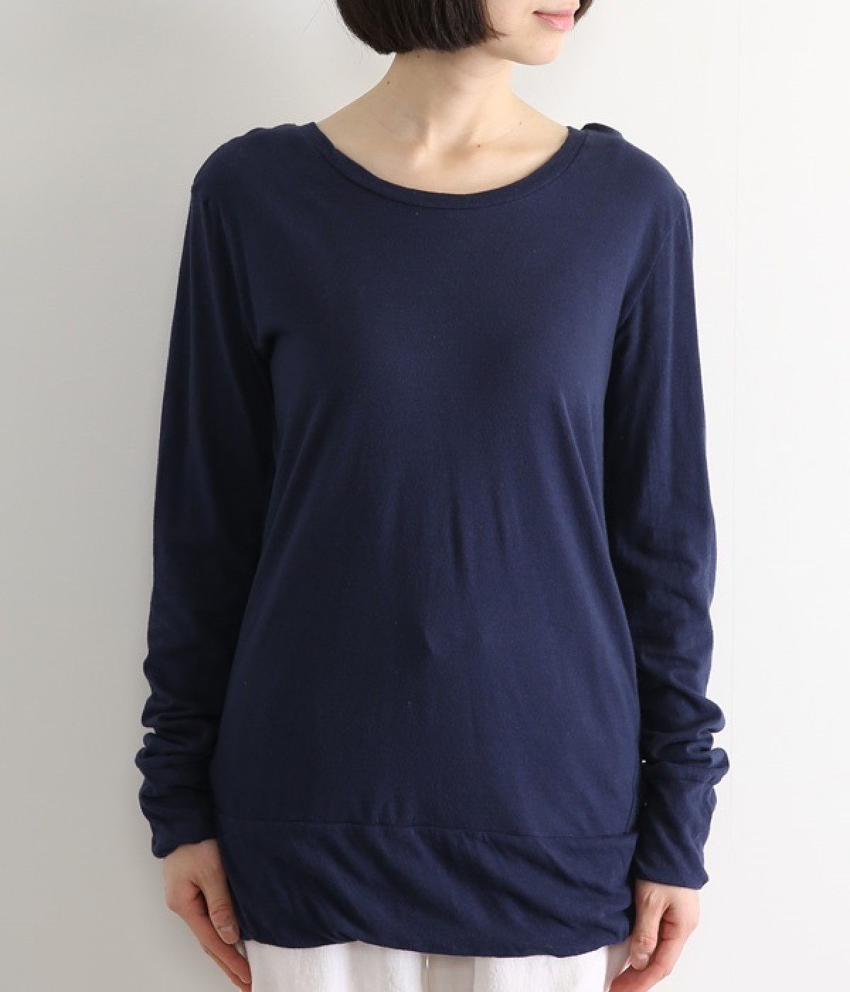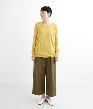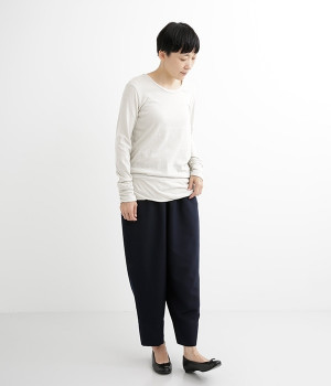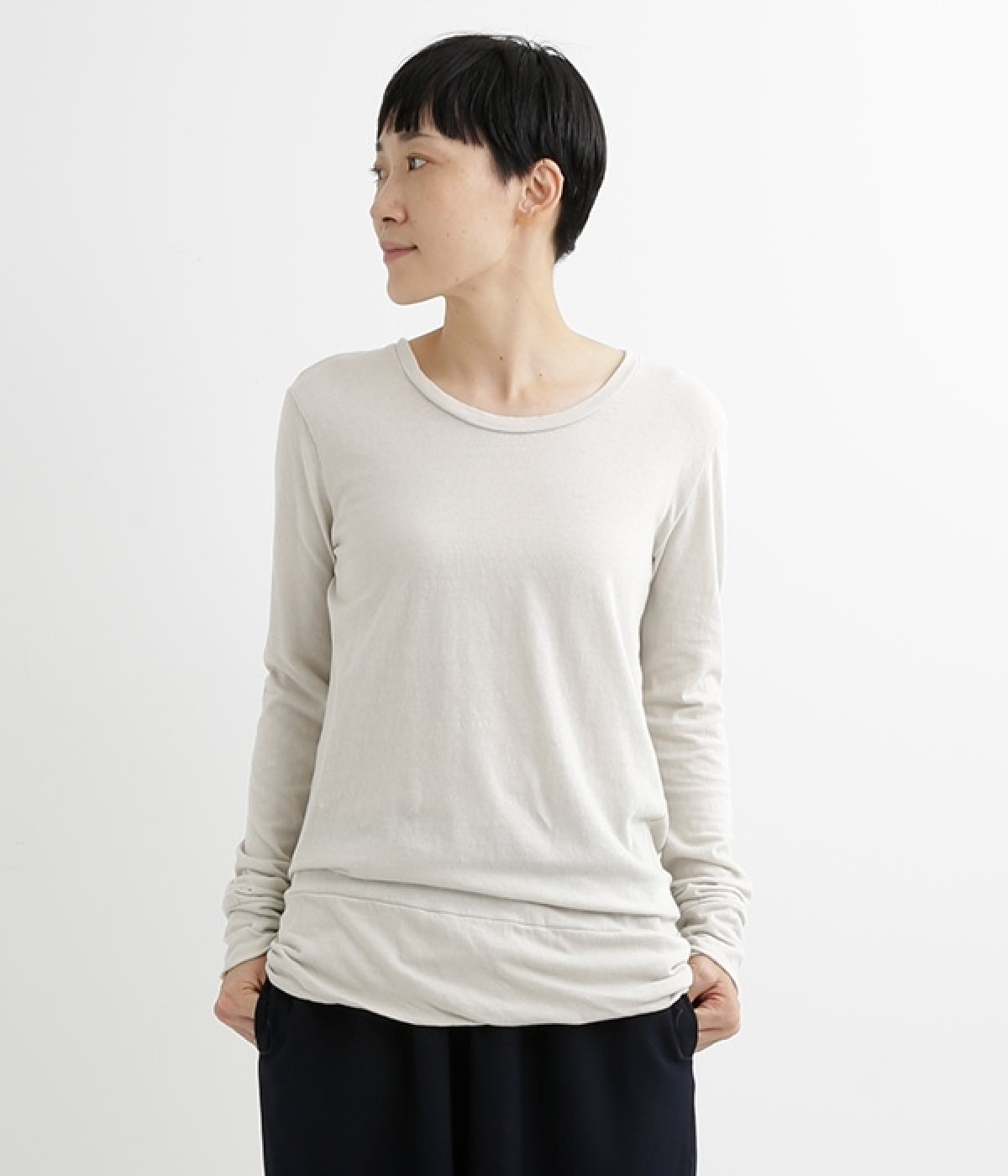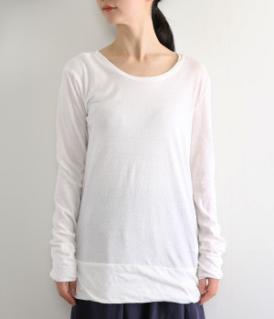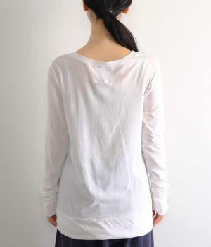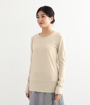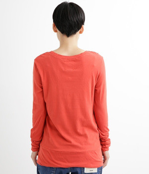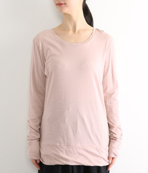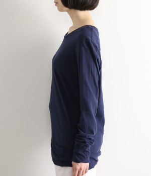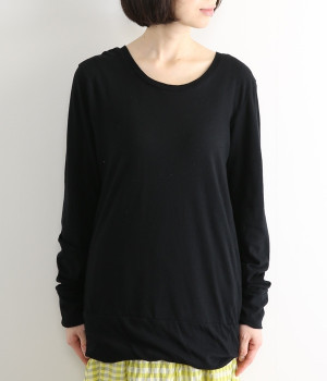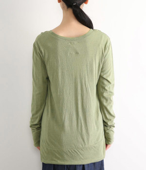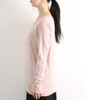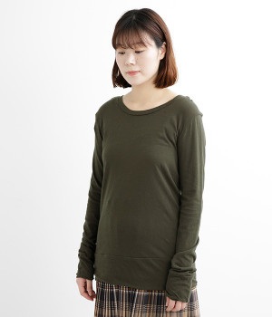 思わず触れたくなるような、柔らかな風合いと着心地が魅力の長袖Tシャツです。ベーシックなネックラインとシルエットなので、ロングシーズン着まわすことができます。袖と裾部分は二重仕立てにしてさりげなくボリュームをプラス。お腹まわりをしっかり覆ってくれる、長めの着丈設定です。