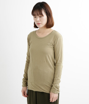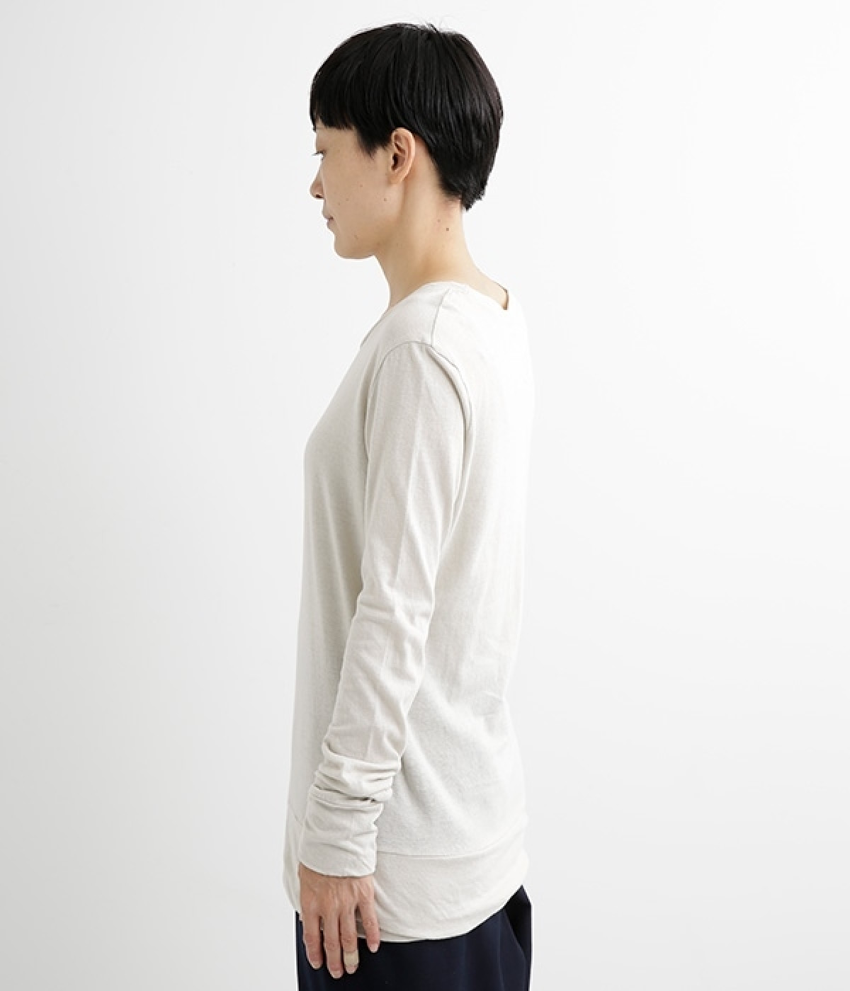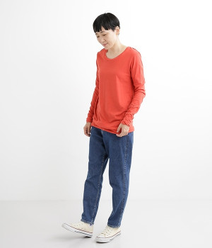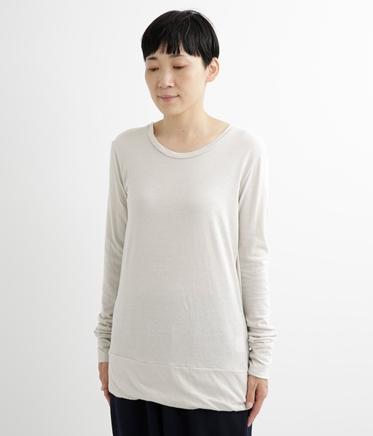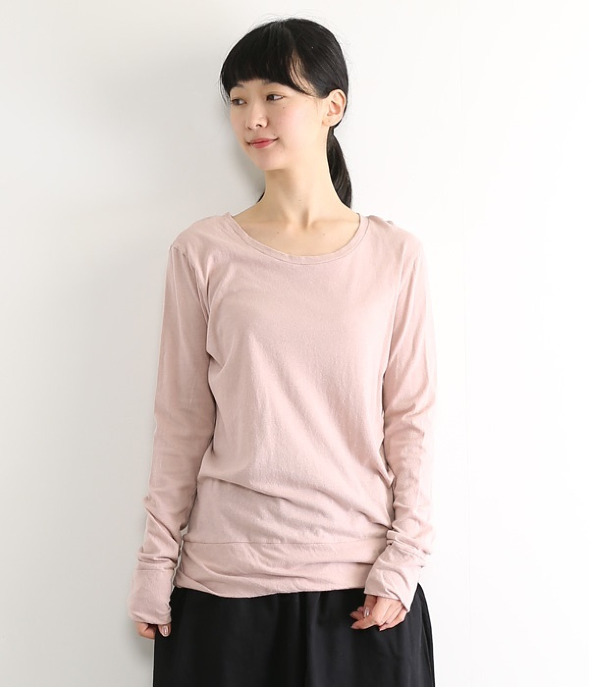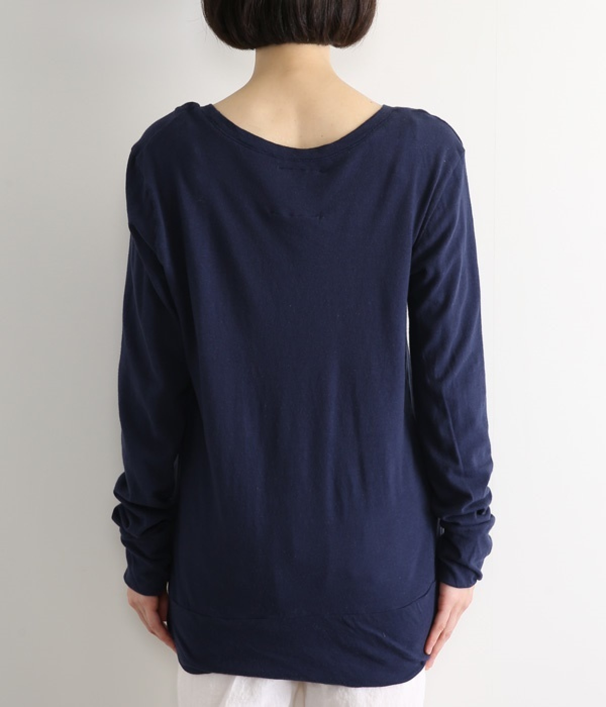 思わず触れたくなるような、柔らかな風合いと着心地が魅力の長袖Tシャツです。ベーシックなネックラインとシルエットなので、ロングシーズン着まわすことができます。袖と裾部分は二重仕立てにしてさりげなくボリュームをプラス。お腹まわりをしっかり覆ってくれる、長めの着丈設定です。