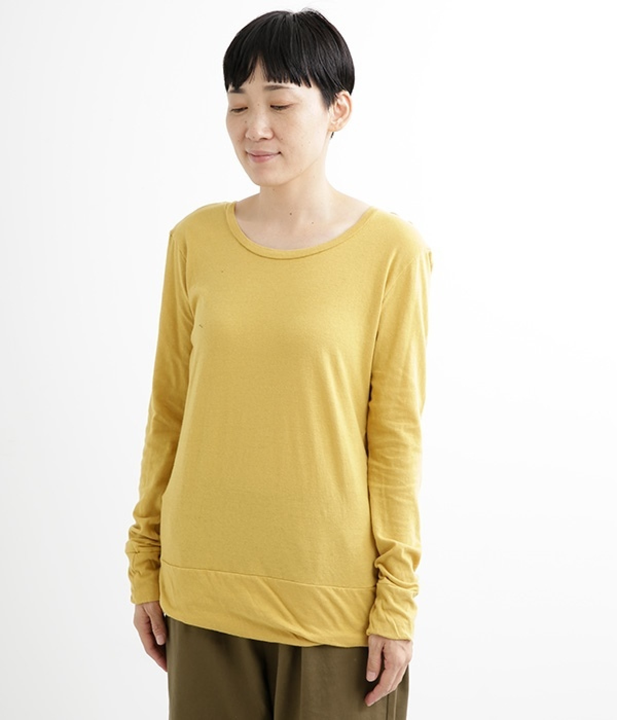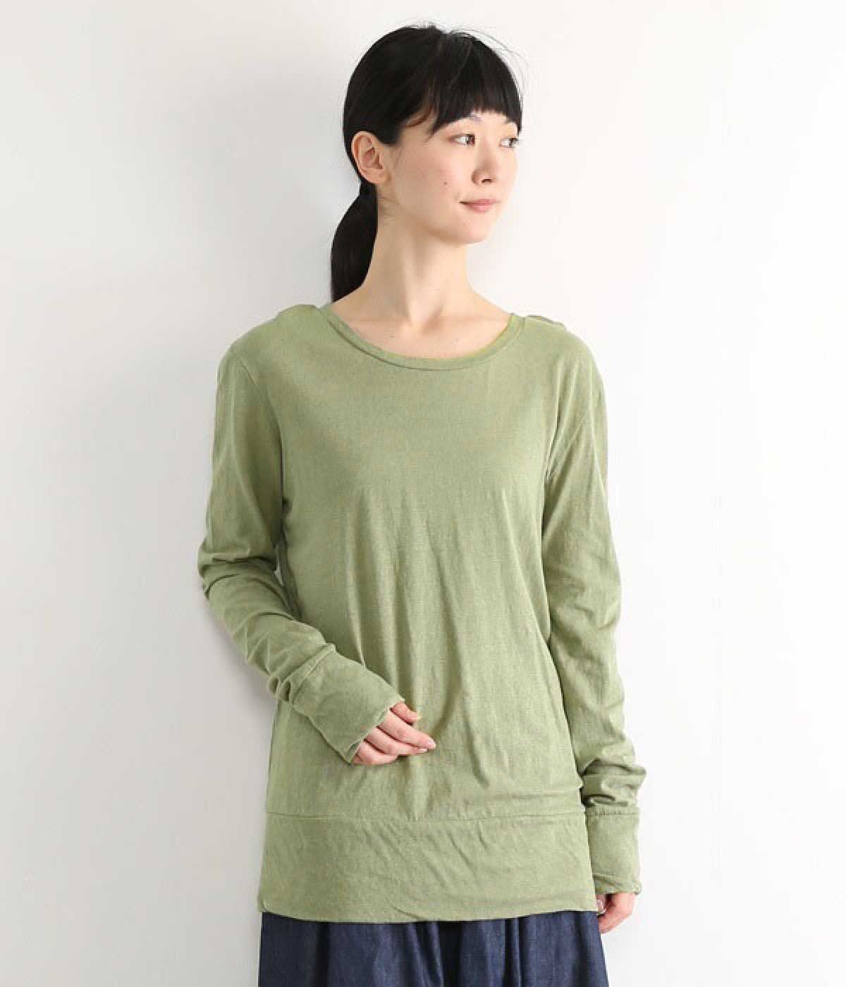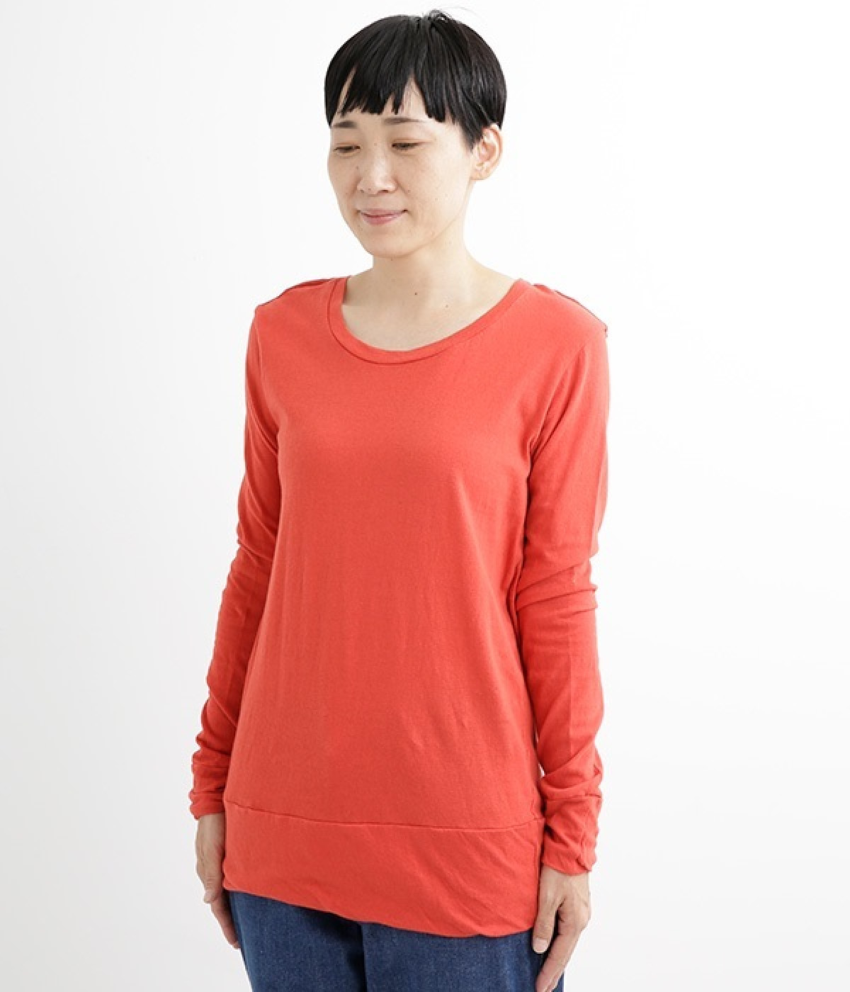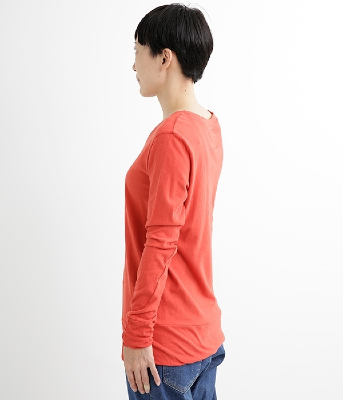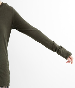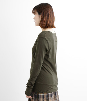 思わず触れたくなるような、柔らかな風合いと着心地が魅力の長袖Tシャツです。ベーシックなネックラインとシルエットなので、ロングシーズン着まわすことができます。袖と裾部分は二重仕立てにしてさりげなくボリュームをプラス。お腹まわりをしっかり覆ってくれる、長めの着丈設定です。