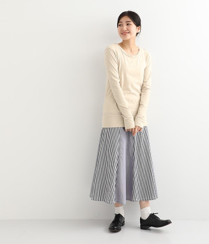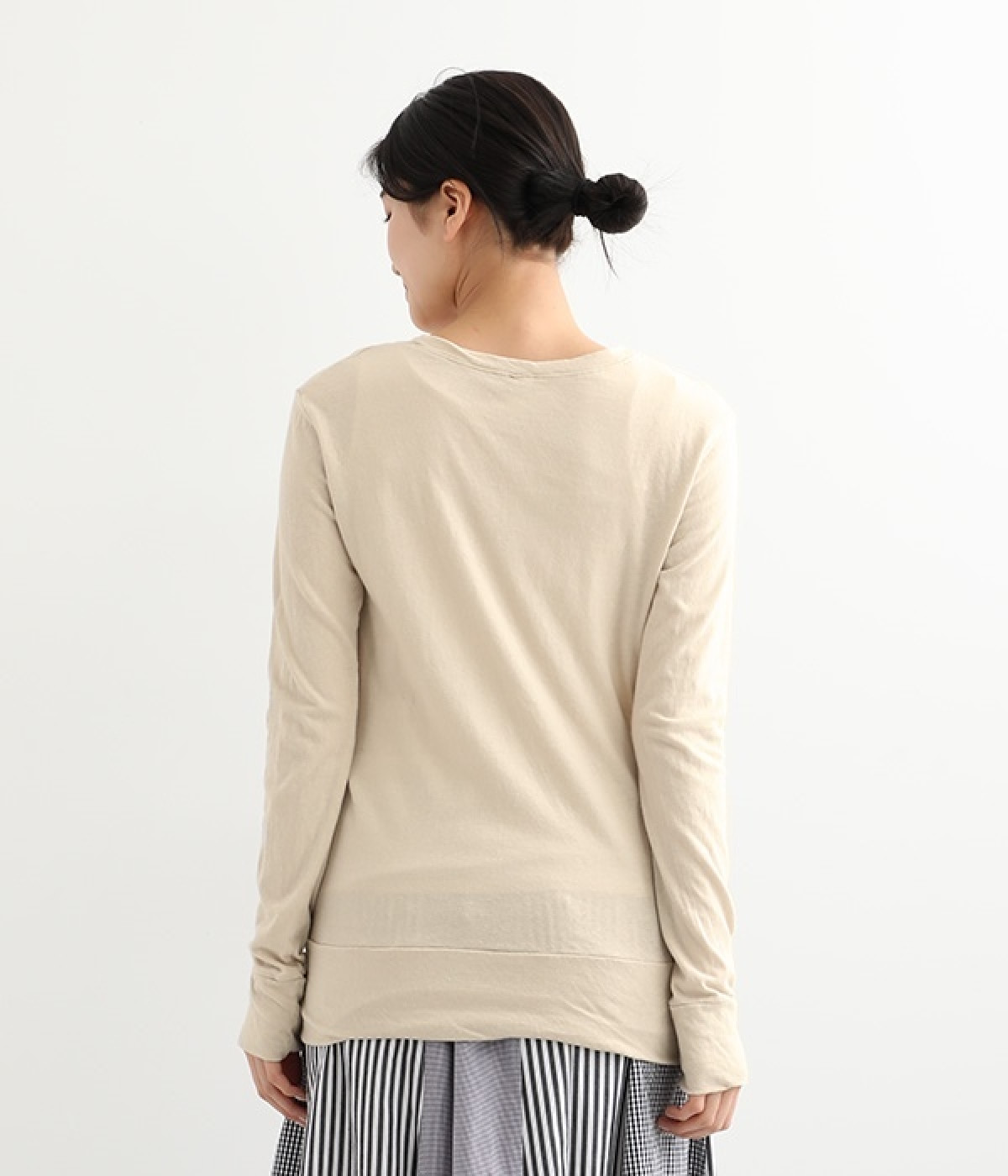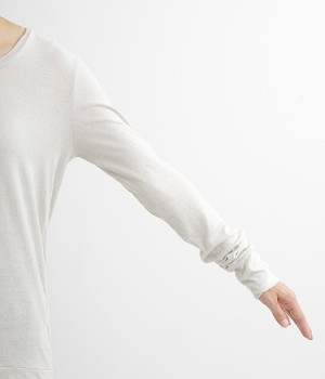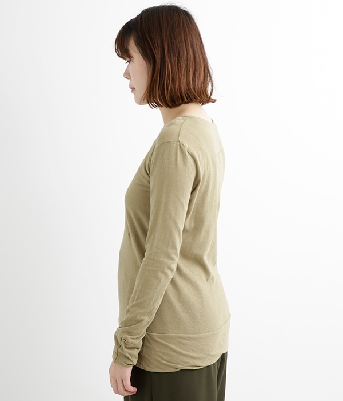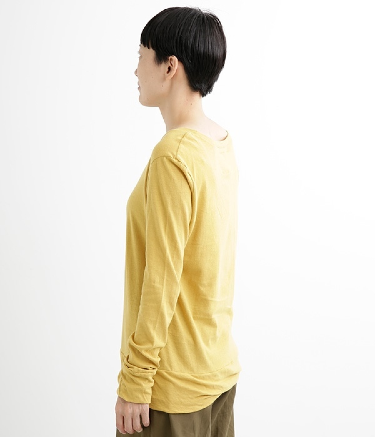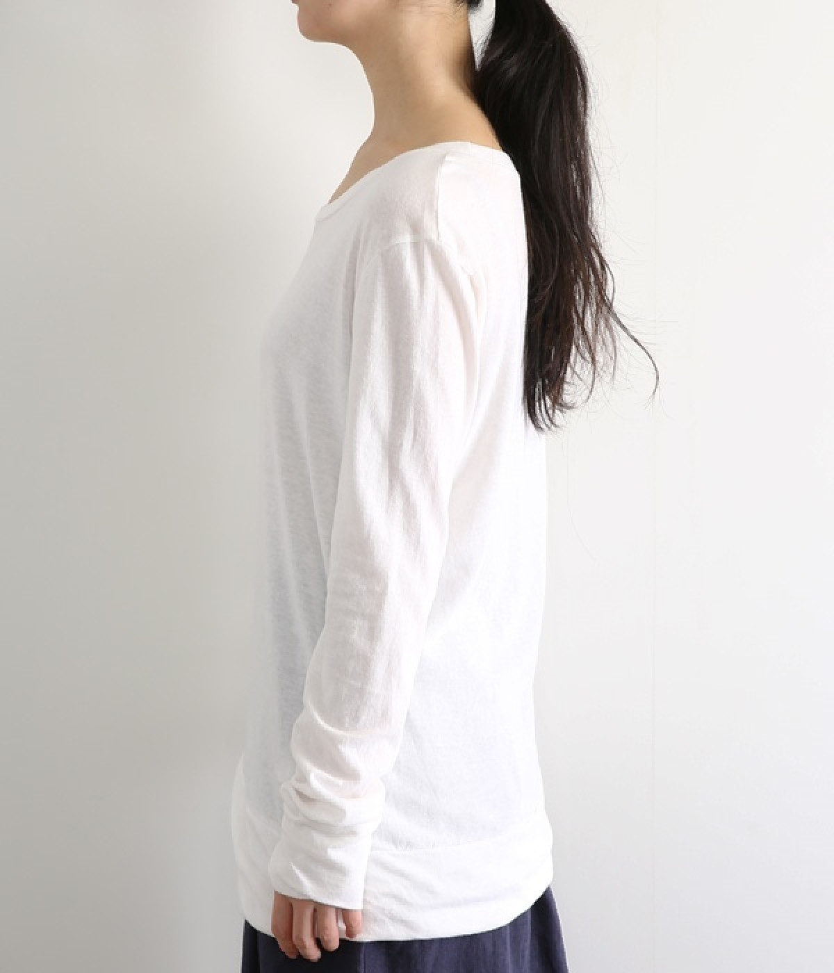 思わず触れたくなるような、柔らかな風合いと着心地が魅力の長袖Tシャツです。ベーシックなネックラインとシルエットなので、ロングシーズン着まわすことができます。袖と裾部分は二重仕立てにしてさりげなくボリュームをプラス。お腹まわりをしっかり覆ってくれる、長めの着丈設定です。