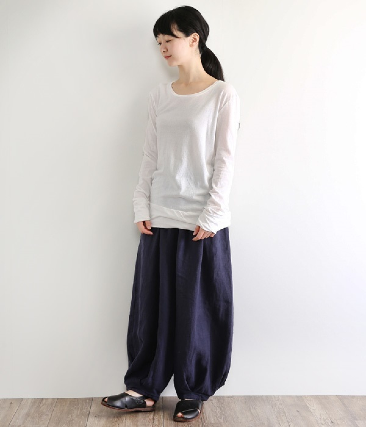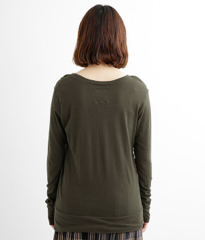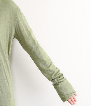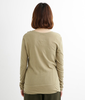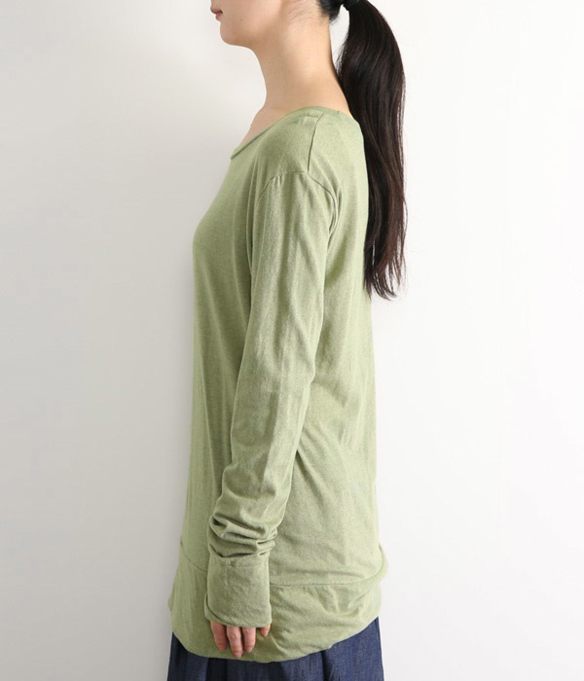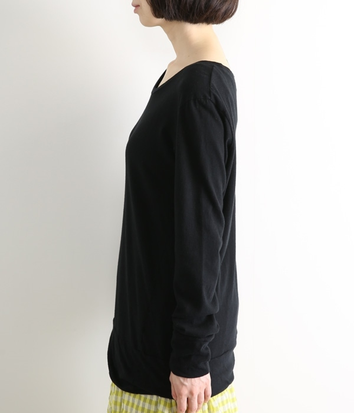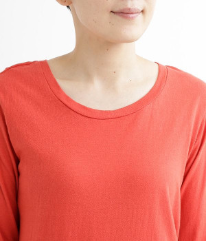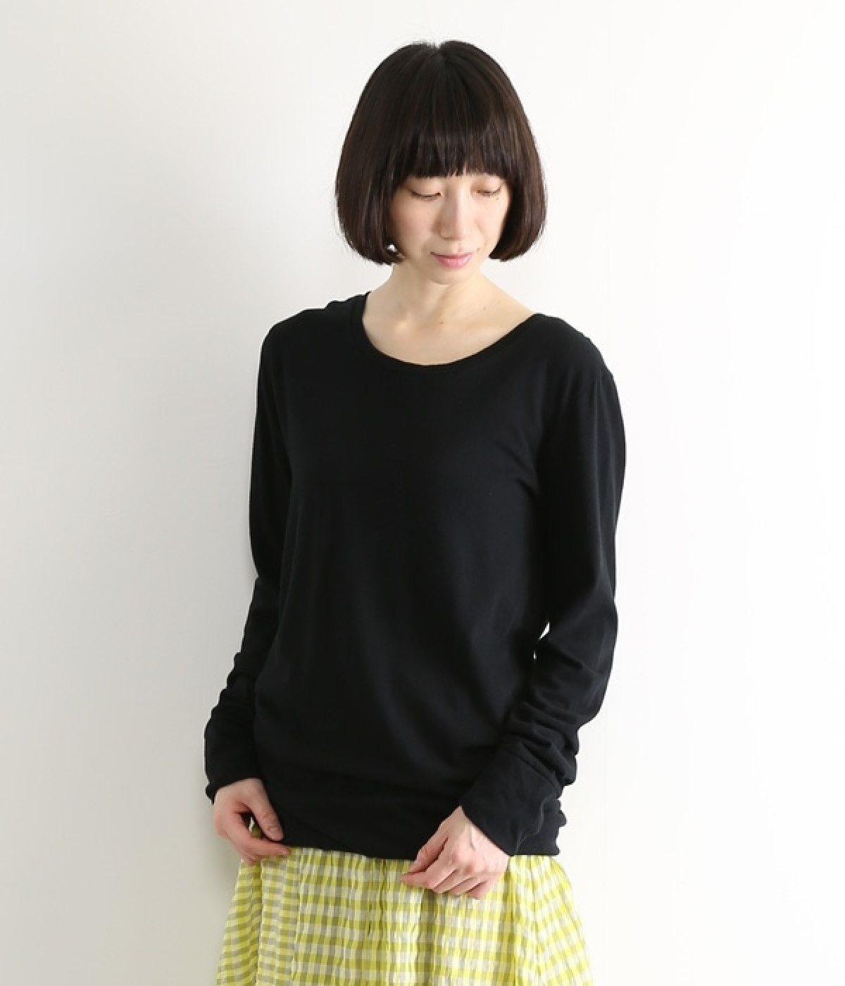思わず触れたくなるような、柔らかな風合いと着心地が魅力の長袖Tシャツです。ベーシックなネックラインとシルエットなので、ロングシーズン着まわすことができます。袖と裾部分は二重仕立てにしてさりげなくボリュームをプラス。お腹まわりをしっかり覆ってくれる、長めの着丈設定です。