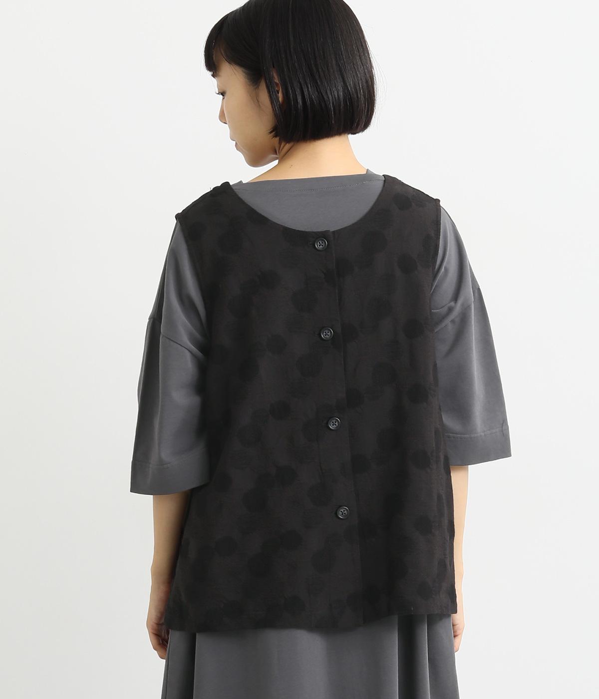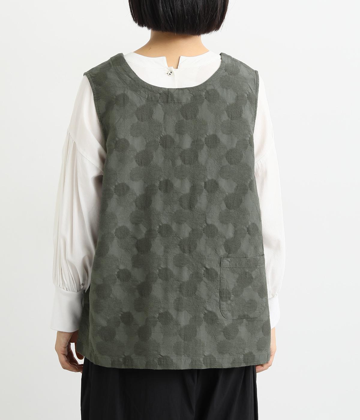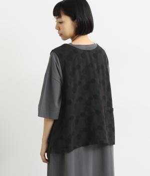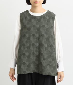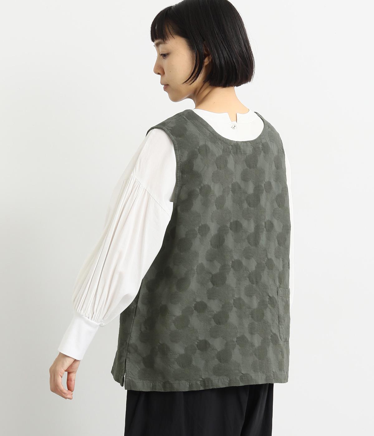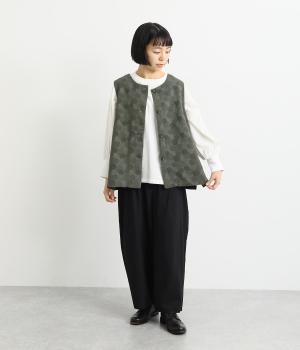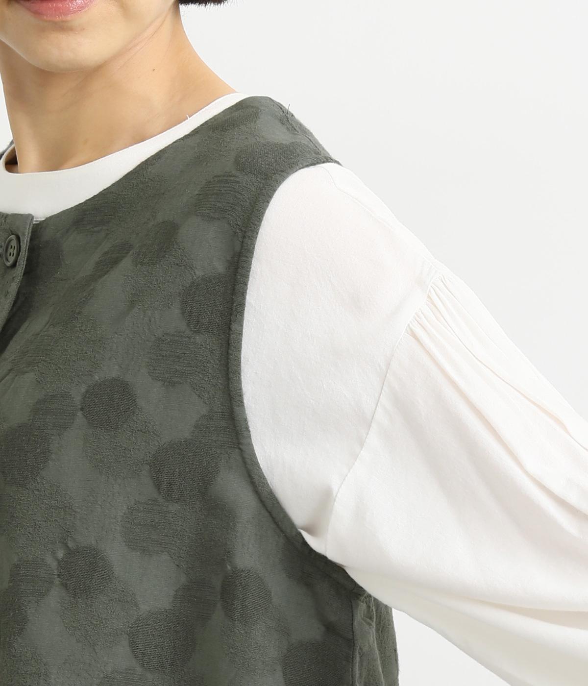 2way仕様のベストに仕立てました。ボタンを外して羽織っても違う表情を楽しめます。スリット入りで動きやすさも◎。ドットは控えめなので、どんなインナーやボトムにも幅広くコーディネートできます。