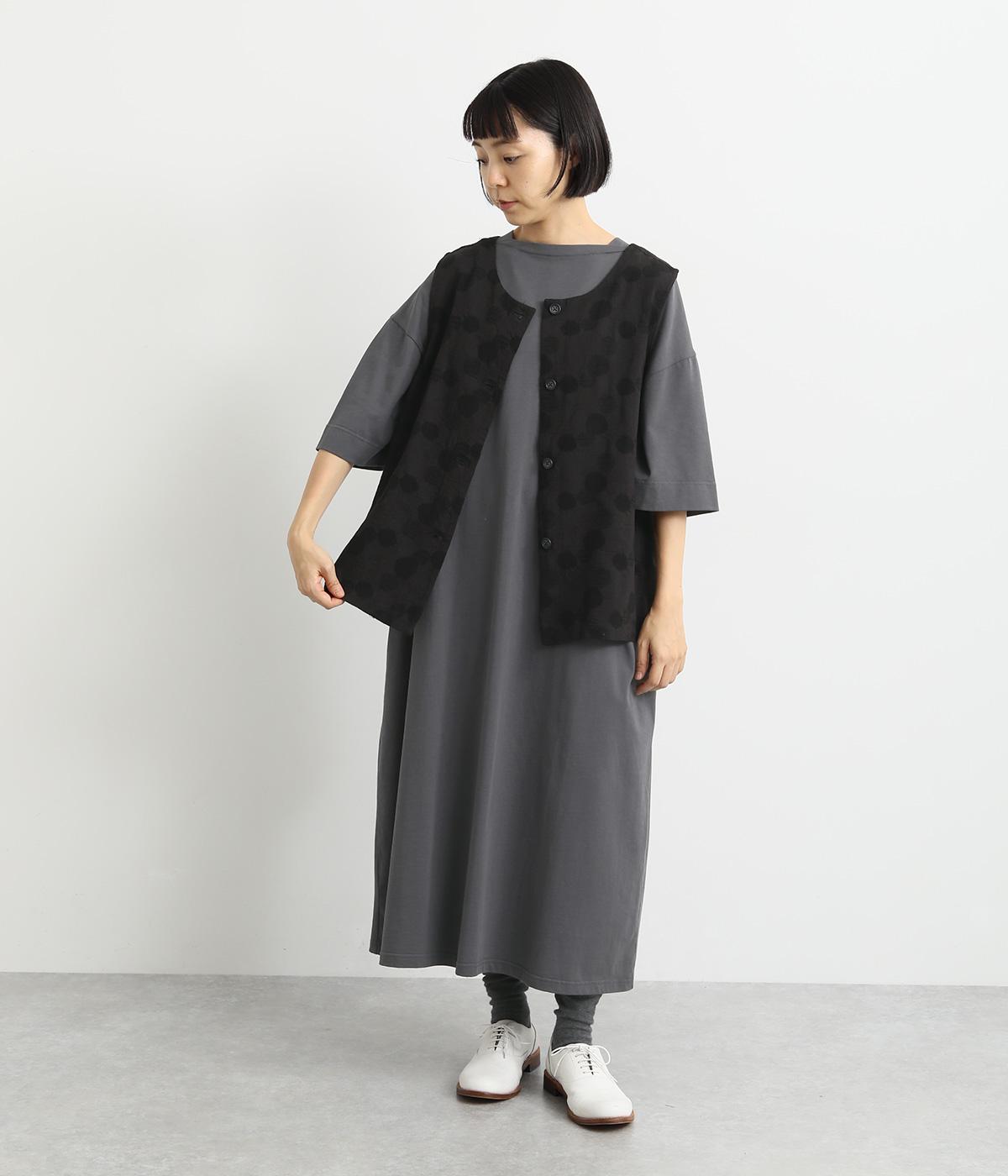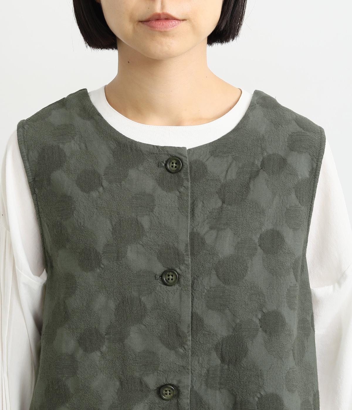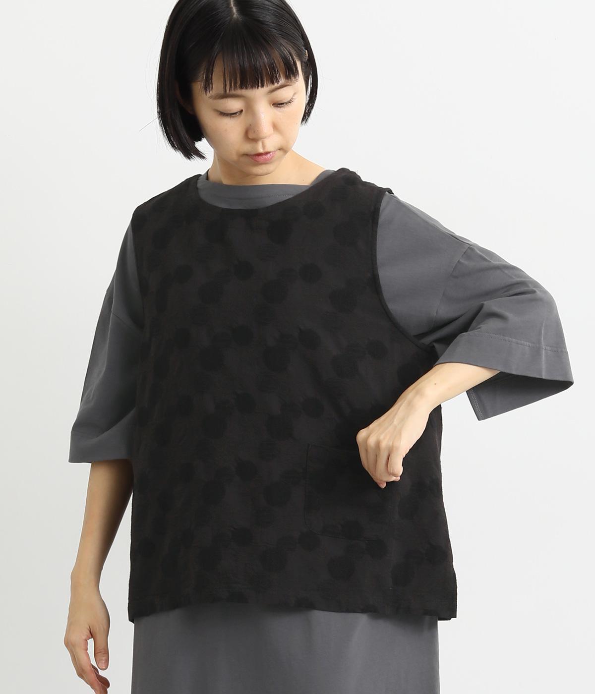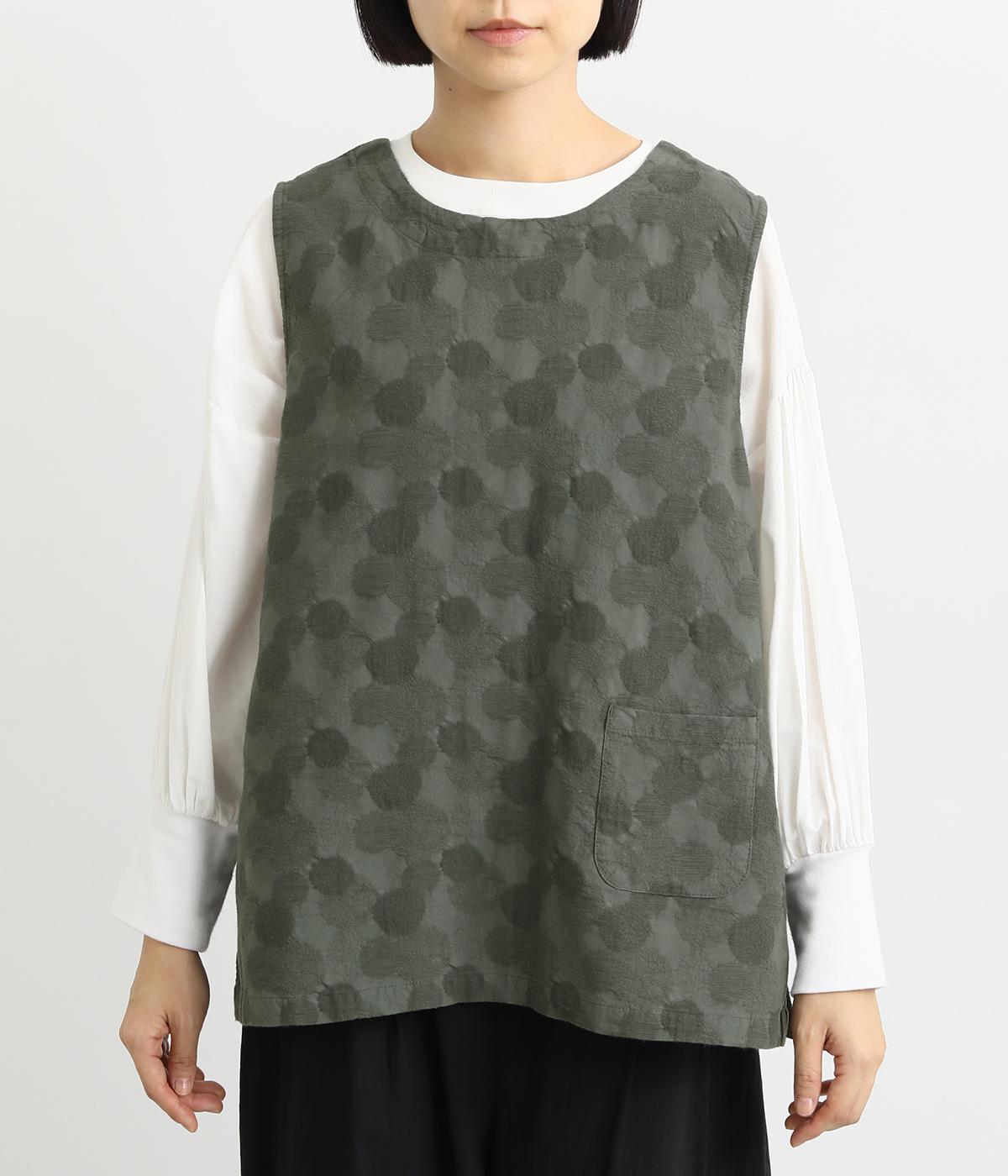2way仕様のベストに仕立てました。ボタンを外して羽織っても違う表情を楽しめます。スリット入りで動きやすさも◎。ドットは控えめなので、どんなインナーやボトムにも幅広くコーディネートできます。