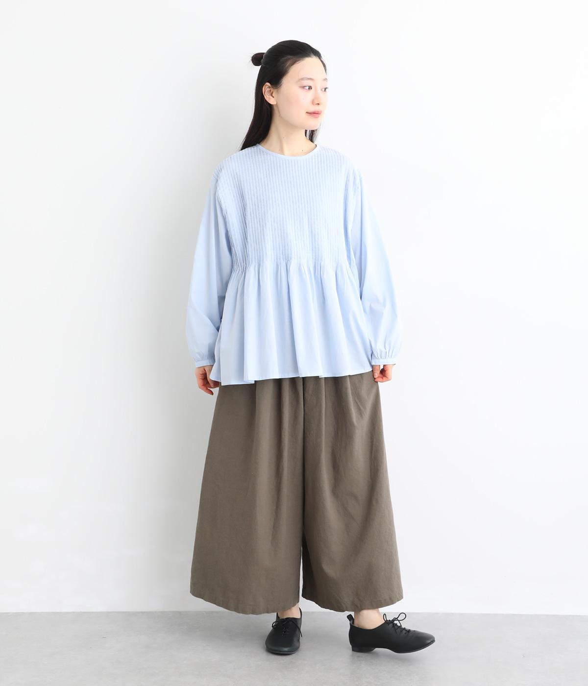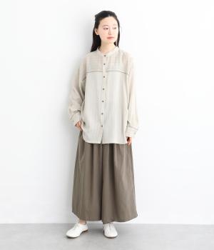 コットンリネンならではの、さらりとやわらかな肌ざわりが魅力の素材です。軽やかで通気性にも優れ、快適な着心地を叶えます。ナチュラルなシワがやさしい表情を生み、着用するほどになじんでいく風合いもたのしめます。