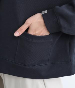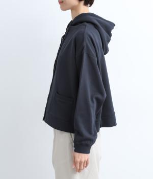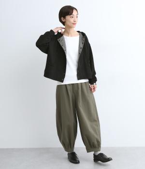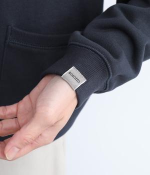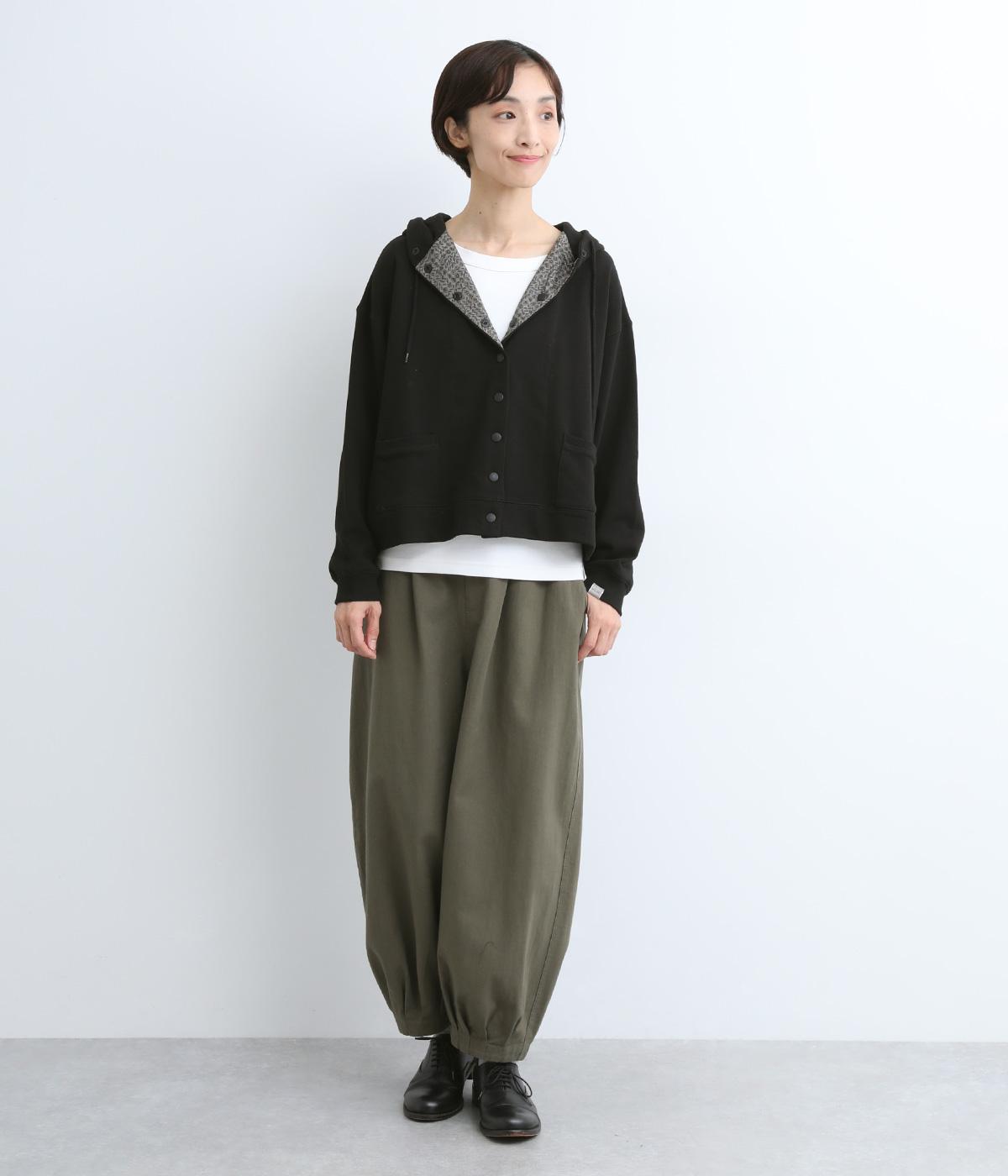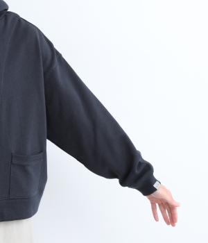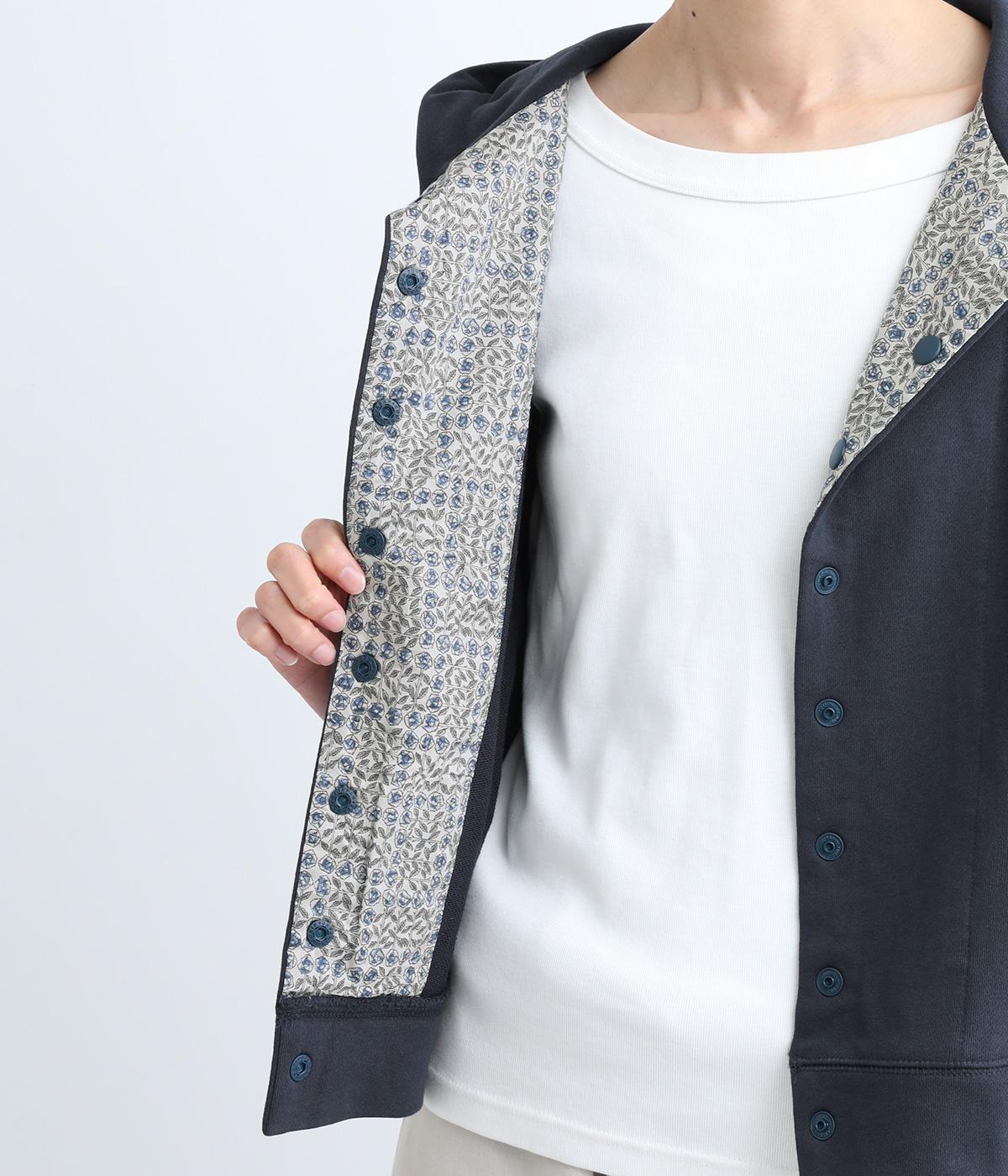 季節の変わり目にも着こなしやすい、さらりと肌触りが良くやわらかなコットンの裏毛生地を使用。見返し部分には薄手のリバティプリント生地をあてて変化をつけています。