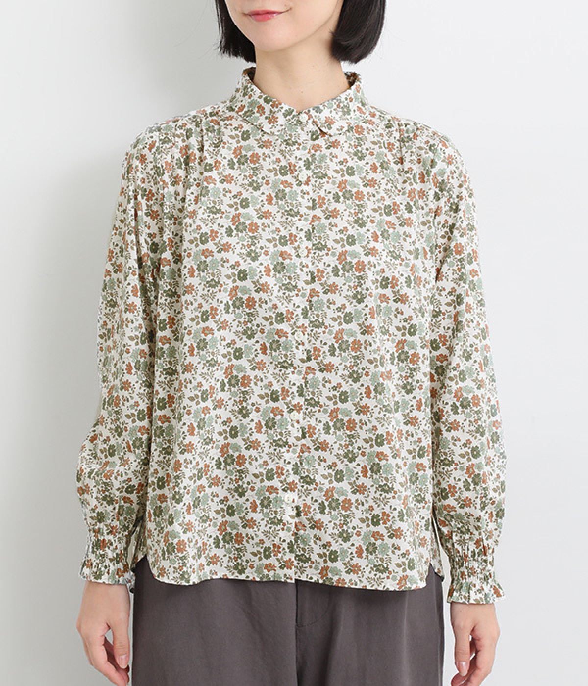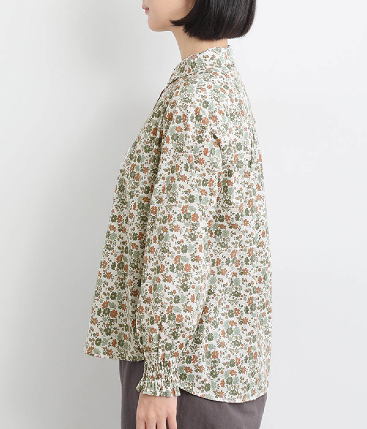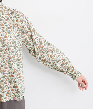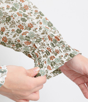 袖口のシャーリングがふっくらとした袖のラインを演出