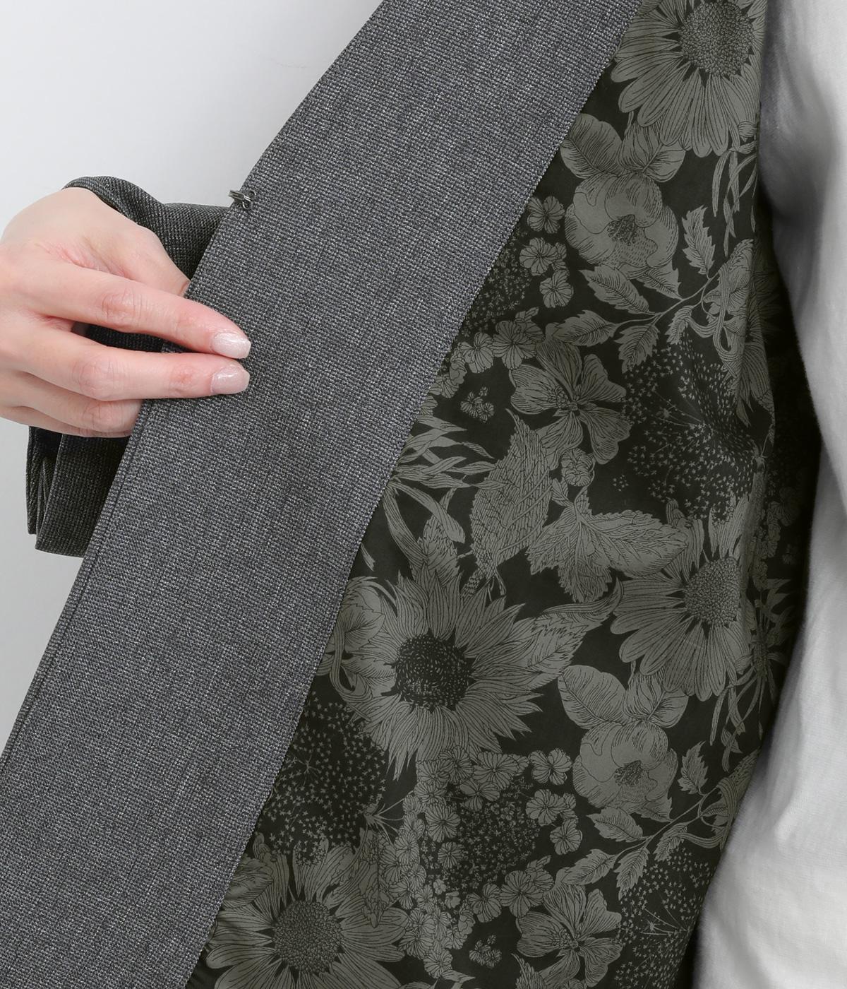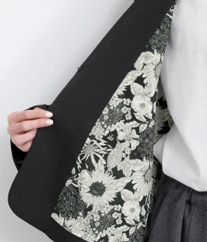快適で動きやすい混紡生地で仕立てています。きちんとした存在感がありながらも軽やかな着心地が魅力です。華やかなリバティ柄の裏地を合わせました。