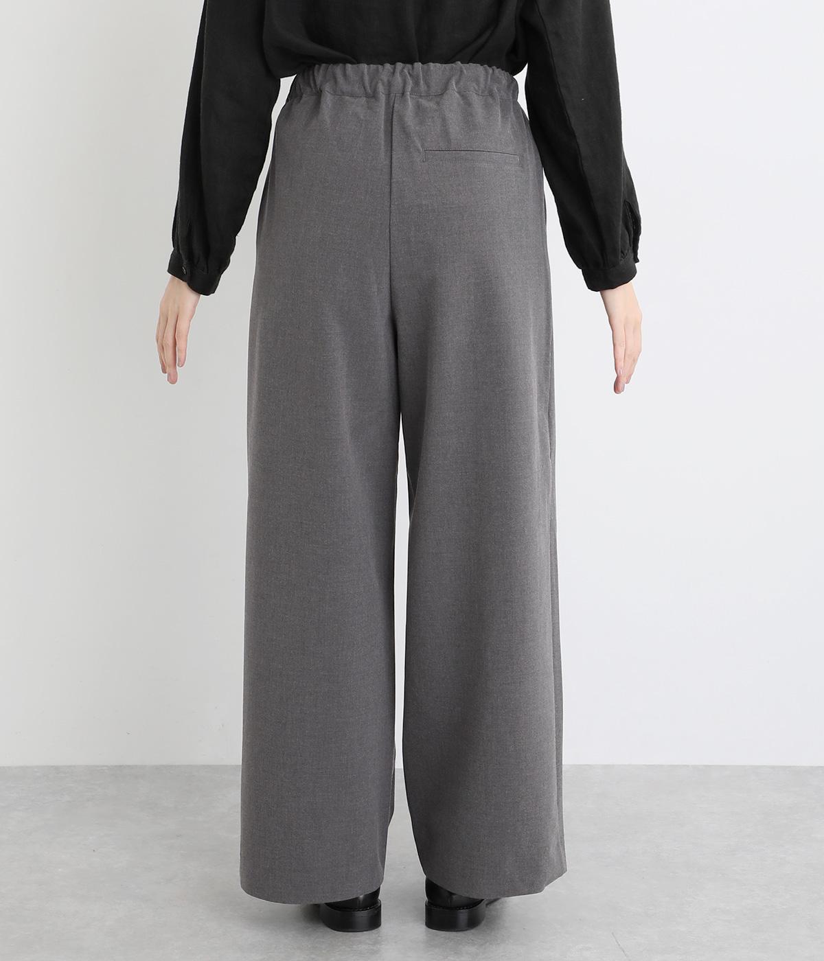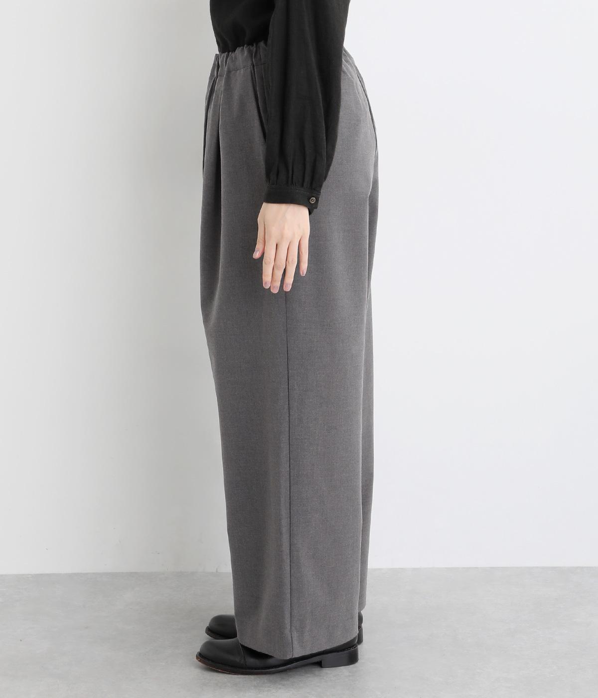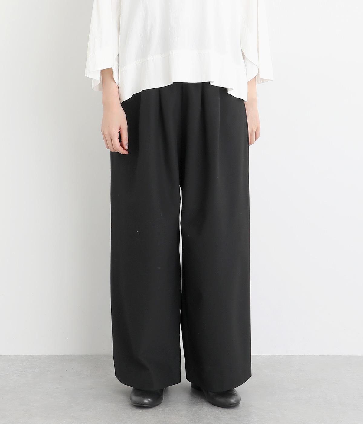 タックを入れたワイドシルエットは自然なドレープが出て、きちんと感の中にも優雅できれいめな要素も持ち合わせています。ウエストは安定感のある総ゴムに内紐を通したイージー仕様ではき心地の良さも叶えた優秀な一本です。ジャケット合わせもおすすめ。