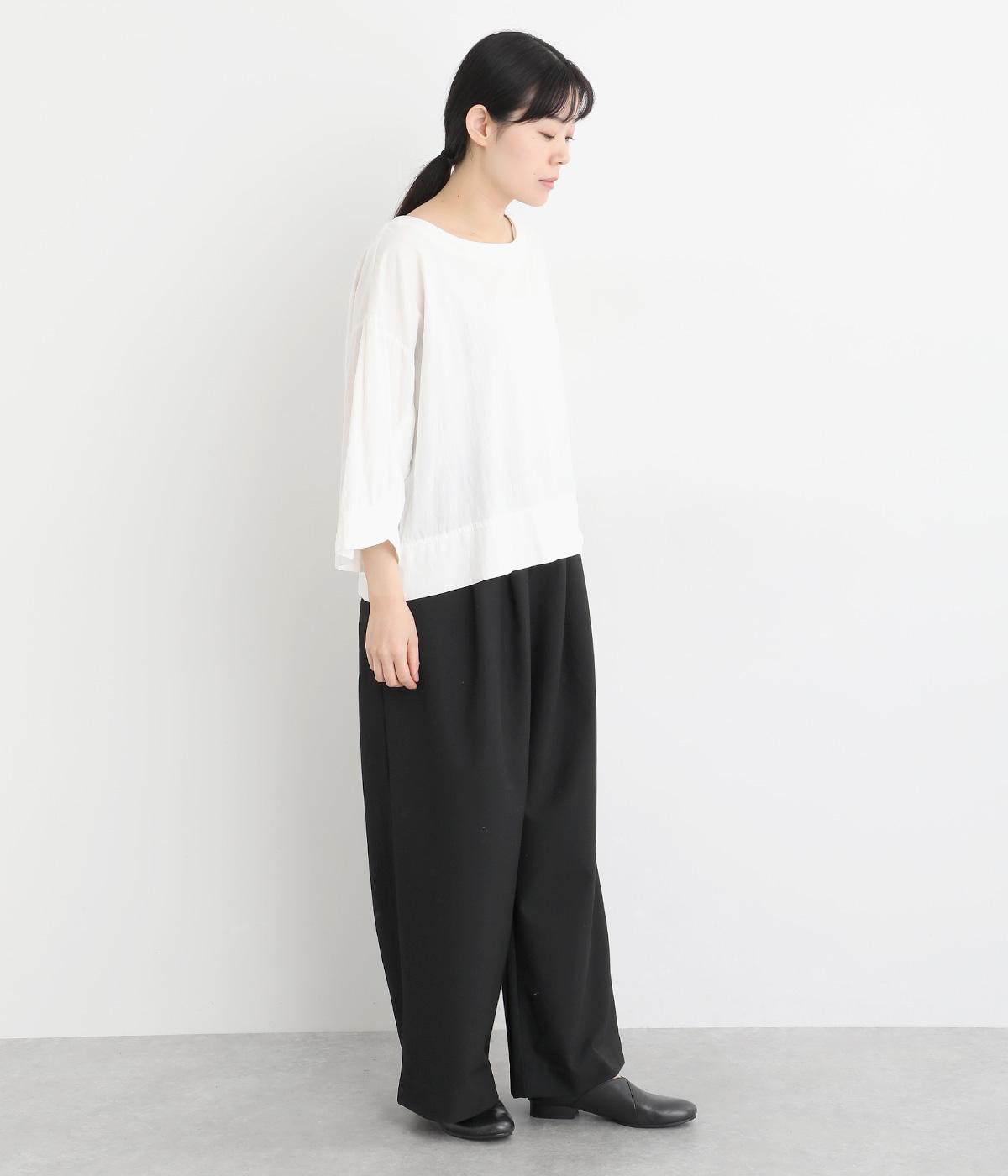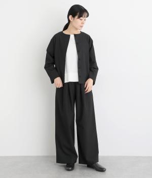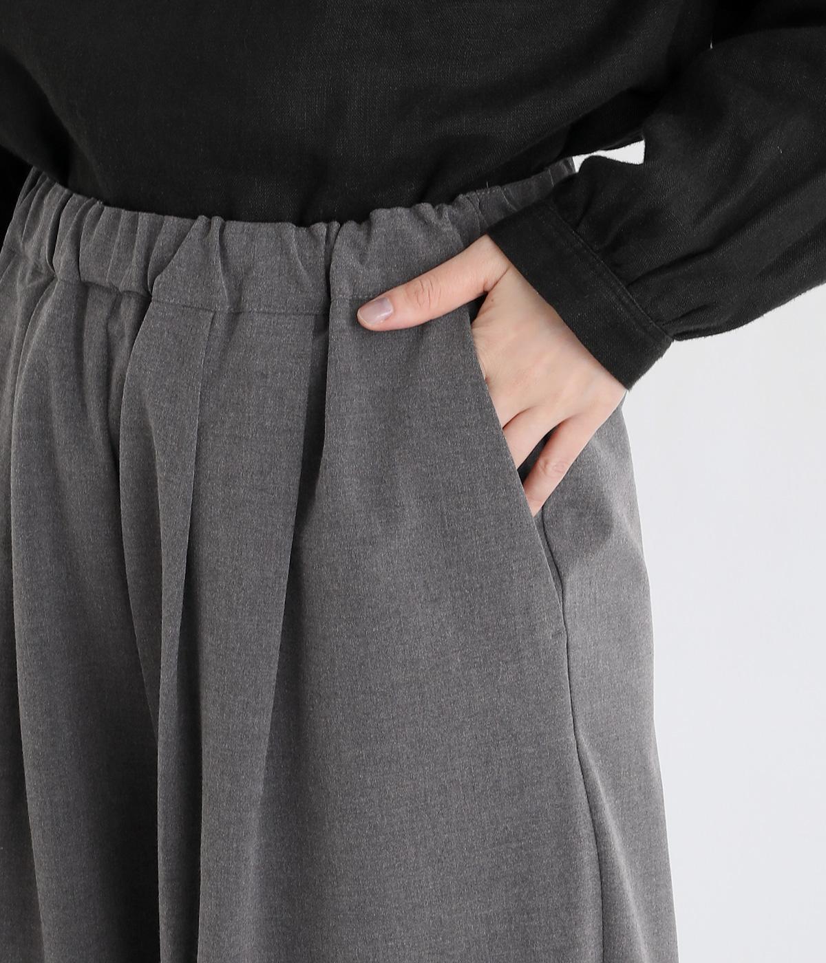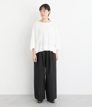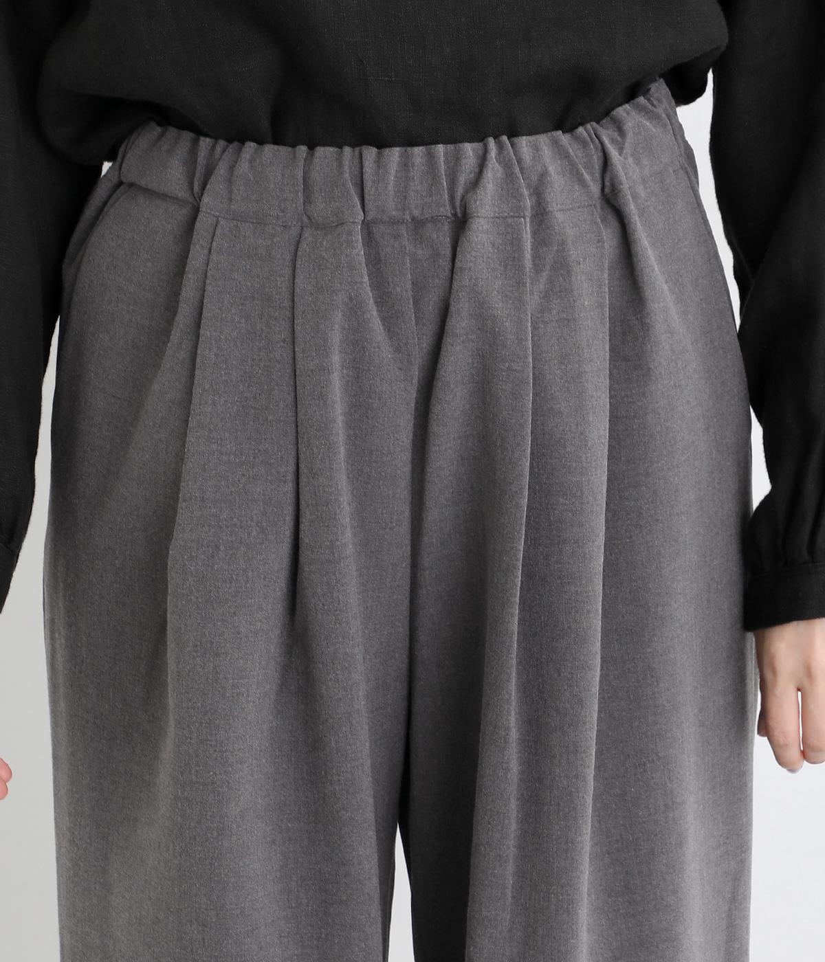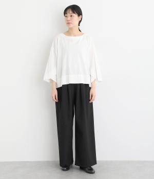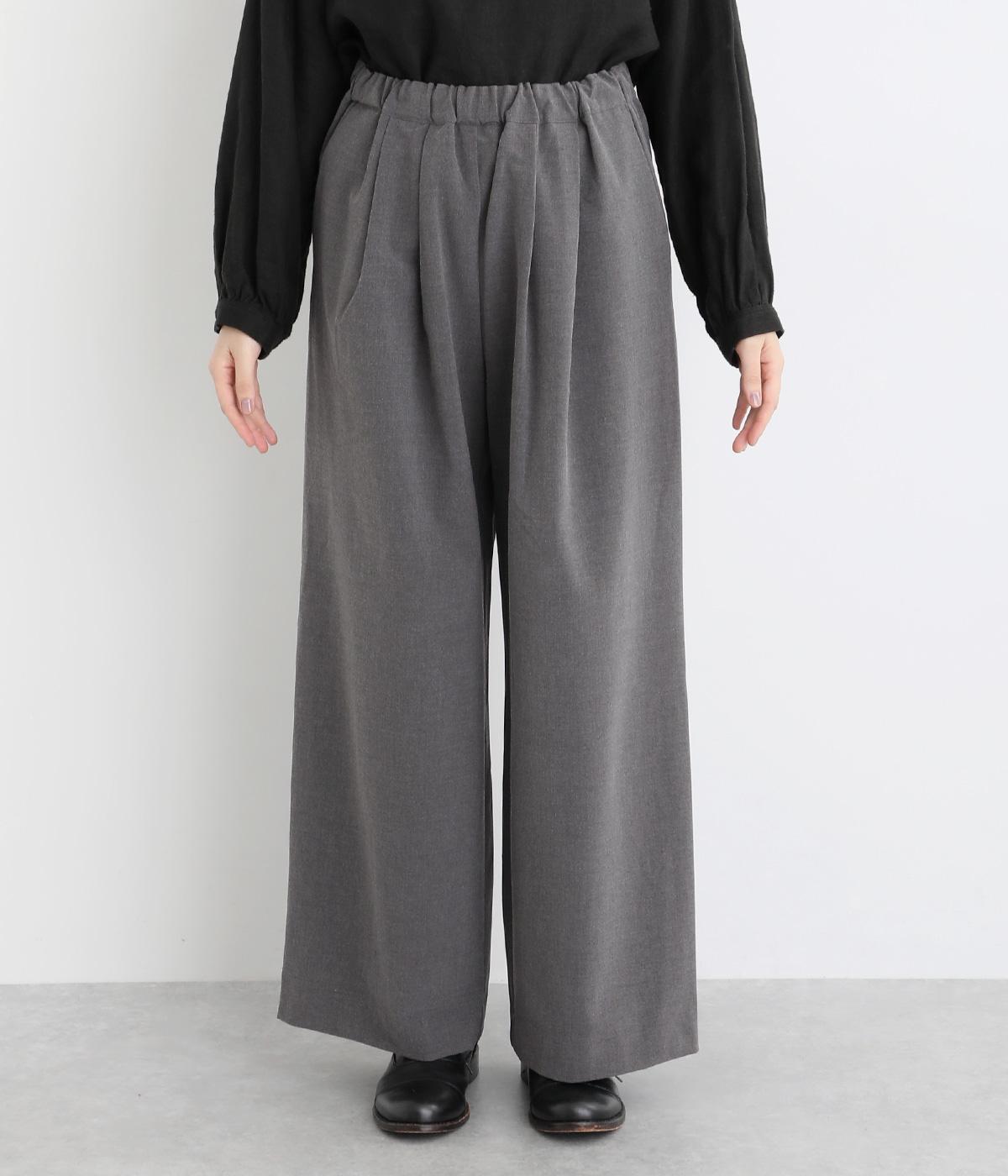 タックを入れたワイドシルエットは自然なドレープが出て、きちんと感の中にも優雅できれいめな要素も持ち合わせています。ウエストは安定感のある総ゴムに内紐を通したイージー仕様ではき心地の良さも叶えた優秀な一本です。ジャケット合わせもおすすめ。