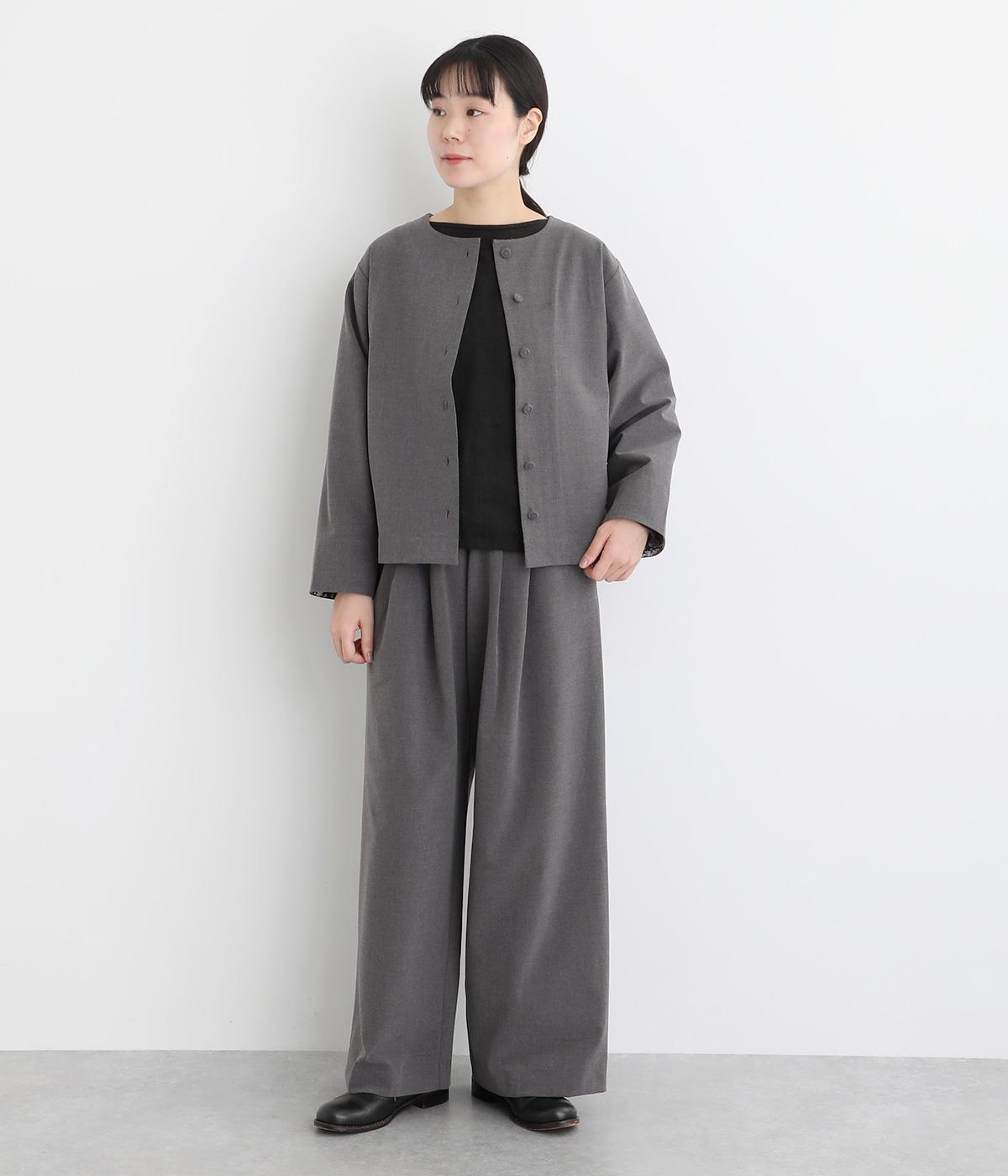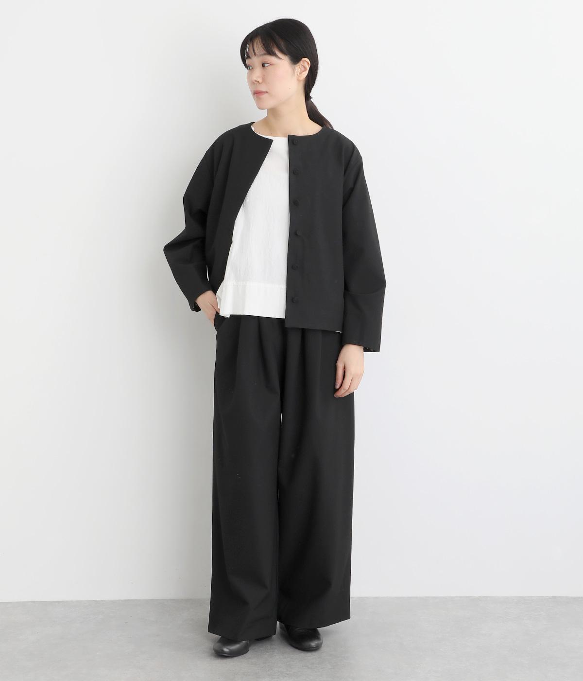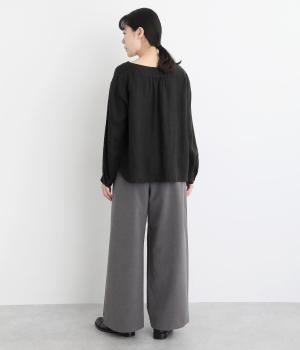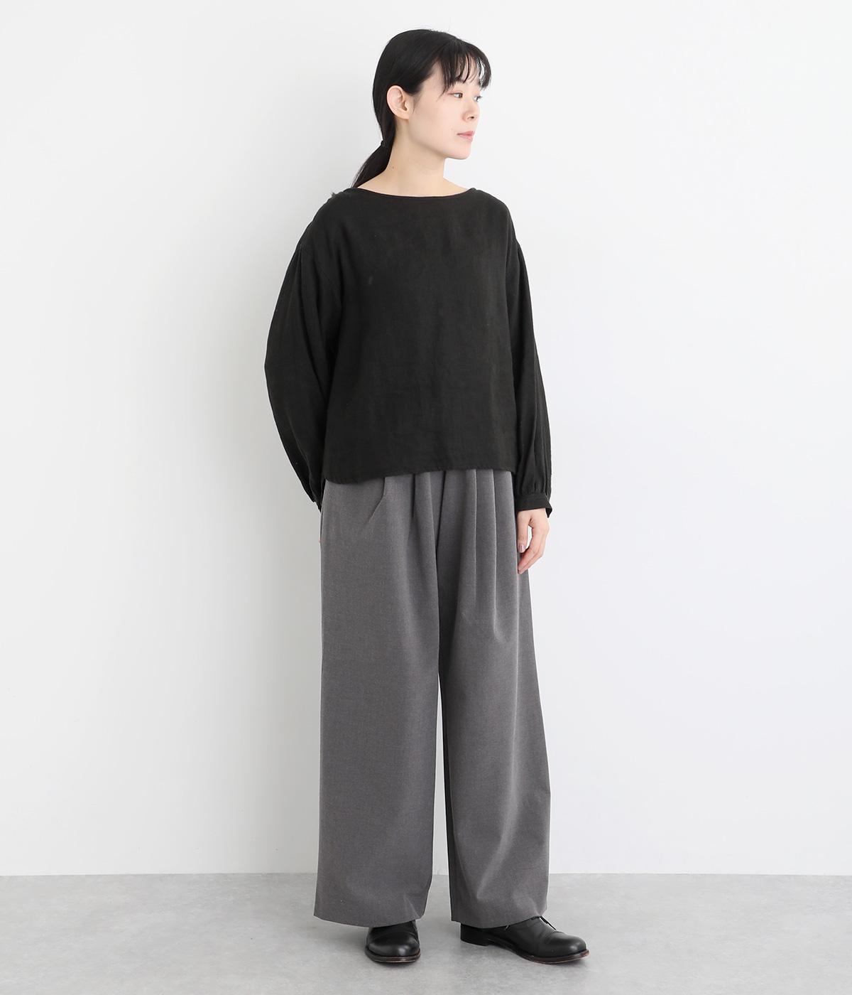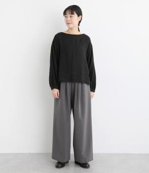 タックを入れたワイドシルエットは自然なドレープが出て、きちんと感の中にも優雅できれいめな要素も持ち合わせています。ウエストは安定感のある総ゴムに内紐を通したイージー仕様ではき心地の良さも叶えた優秀な一本です。ジャケット合わせもおすすめ。