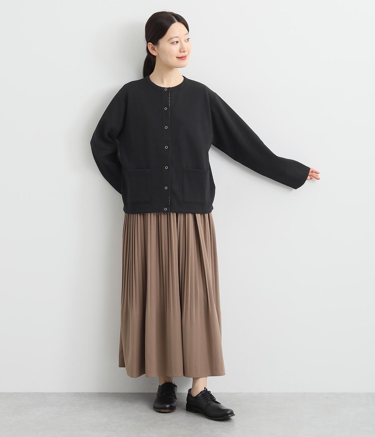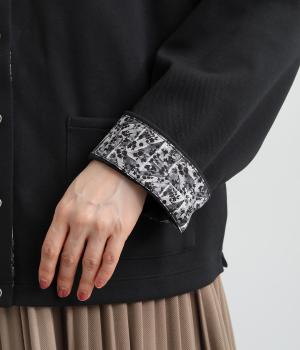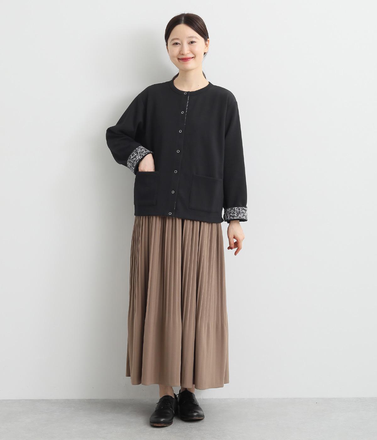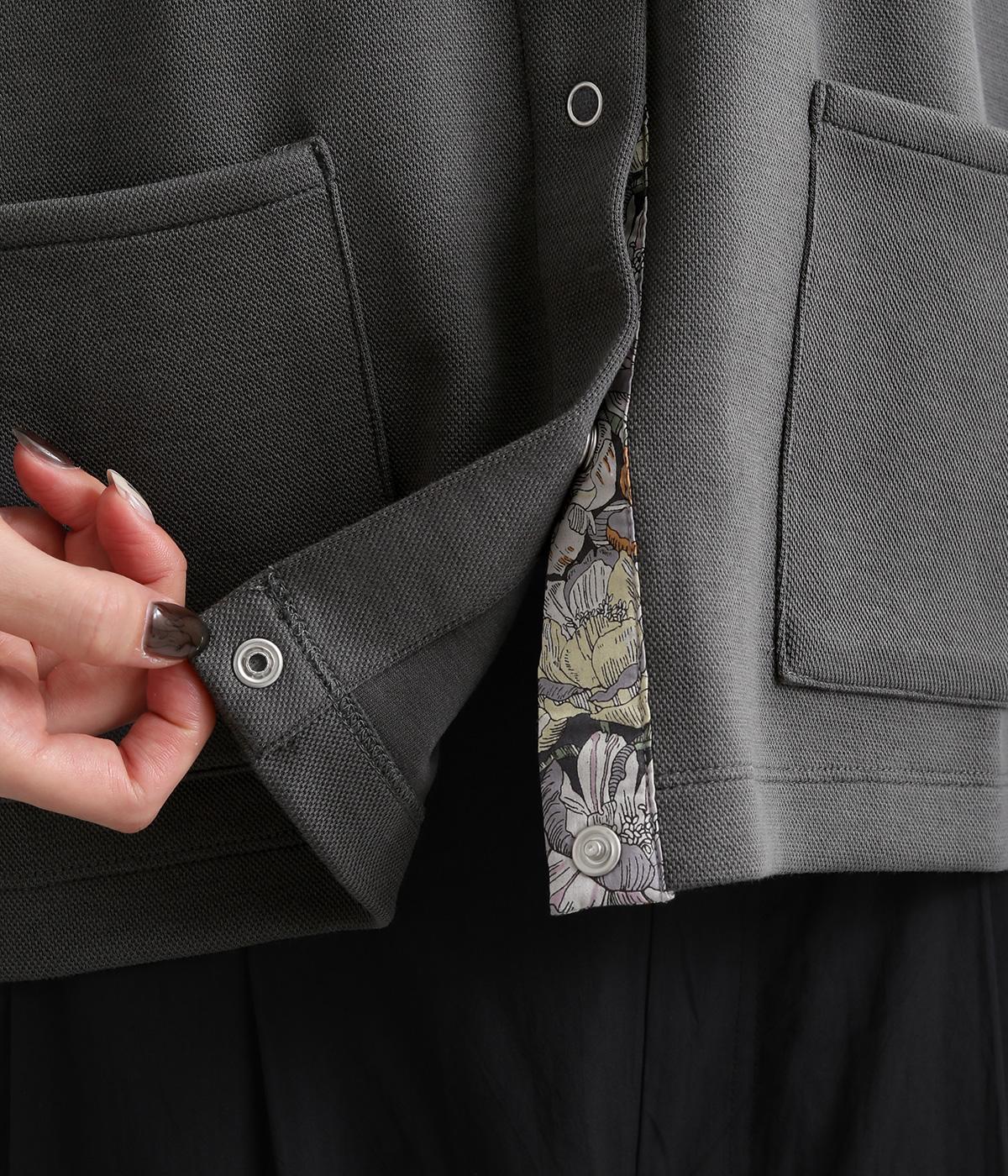 前立てと袖裏部分にリバティ生地をさりげなく取り入れたカーディガン。袖を折り返したり前を開けたりしたときに見える、大人っぽい繊細な柄が素敵です。クルーネックのベーシックなデザインで、さまざまな着こなしに合わせやすいのも◎。スナップボタン仕様で着脱もイージーです。