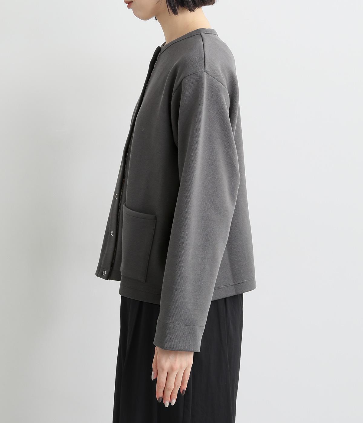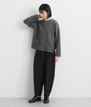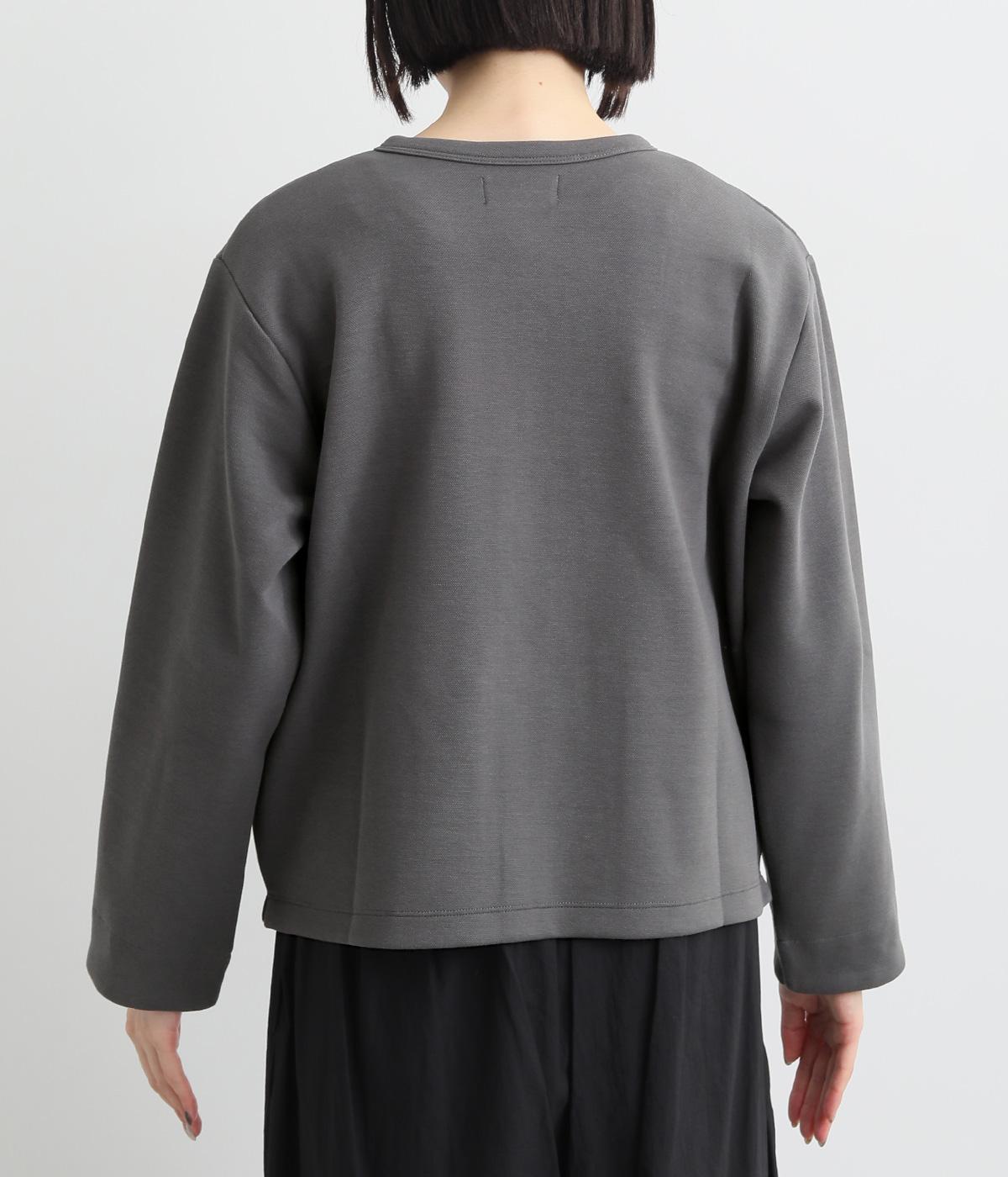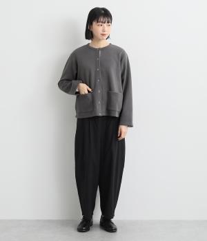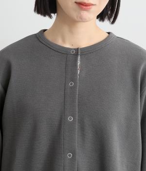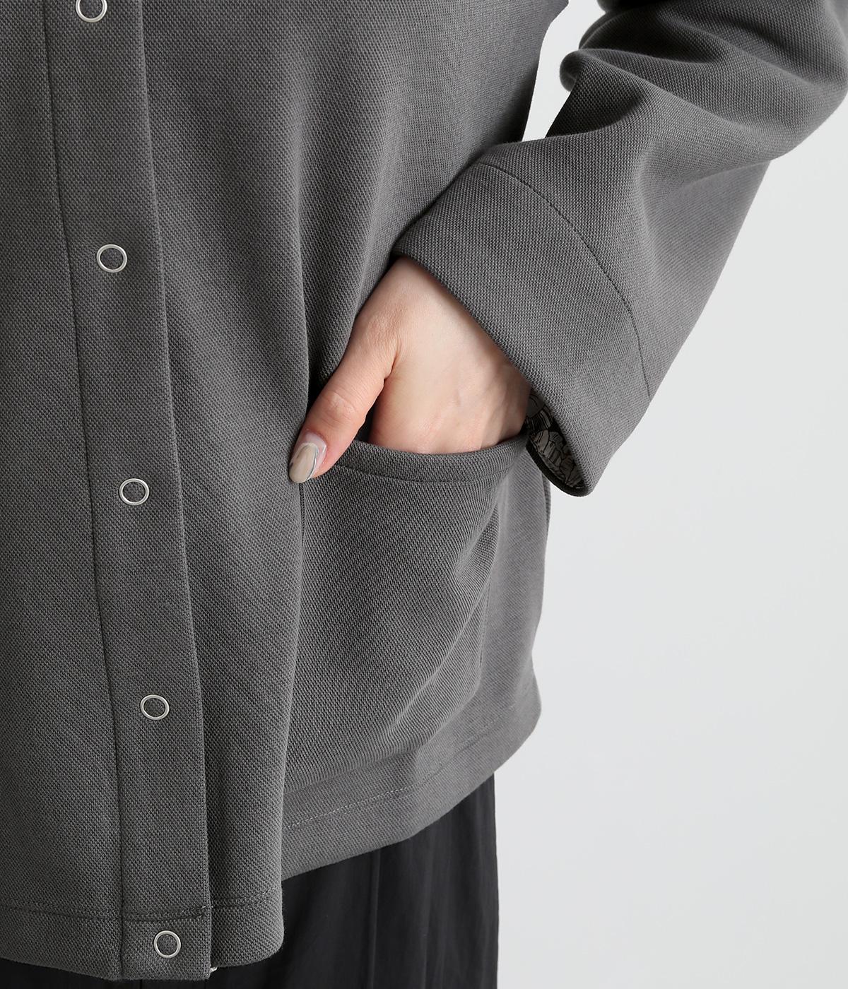 ストレッチのきいた着心地のよいポンチ生地を使用しています。細かな鹿の子編みの凹凸のある表面感が特徴で、肌に触れる裏面はとてもなめらかな質感がグッドです。