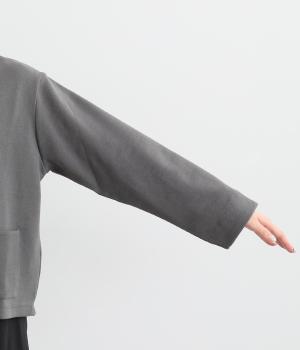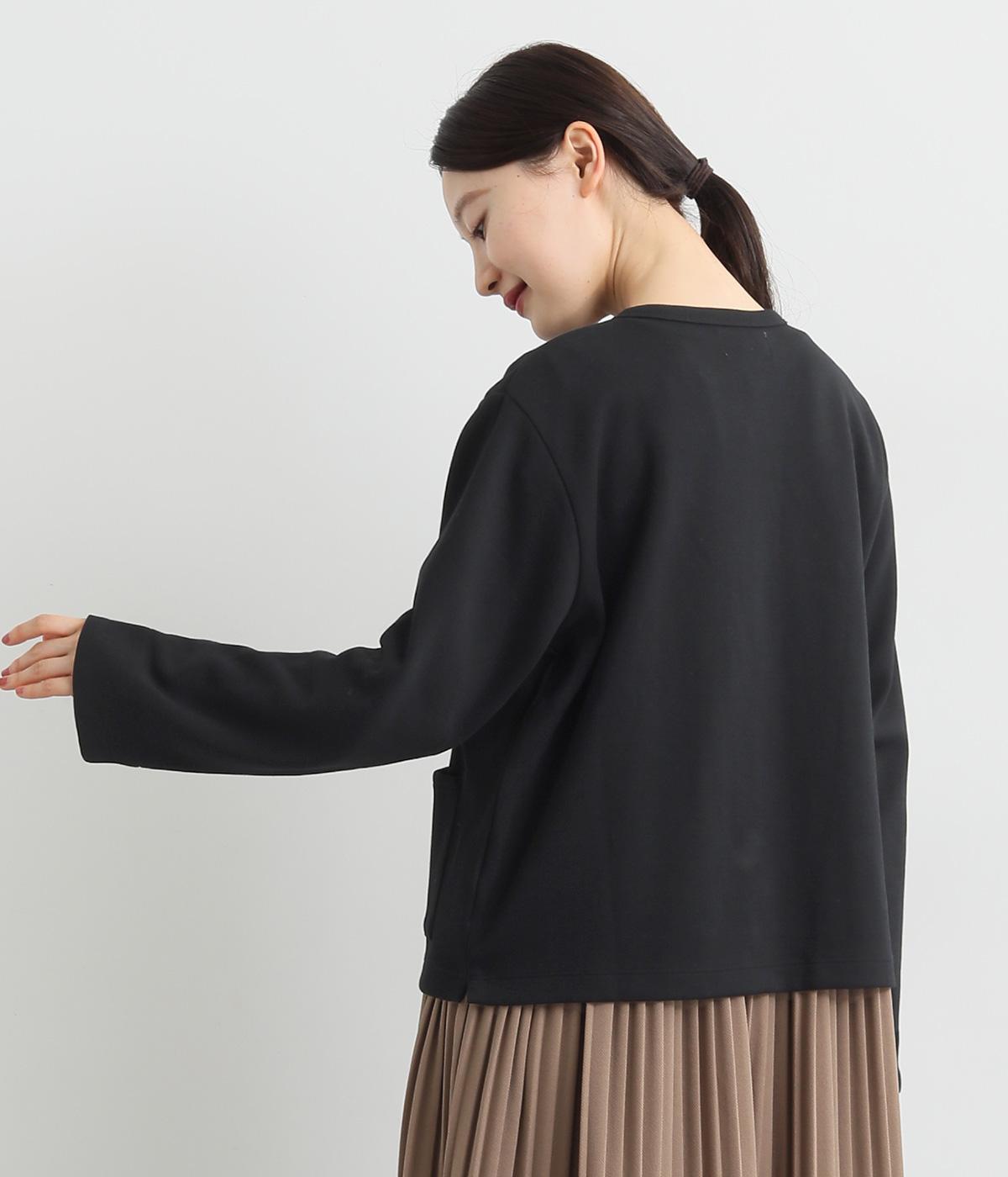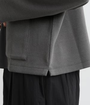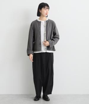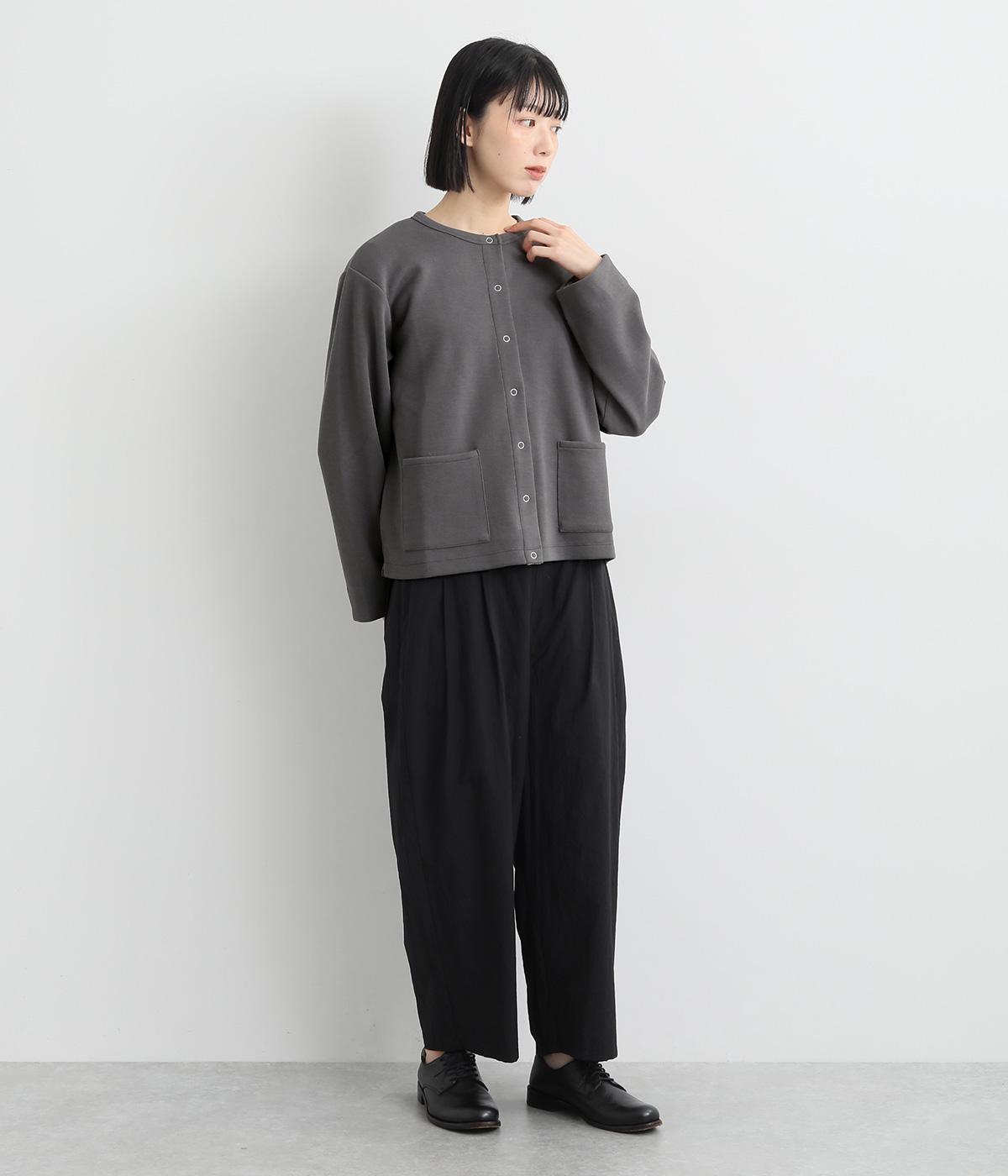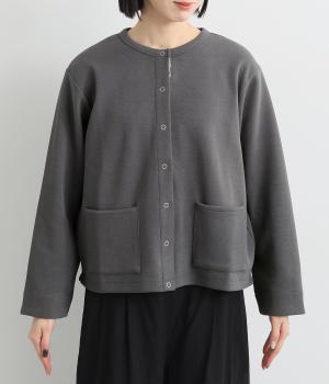 ストレッチのきいた着心地のよいポンチ生地を使用しています。細かな鹿の子編みの凹凸のある表面感が特徴で、肌に触れる裏面はとてもなめらかな質感がグッドです。