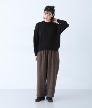 適度な厚みと弾力のあるレーヨン混ニット生地。品のよい滑らかな表面感としっとりとした心地よい肌触り、軽い着心地が魅力です。