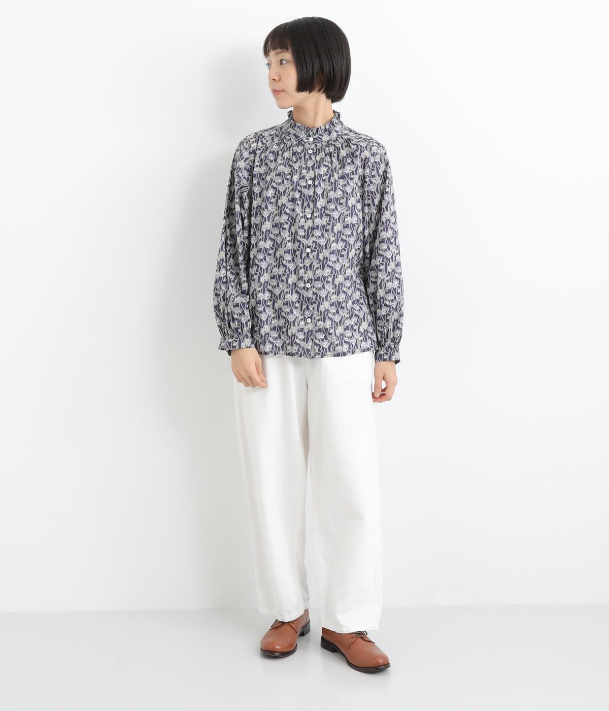 シルクのようになめらかな肌触りが魅力的な、リバティ・ファブリックスが代表する上質なコットンタナローン生地を用いました。薄手で着こなししだいで長く着まわせます。