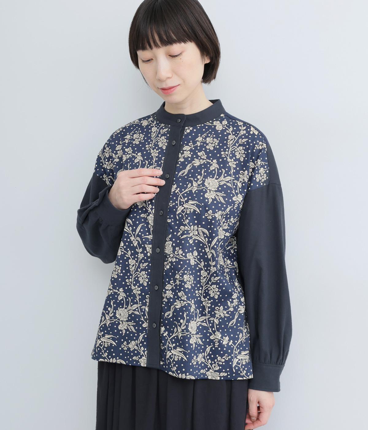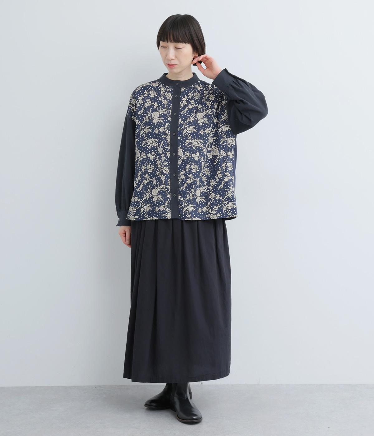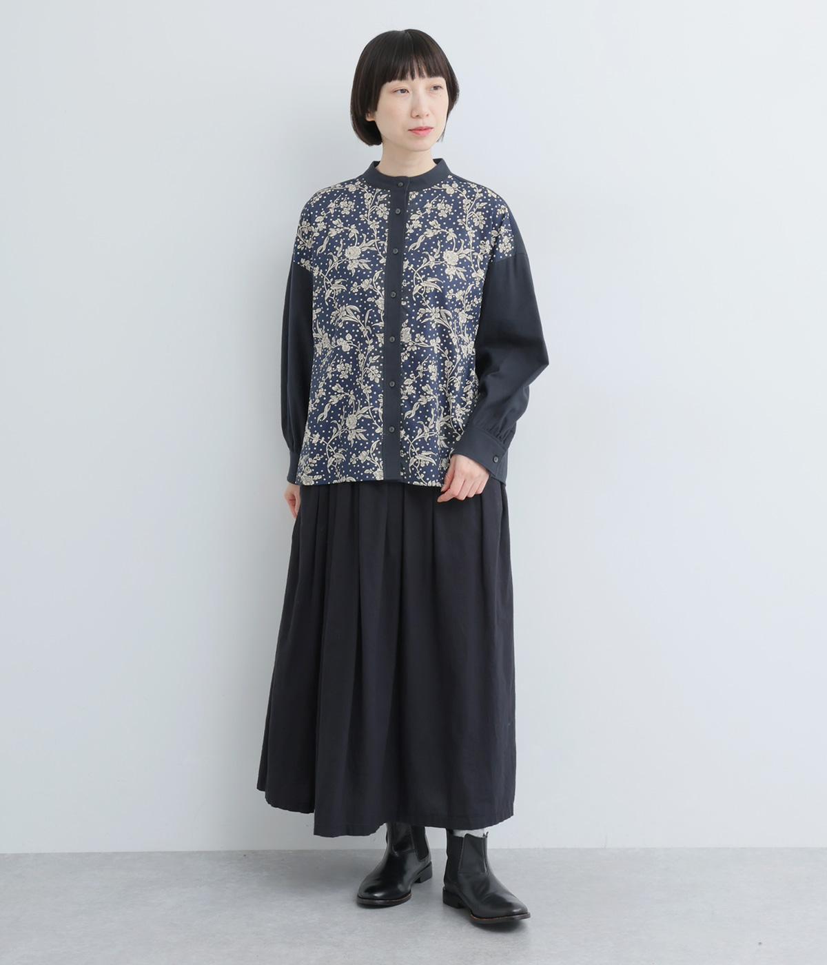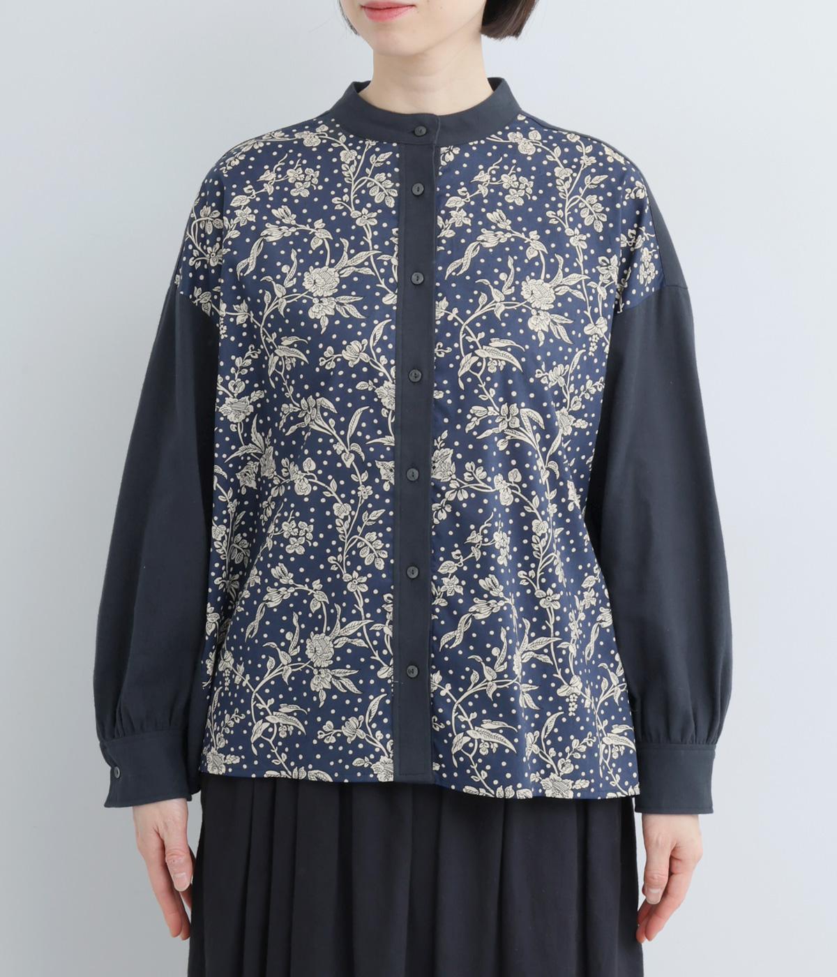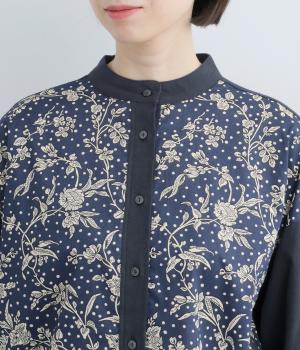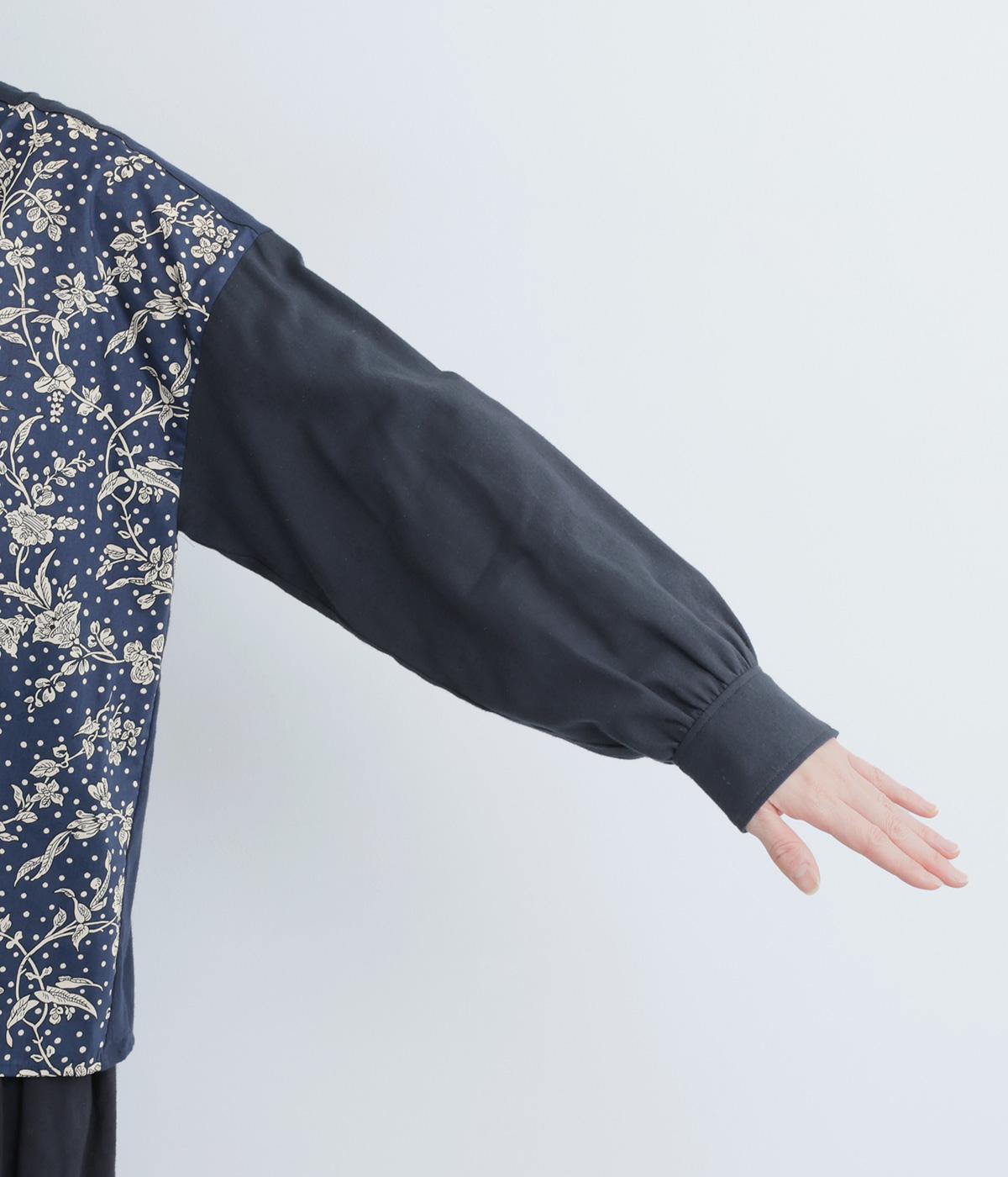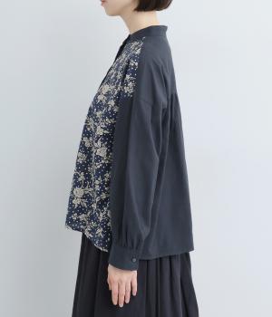 LIBERTYのMalir柄を前身頃のみ切り替えたシックなムードのシャツ。前身頃はギャザーなしですっきりと、袖口や背中にはたっぷりギャザーを入れることで、メリハリのあるシルエットに仕上げました。