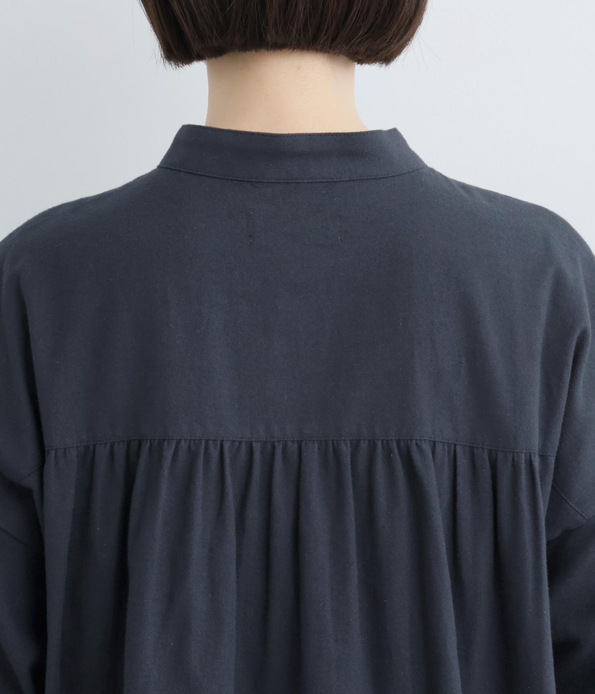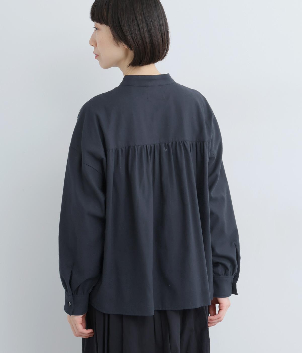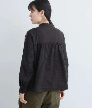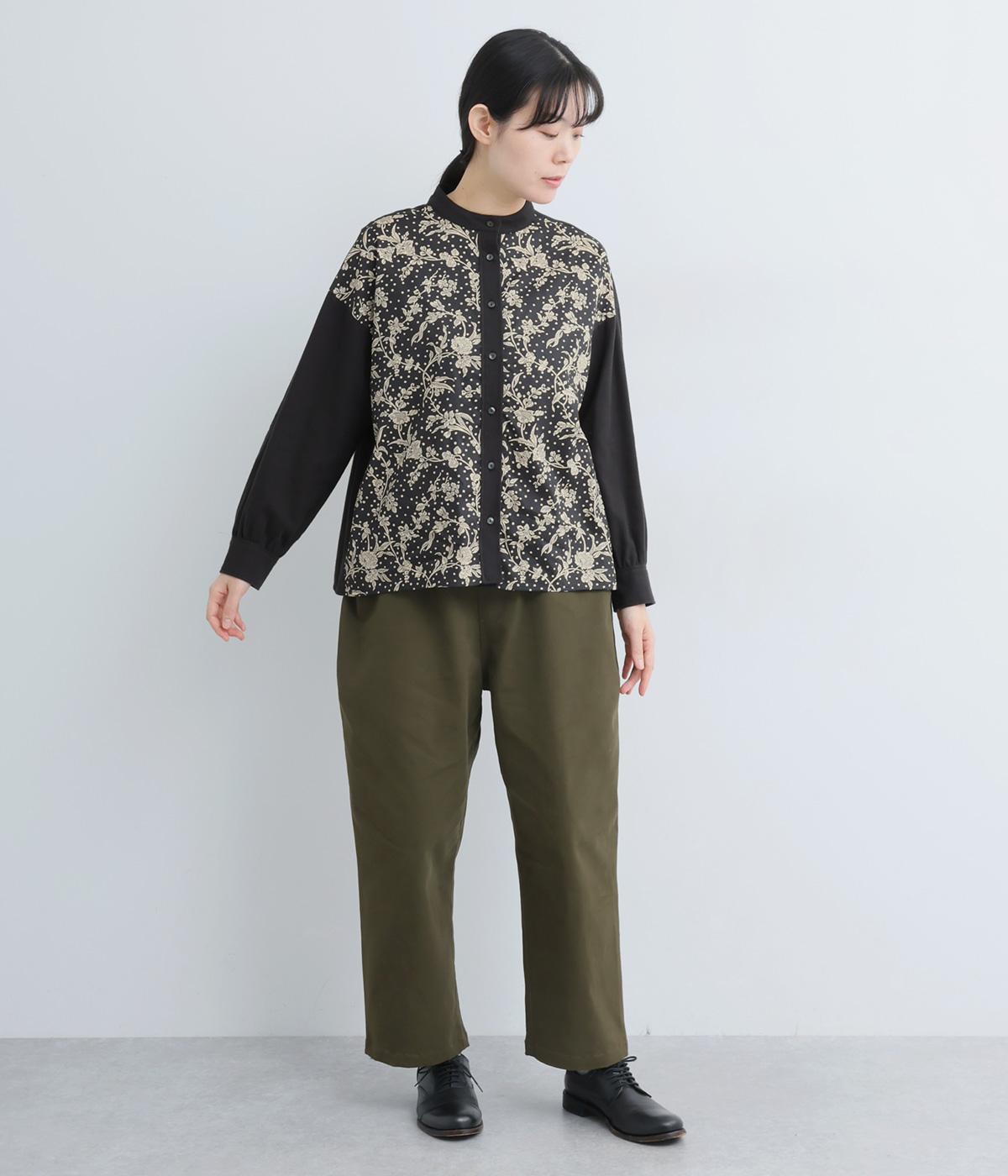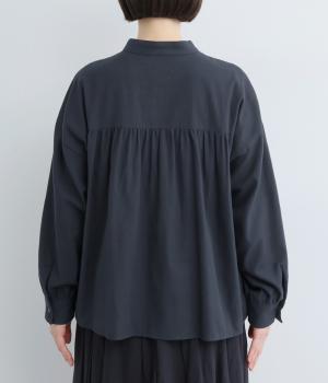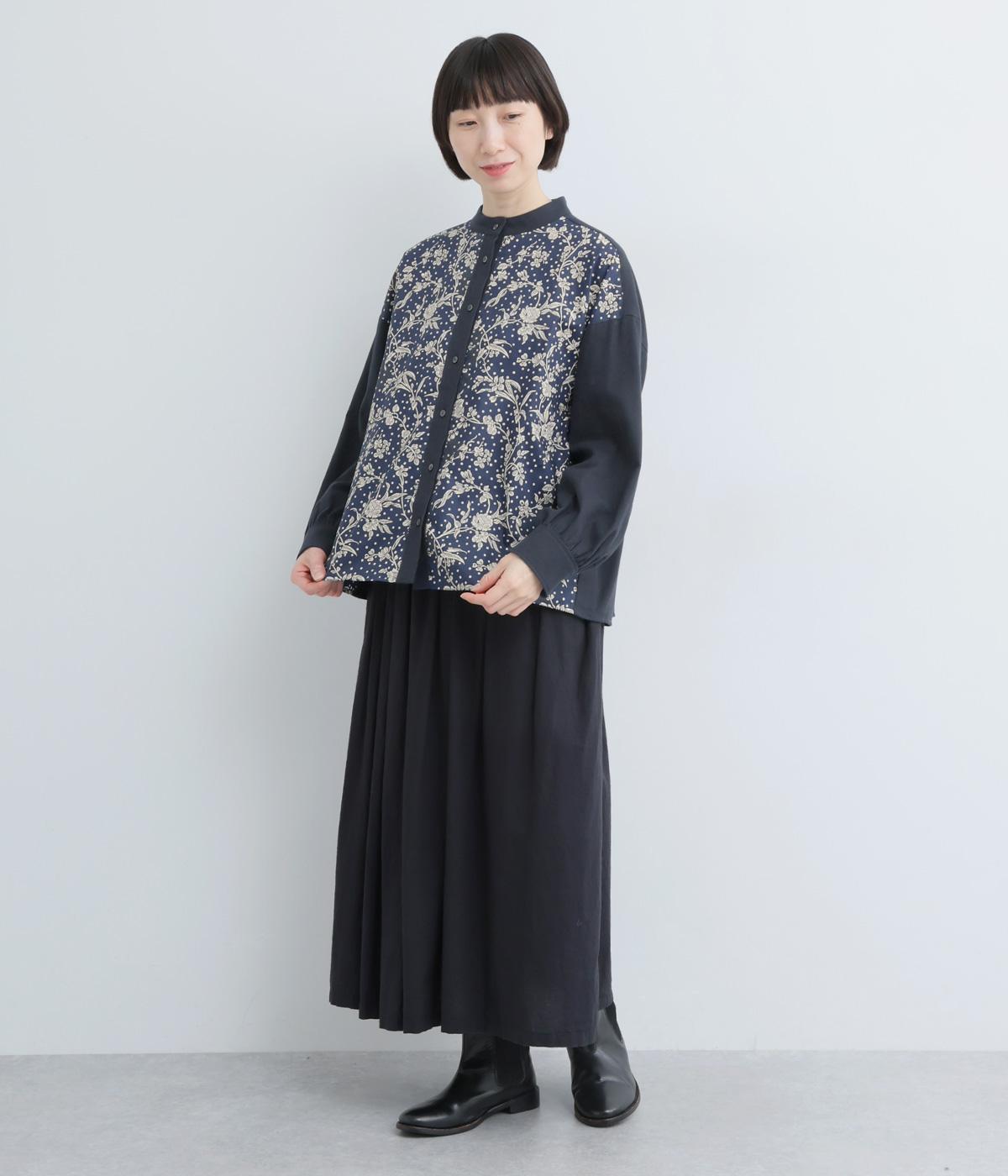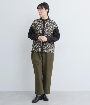 LIBERTYのMalir柄を前身頃のみ切り替えたシックなムードのシャツ。前身頃はギャザーなしですっきりと、袖口や背中にはたっぷりギャザーを入れることで、メリハリのあるシルエットに仕上げました。