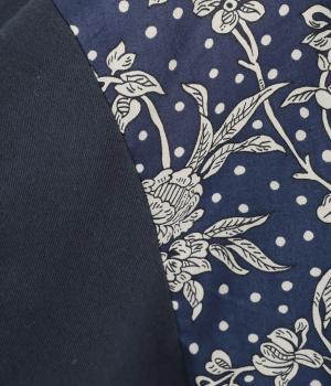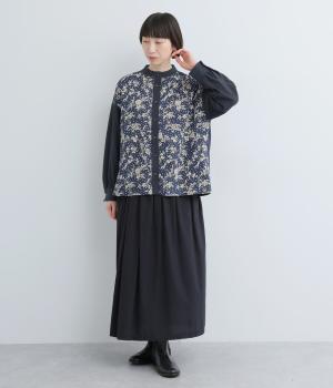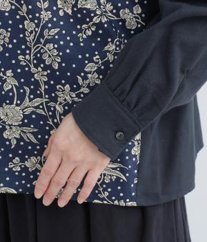 あたたかみのあるやわらかなコットンビエラ生地をベースに、前身頃にLIBERTYプリントを切り替えました。身生地と色を合わせたMalir柄で華やかさをプラス。