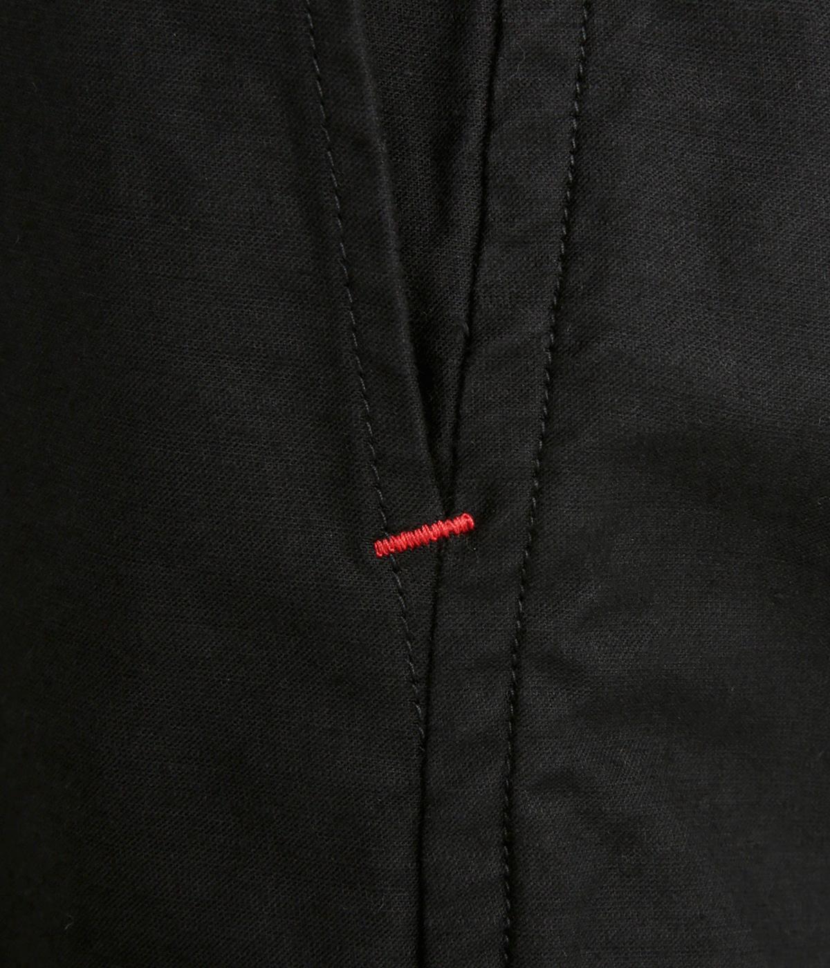 シルエットをきれいに描いてくれるしっかりとハリのある、ムラ糸を使用したコットンサテン生地を採用。ほんのりとストレッチ性を持たせた動きやすい生地感で、ほどよく厚みもあってはき心地もグッド。