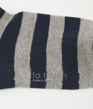 奈良の靴下産地の中心地である広陵町の老舗が作る、丈夫ではき心地の良いソックスのファクトリーブランド。オリジナルのボーダー柄を編みたてた少し短めの丈はコーディネートのさりげないアクセントにぴったり。スカートはもちろんシンプルなパンツスタイルに合わせても素敵なアイテムです。